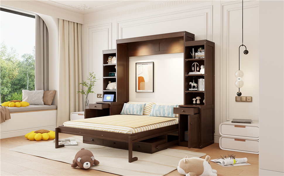 - Space-Saving Smart Design: This Queen Size Murphy bed features a seamless folding mechanism that transforms from a stylish cabinet into a comfortable bed in seconds, perfect for guest rooms or studio apartments.