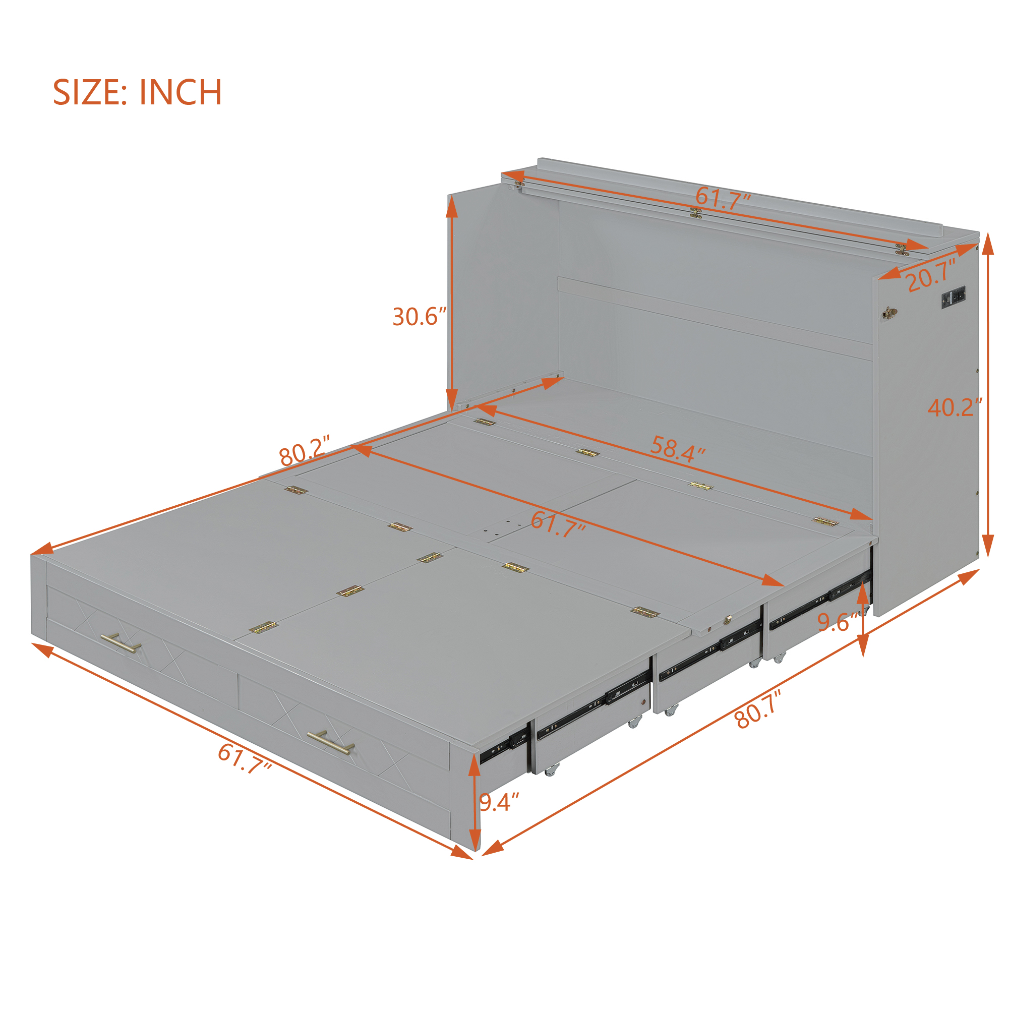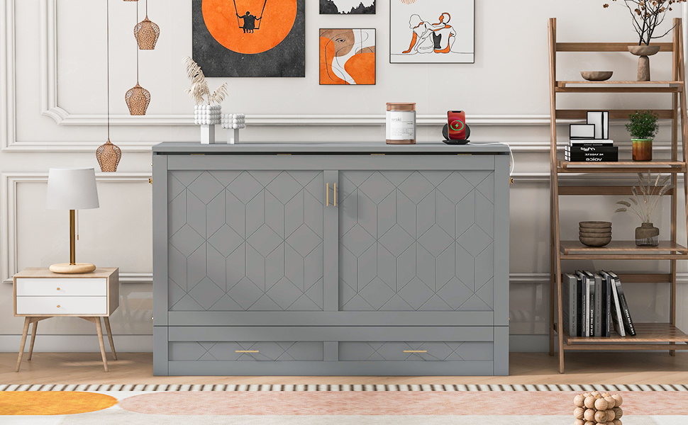 - [Multifunctional] This Murphy Bed easily transforms into a cabinet, freeing up floor space in any room. Ideal for multipurpose guest rooms, home offices, or home gyms, this space-saving furniture includes convenient outlets and USB ports on the right side of the bed. When converted into a cabinet, additional drawers are available for use.