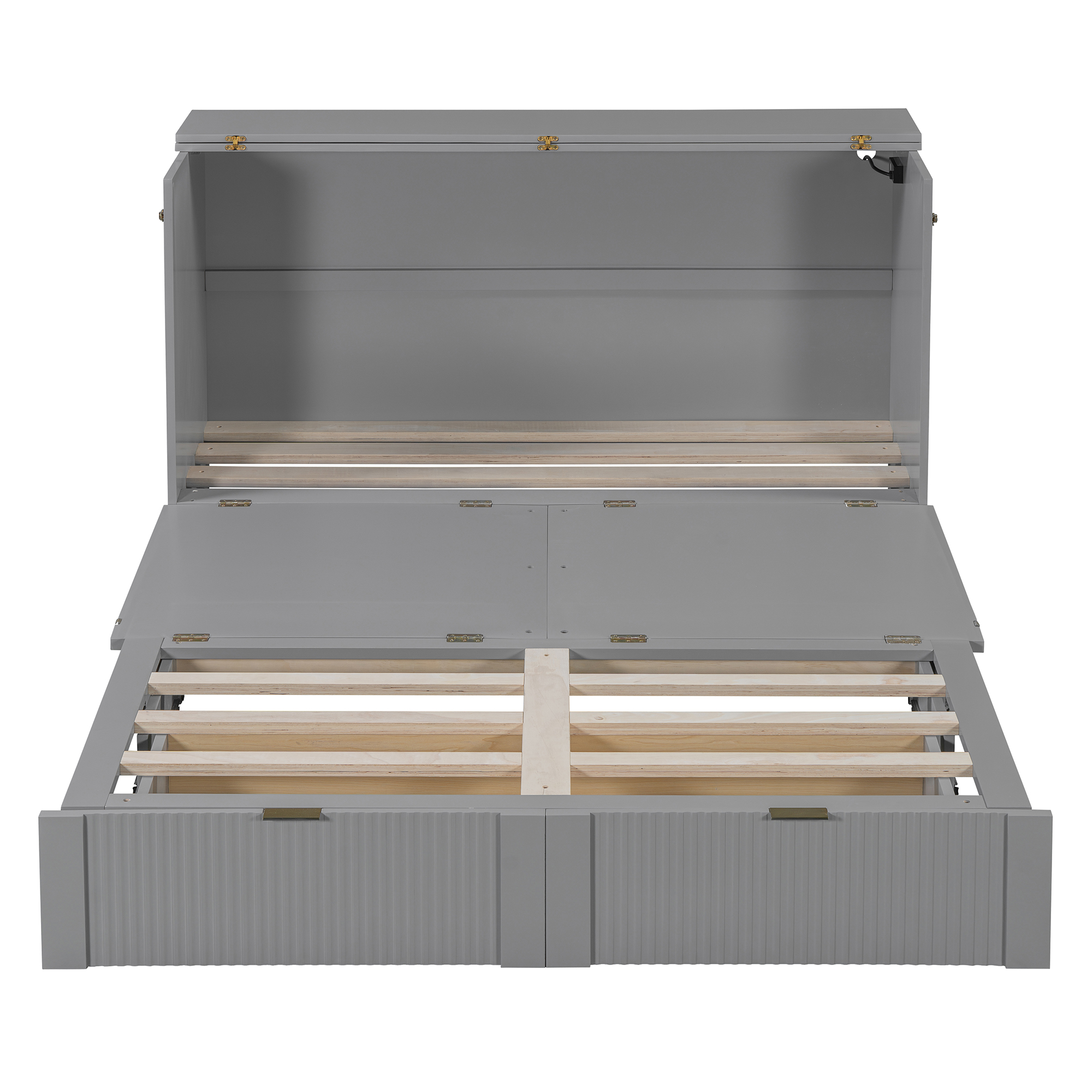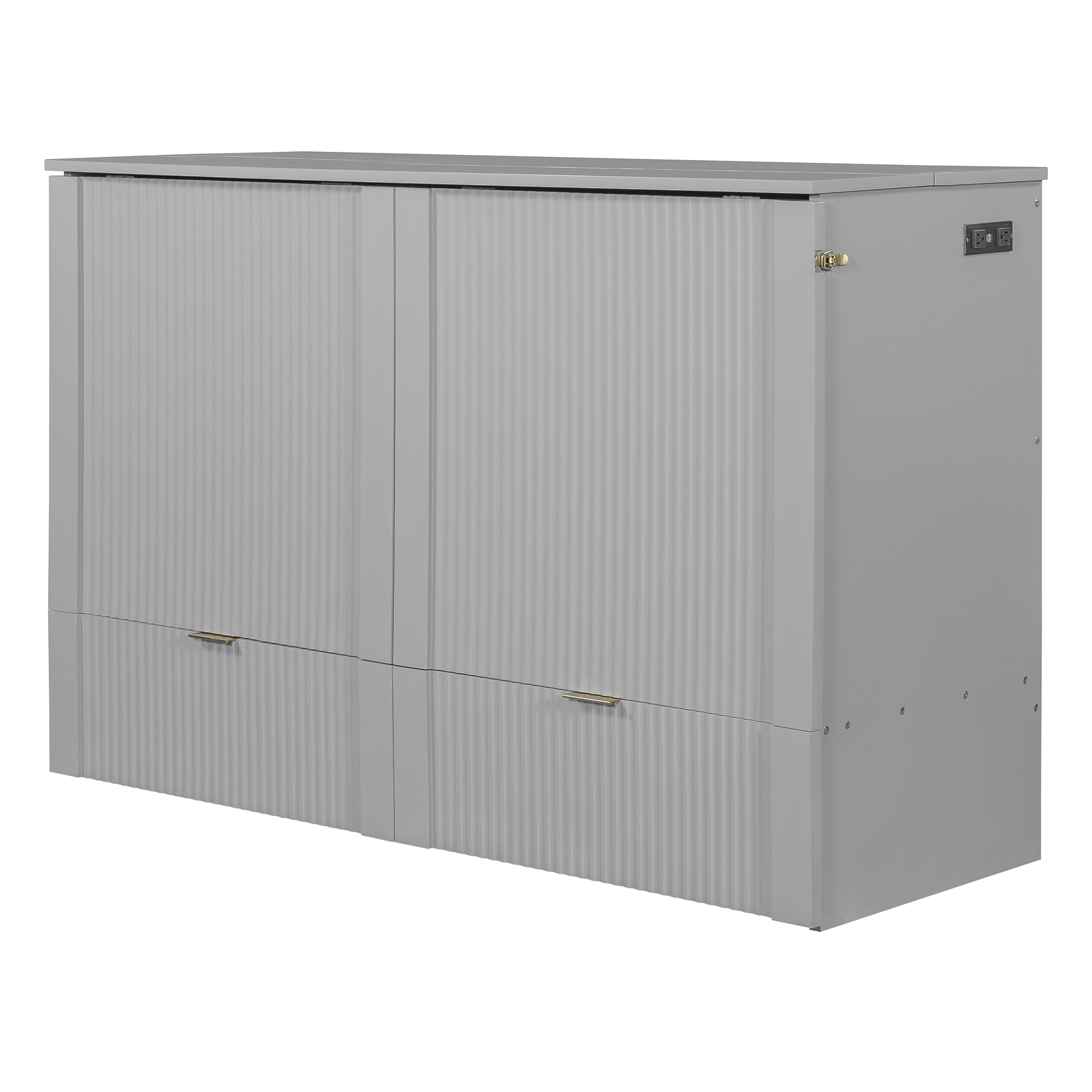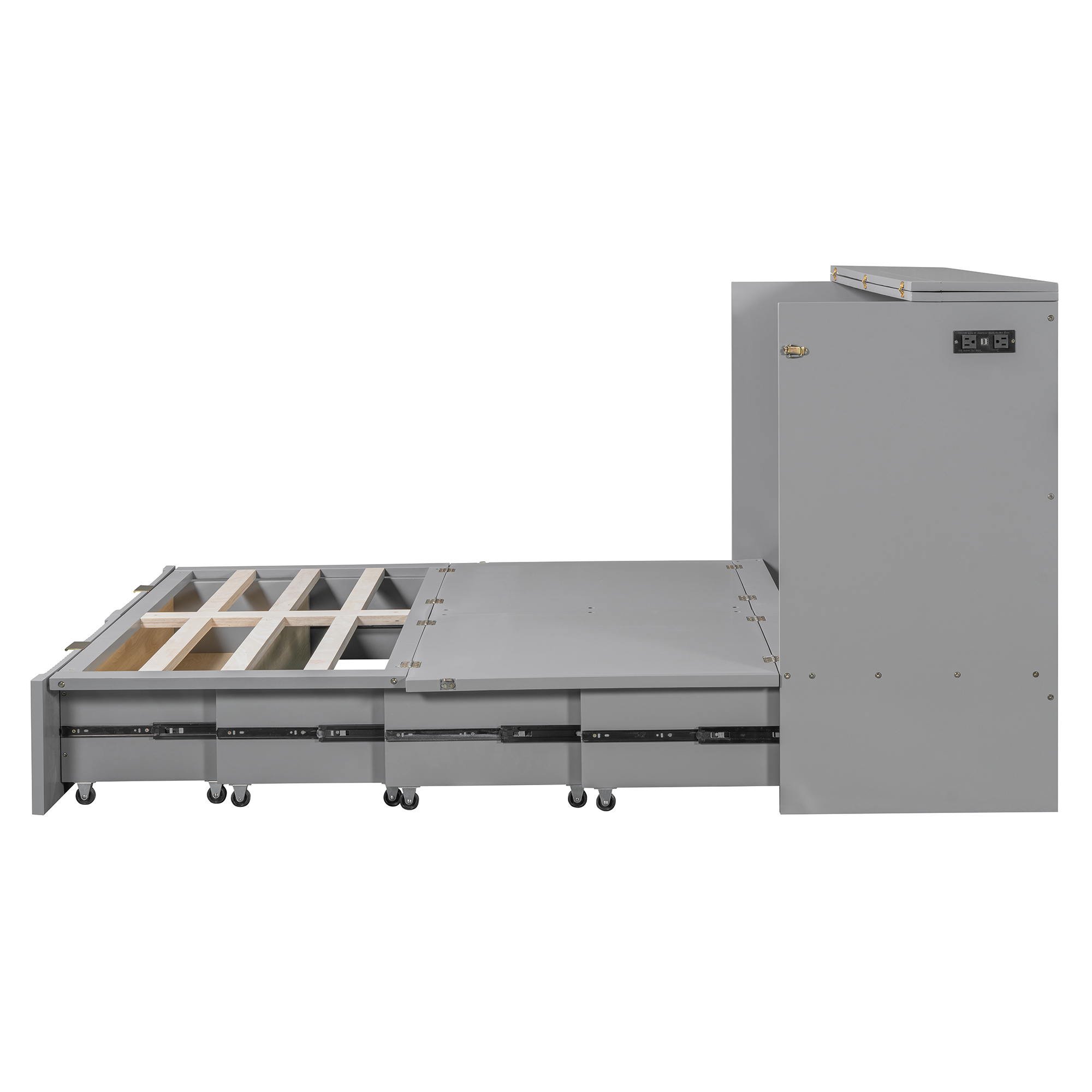 - [Multi-function] This Murphy bed can be turned into a cabinet with the roller skate to open up floor space in any room. A wall bed is the ideal space-saving furniture for a multi-use guest room, home office, or home gym.The sockets and USB ports on the right side of the bed is a convenient piece for you.There are also a big drawer for you when the bed is turn into a cabinet.