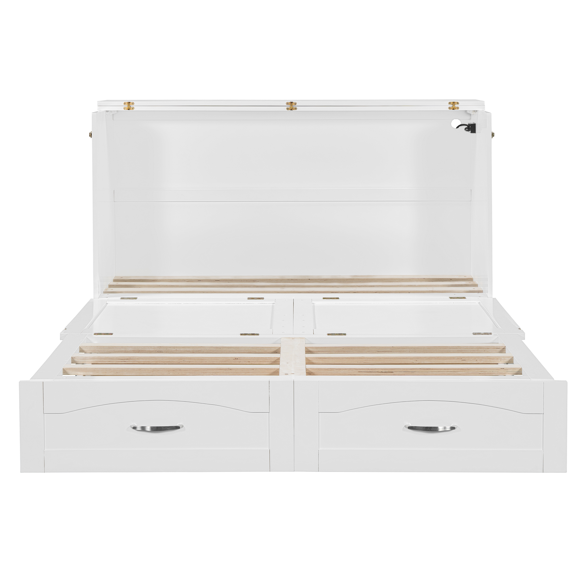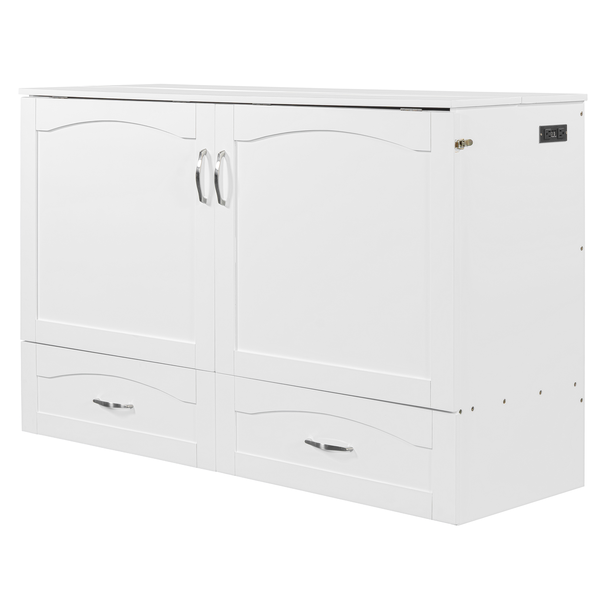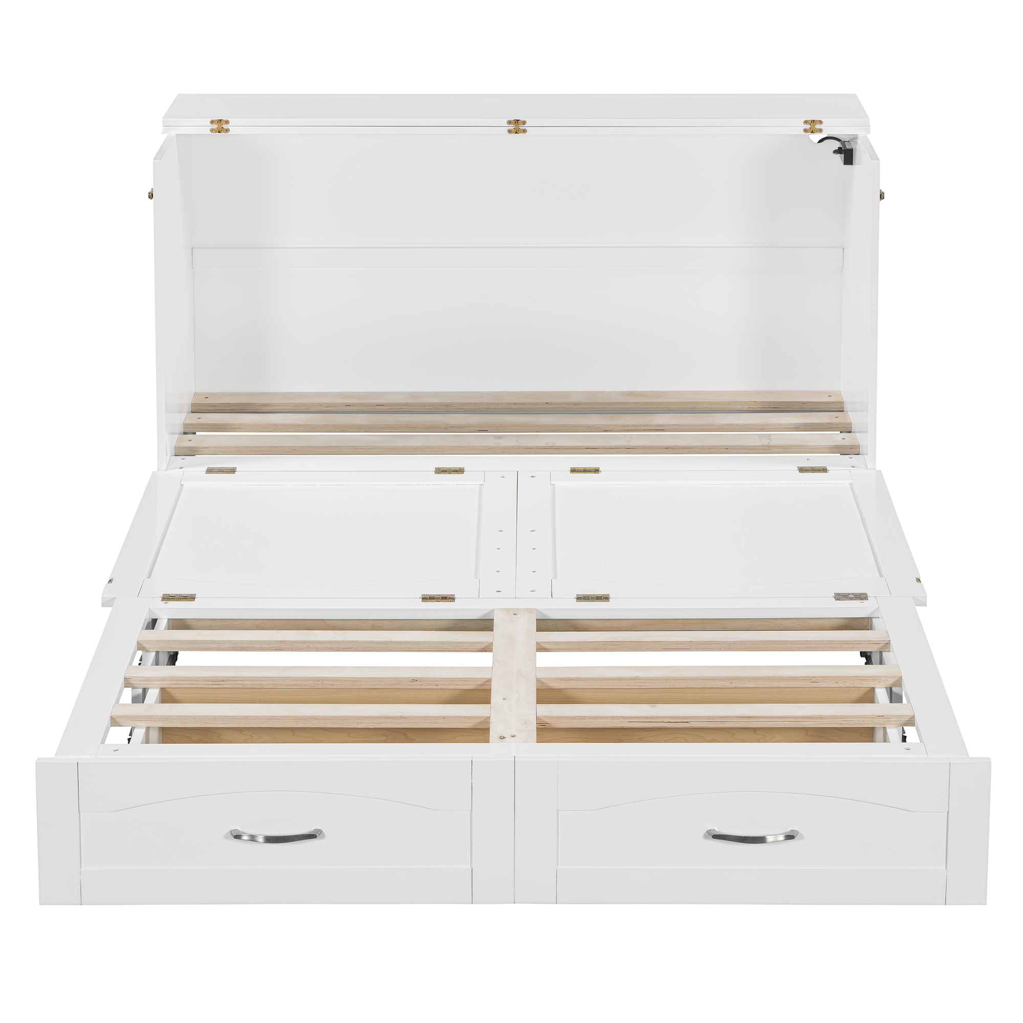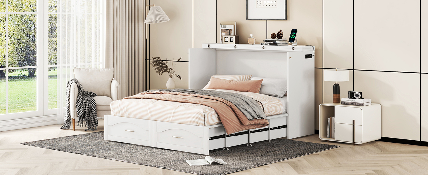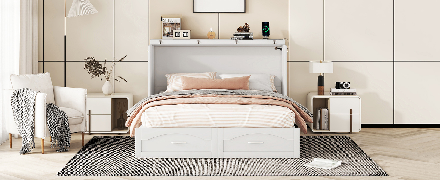 Queen Size Murphy Bed with Drawer and a set of Sockets & USB Ports, Pulley Structure Design