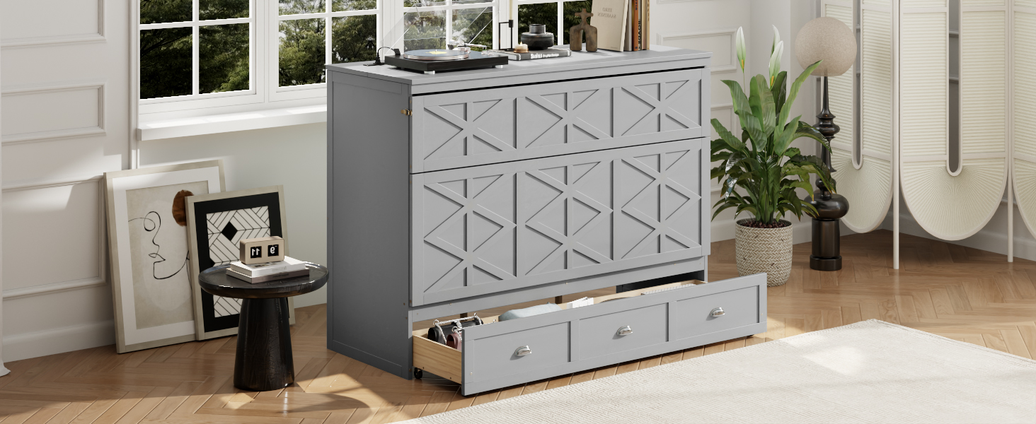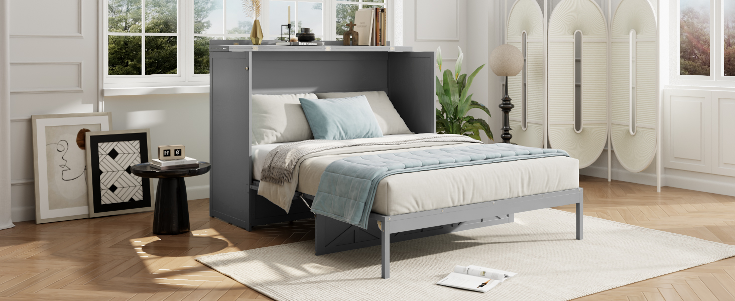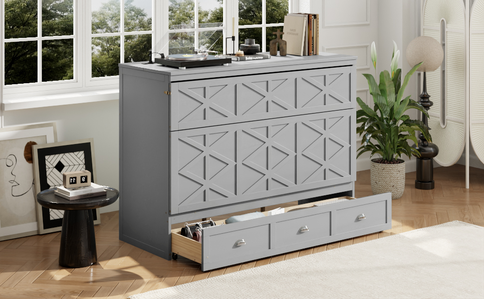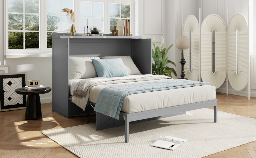 - [Clever Space Utilization] The unique design of the Murphy bed allows it to transform into an exquisite cabinet when folded up, greatly saving space and adding more flexibility to your living space. By fully utilizing space, it makes your room more spacious and tidy.
