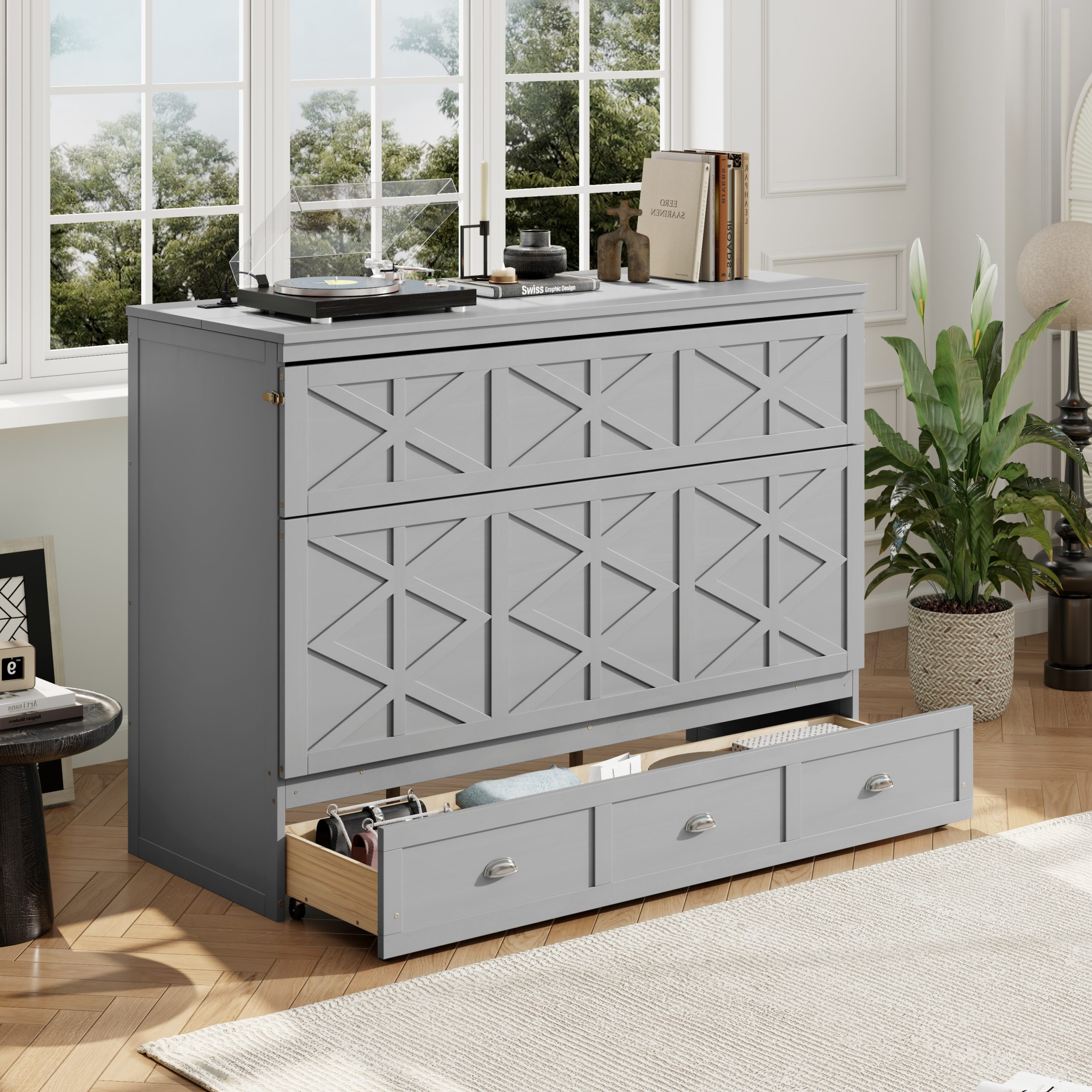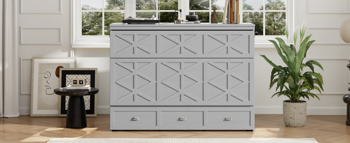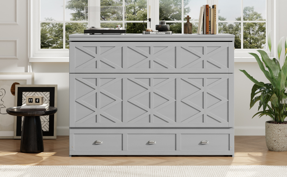 - [Classic and Stylish Fusion] The front design of the Murphy bed is uniquely crafted with classic and stylish strip patterned designs. Available in 2 colors – brushed white, brushed gray- it meets different decoration needs, adding a touch of sophistication to your living space.