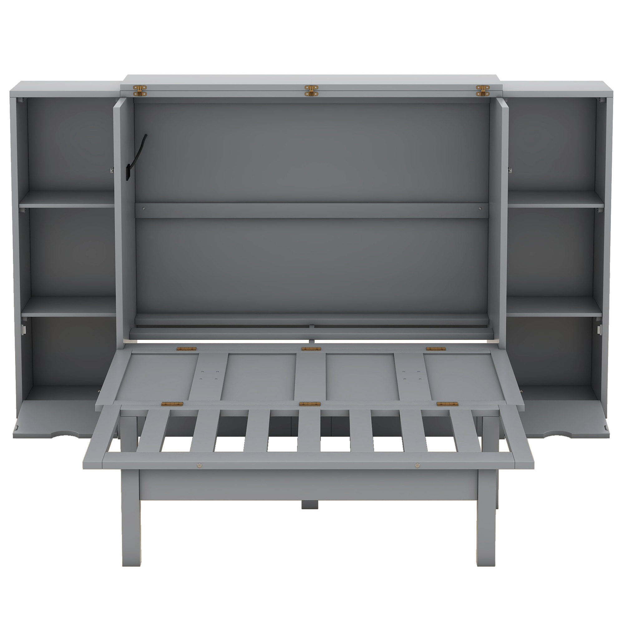 (Price Includes Shipping, No Tax Fee.)This space-saving bed can be slept on every night and works perfectly in a small apartment or studio. The hideaway bed is easy to use, simply pull on the handles and flip the support leg down onto the floor. This Murphy bed can be folded away into a cabinet to open up floor space in any room. This bed is the ideal space-saving furniture for a multi-use guest room, home office, or home gym. With shelves and drawers, this Murphy bed provides more space for you to store home items.It’s stylish and practical. Stay entertained without interruptions with our headboard featuring unique built-in USB ports and a Type-C port, ensuring your devices are powered up for extended binge-watching sessions or gaming marathons.