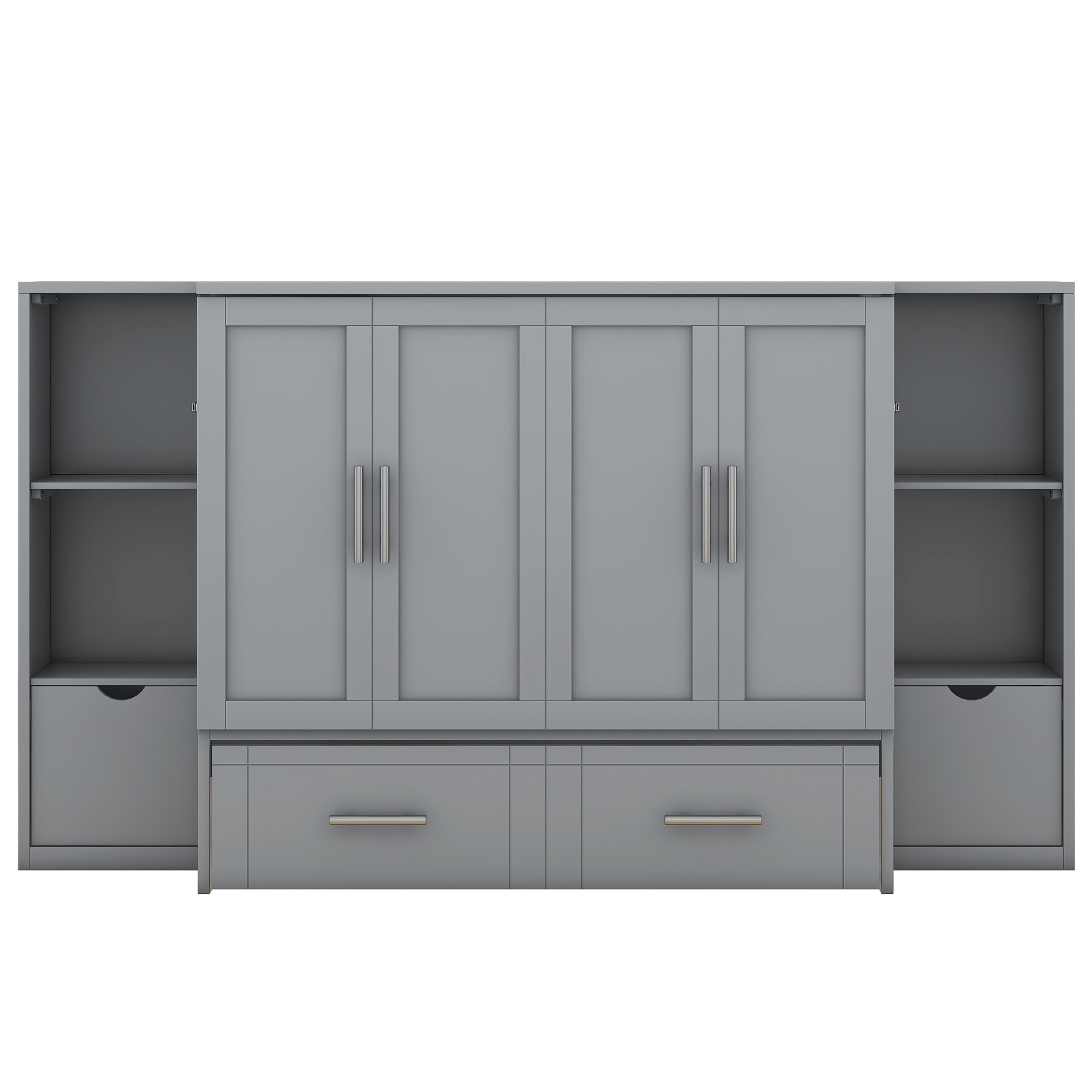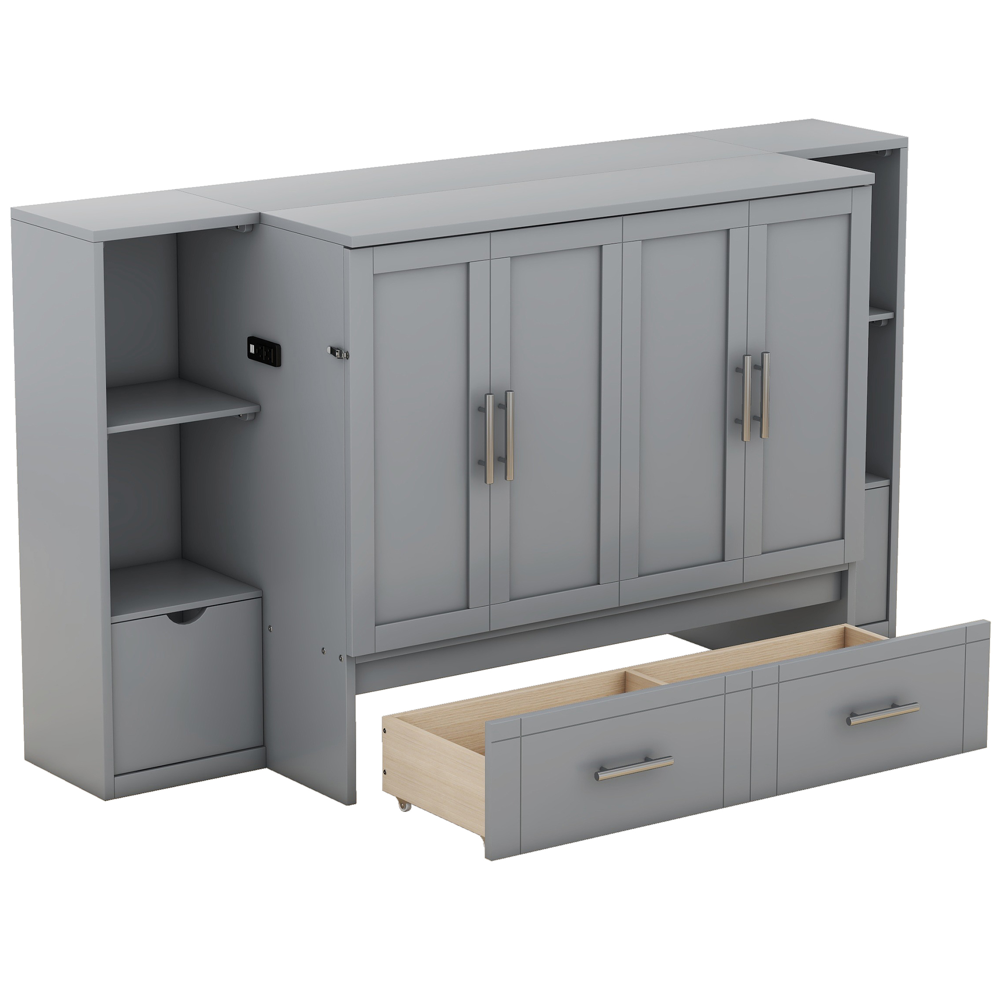 Queen Size Murphy Bed with Shelves, Drawers and USB Ports