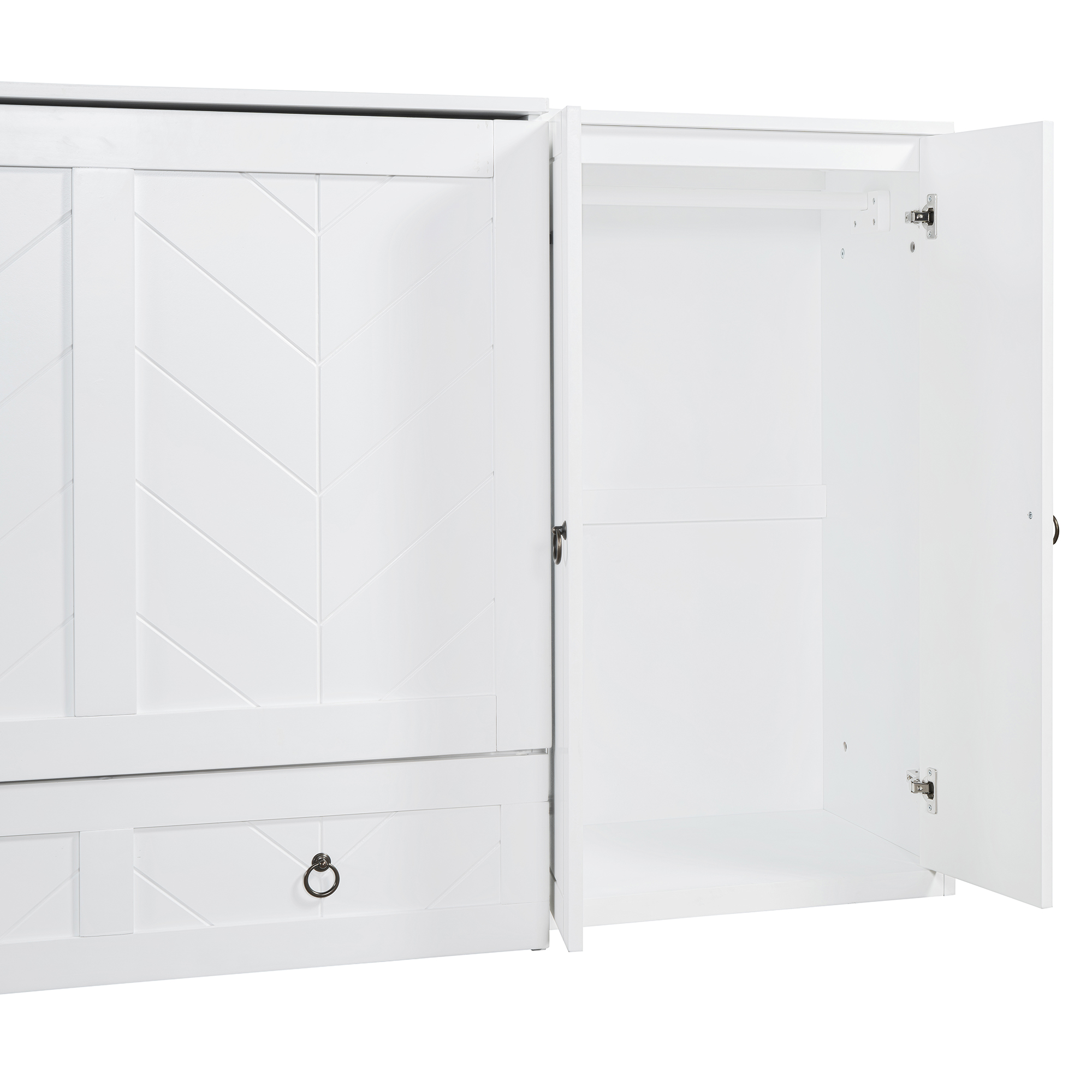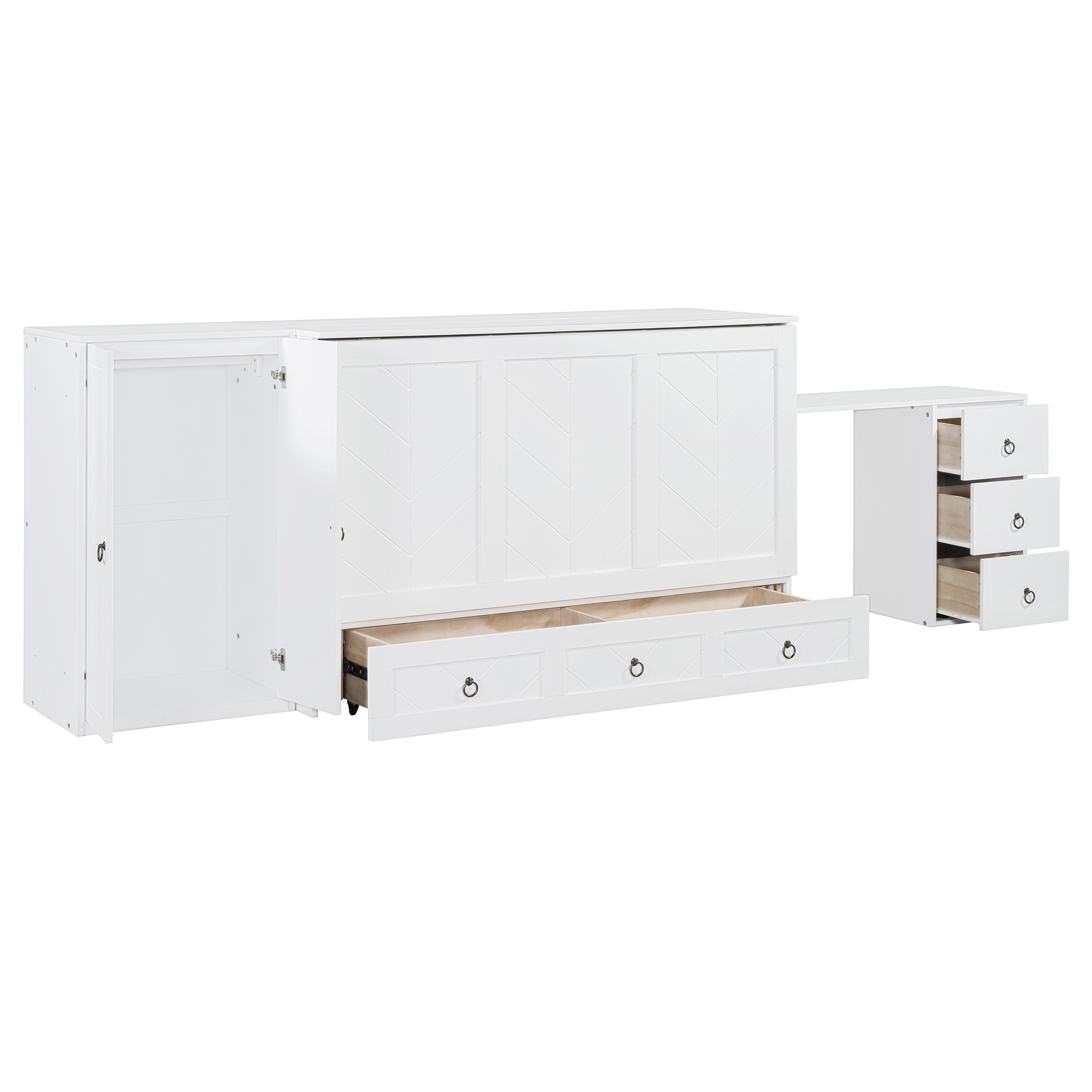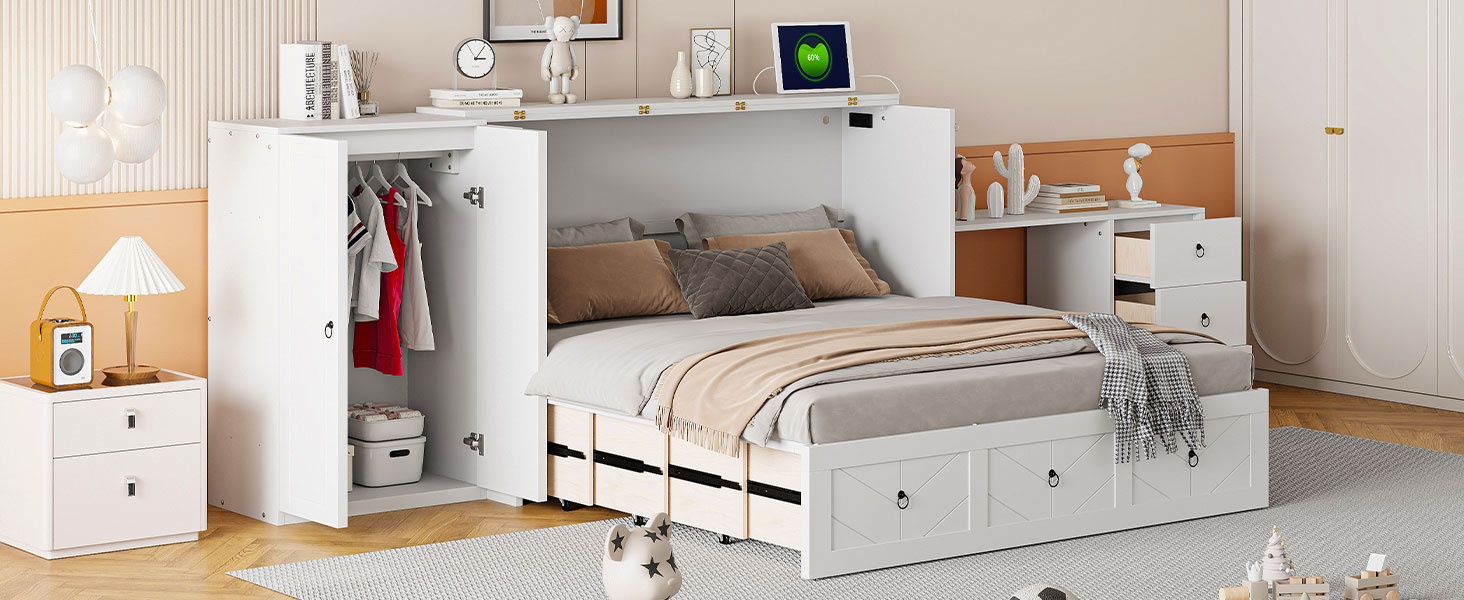 Queen Size Murphy Bed with USB Port, Large Drawer, and Wardrobe/Desk Combo