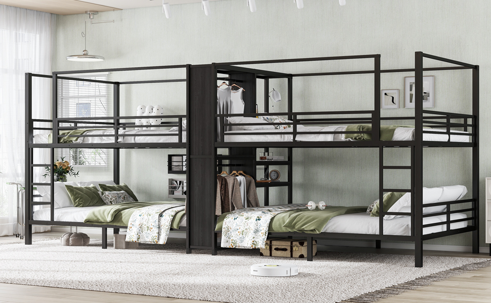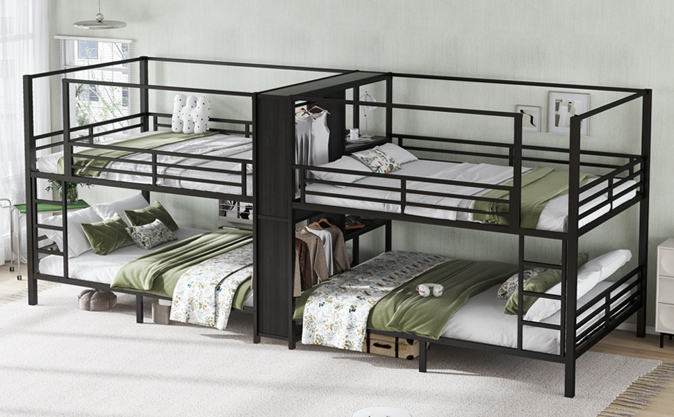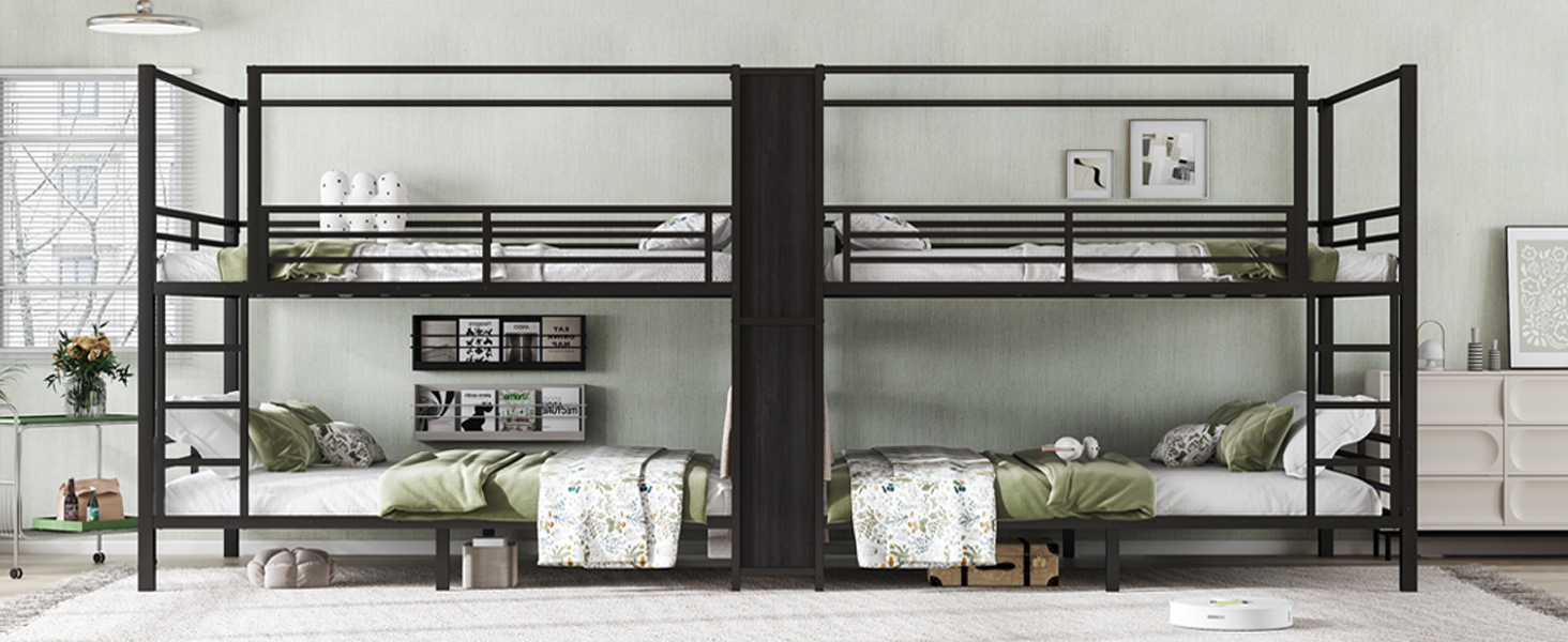 - [Space-Saving Quad Design]: This bunk bed provides four separate sleeping areas at the same time, and through the efficiency of vertical space, it is able to save the use of the floor area, whether it is a family with many children, a vacation home, or temporary entertaining guests, this bed is a great choice!