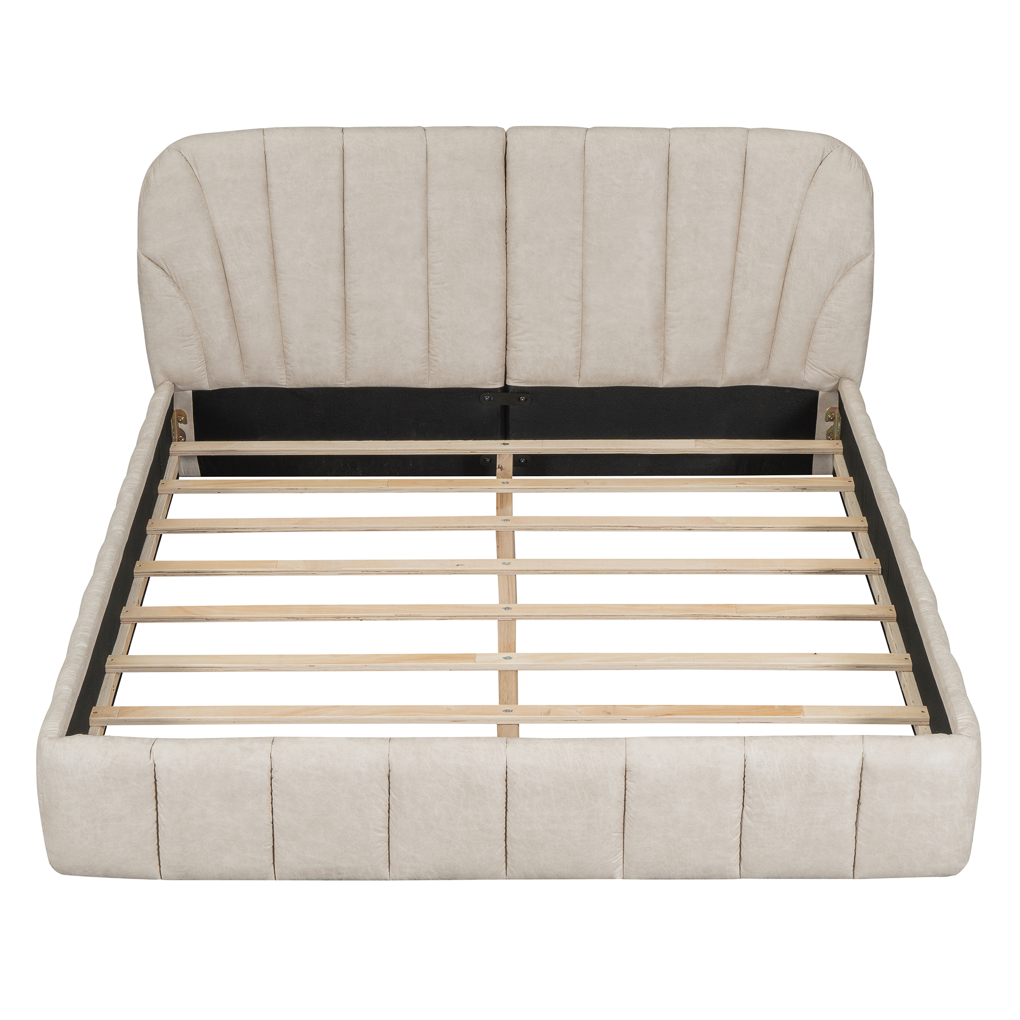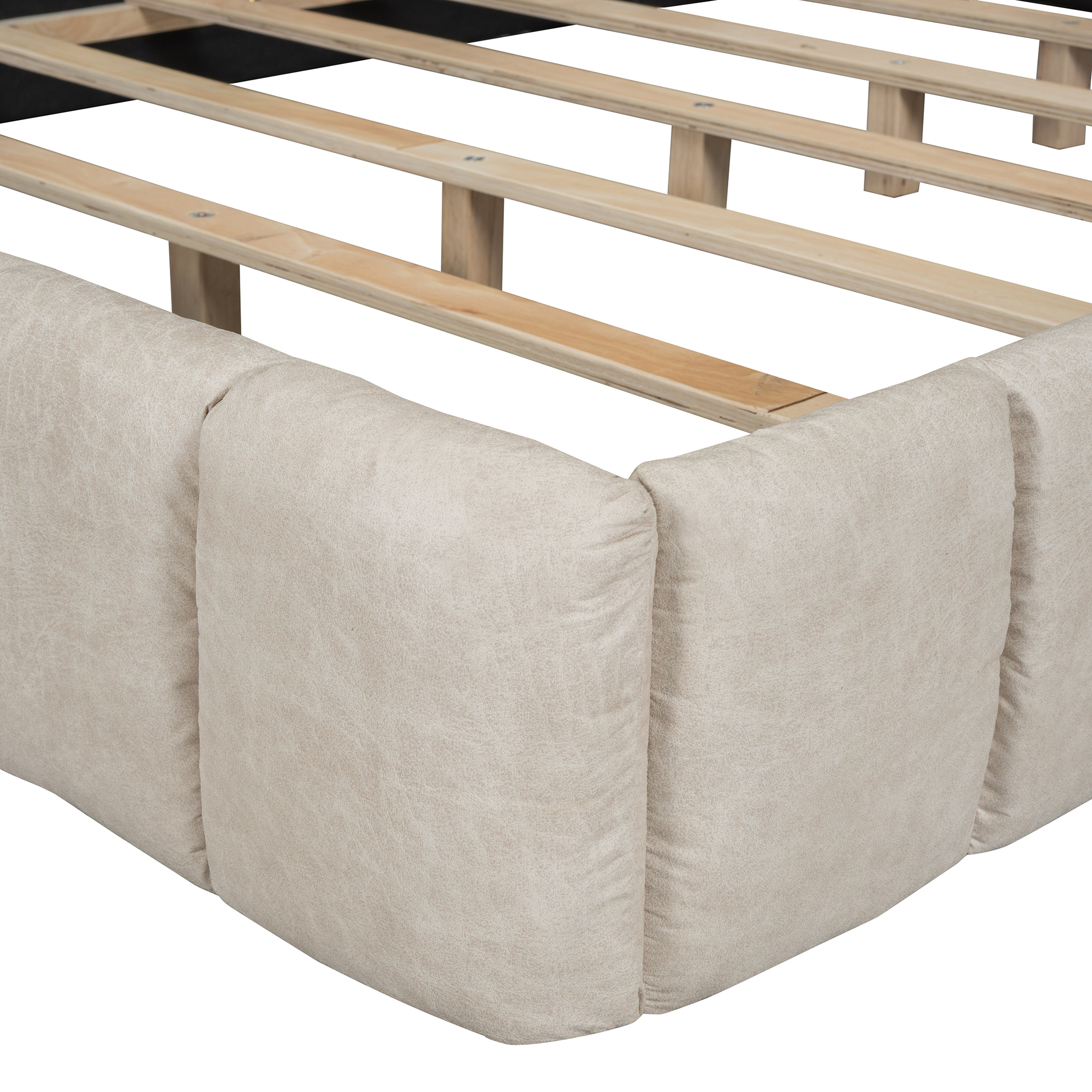Queen Size Upholstered Platform Bed with Thick Fabric, Polyester