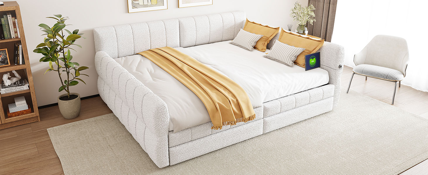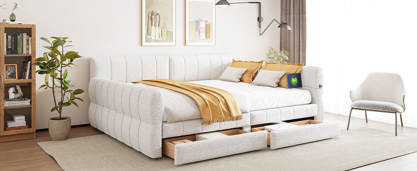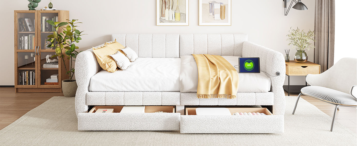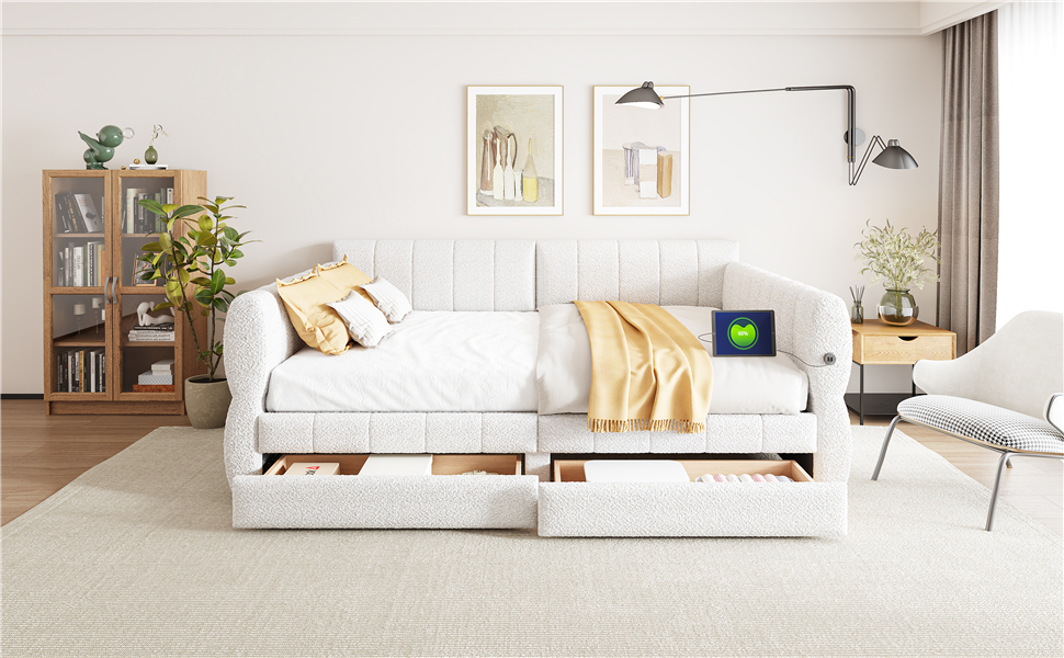- [Elegant Design] Upholstered in lambswool cover, features a backrest and two armrests with soft materials, this daybed not only suits any home décor but is timeless in its design.
