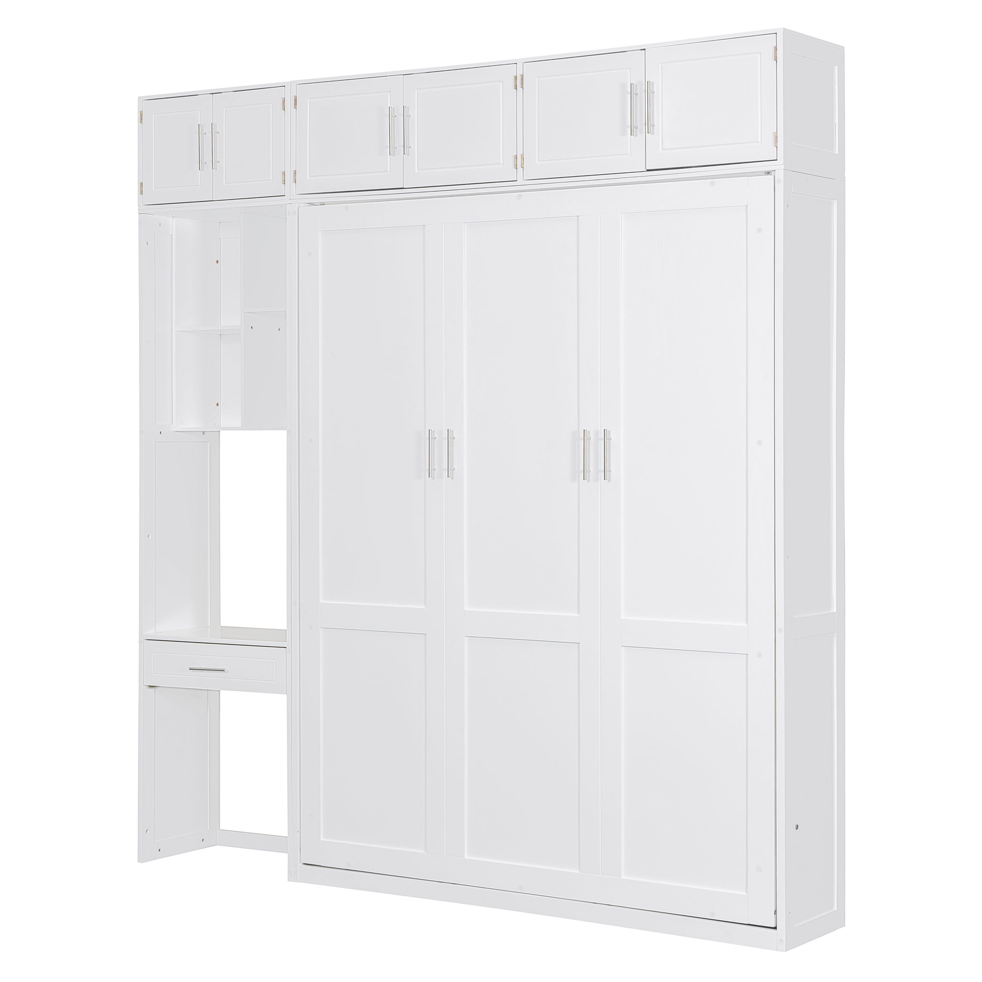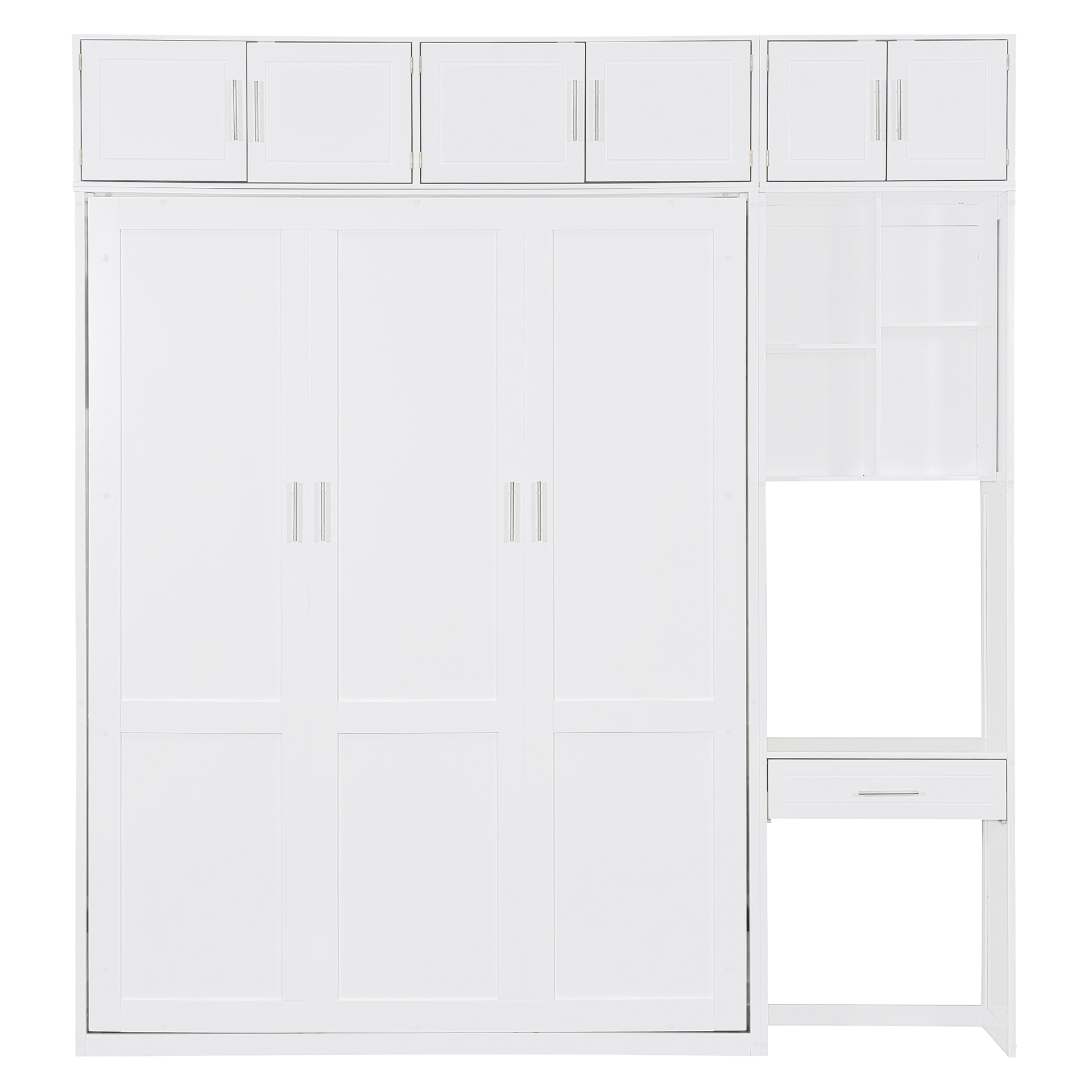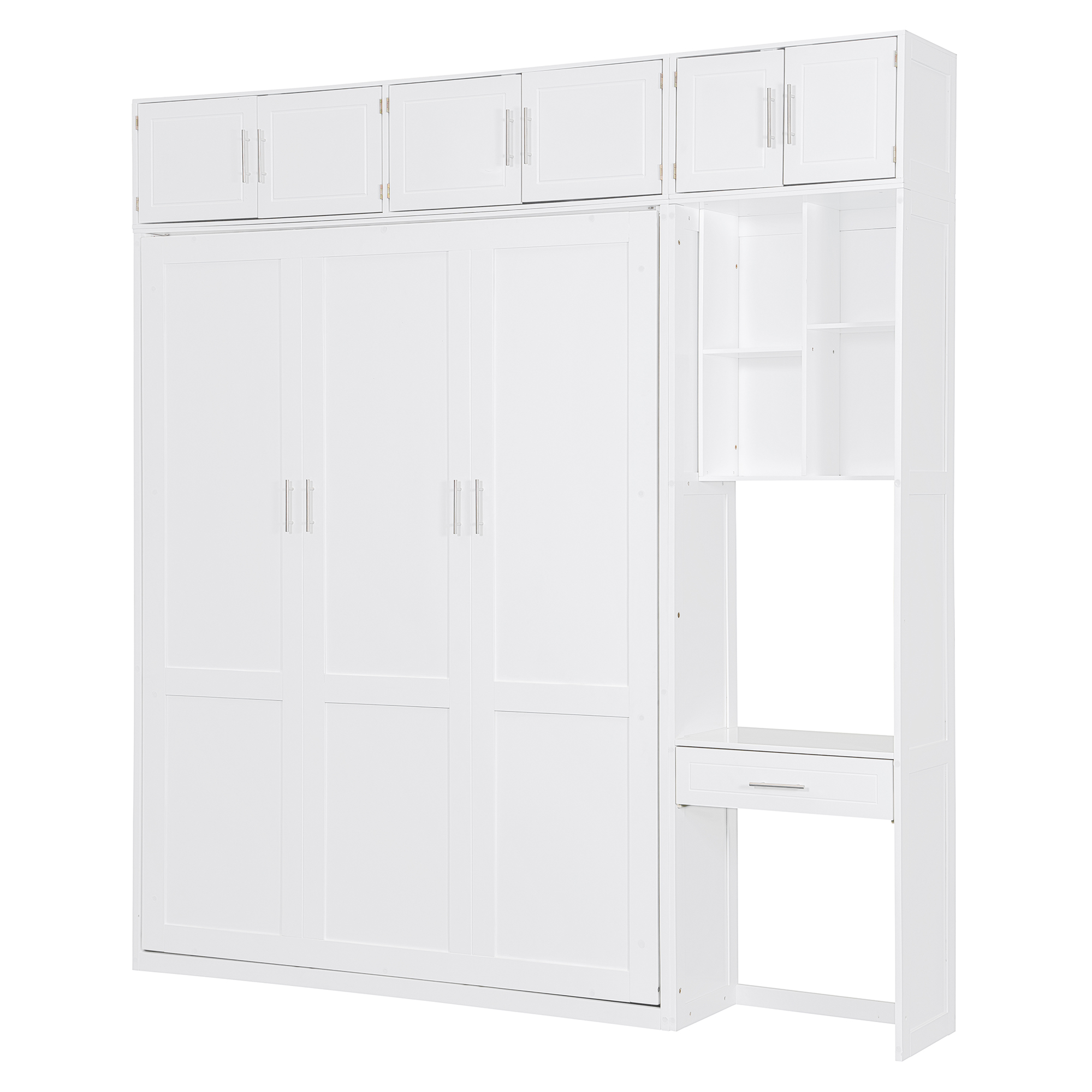 Queen Size Wall Murphy Bed With Desk, Top Cabinet And Storage Shelves