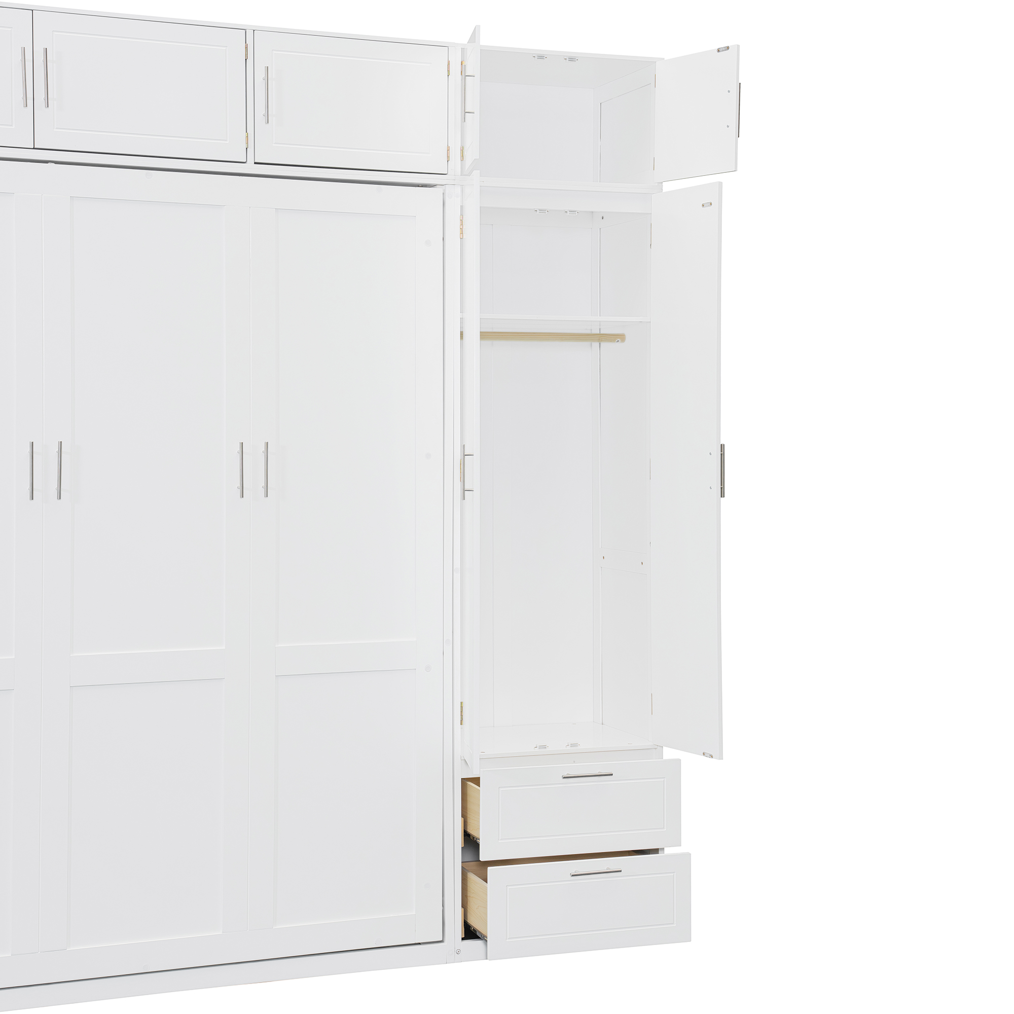 Queen Size Wall Murphy Bed With Top Cabinet, Shelves And Wardrobe