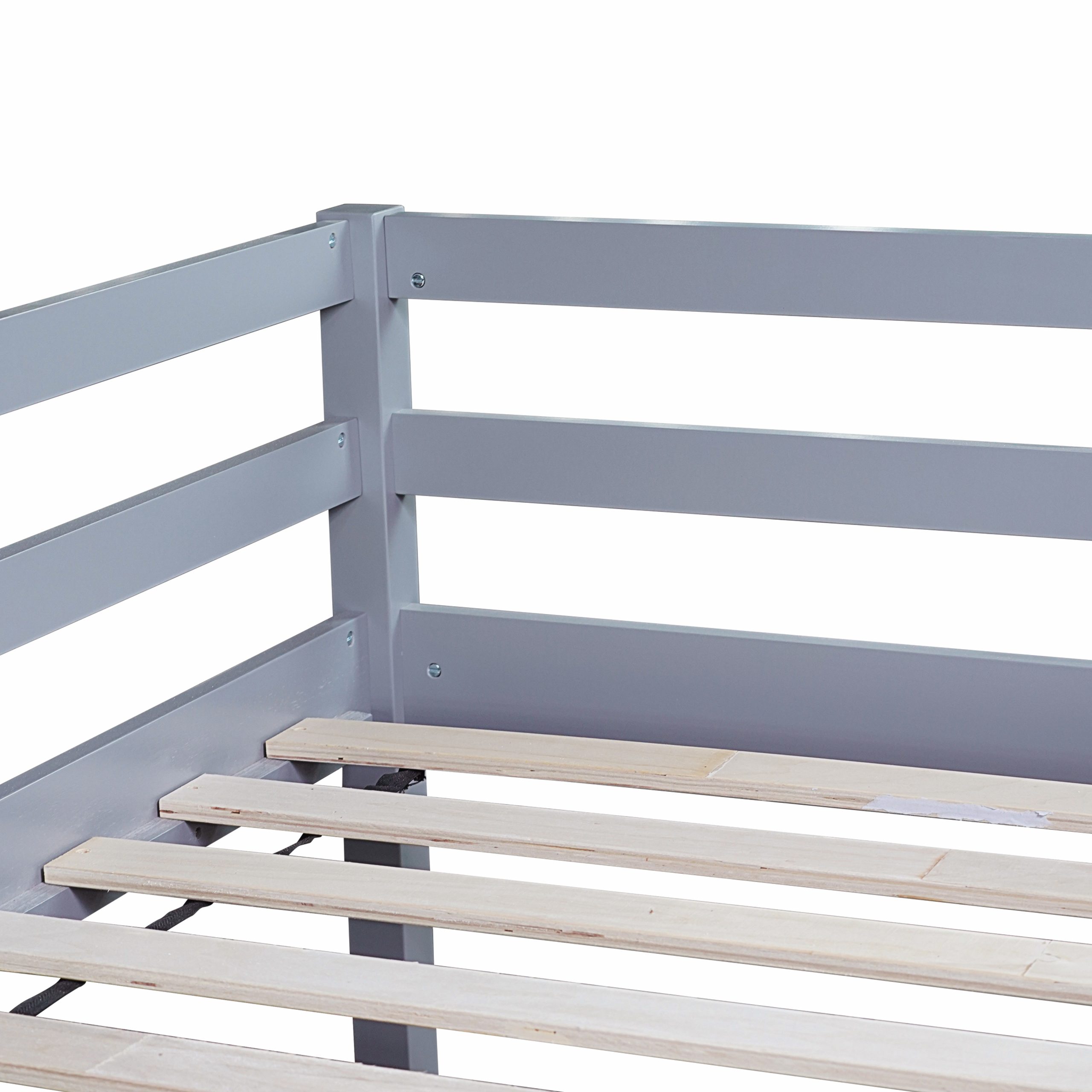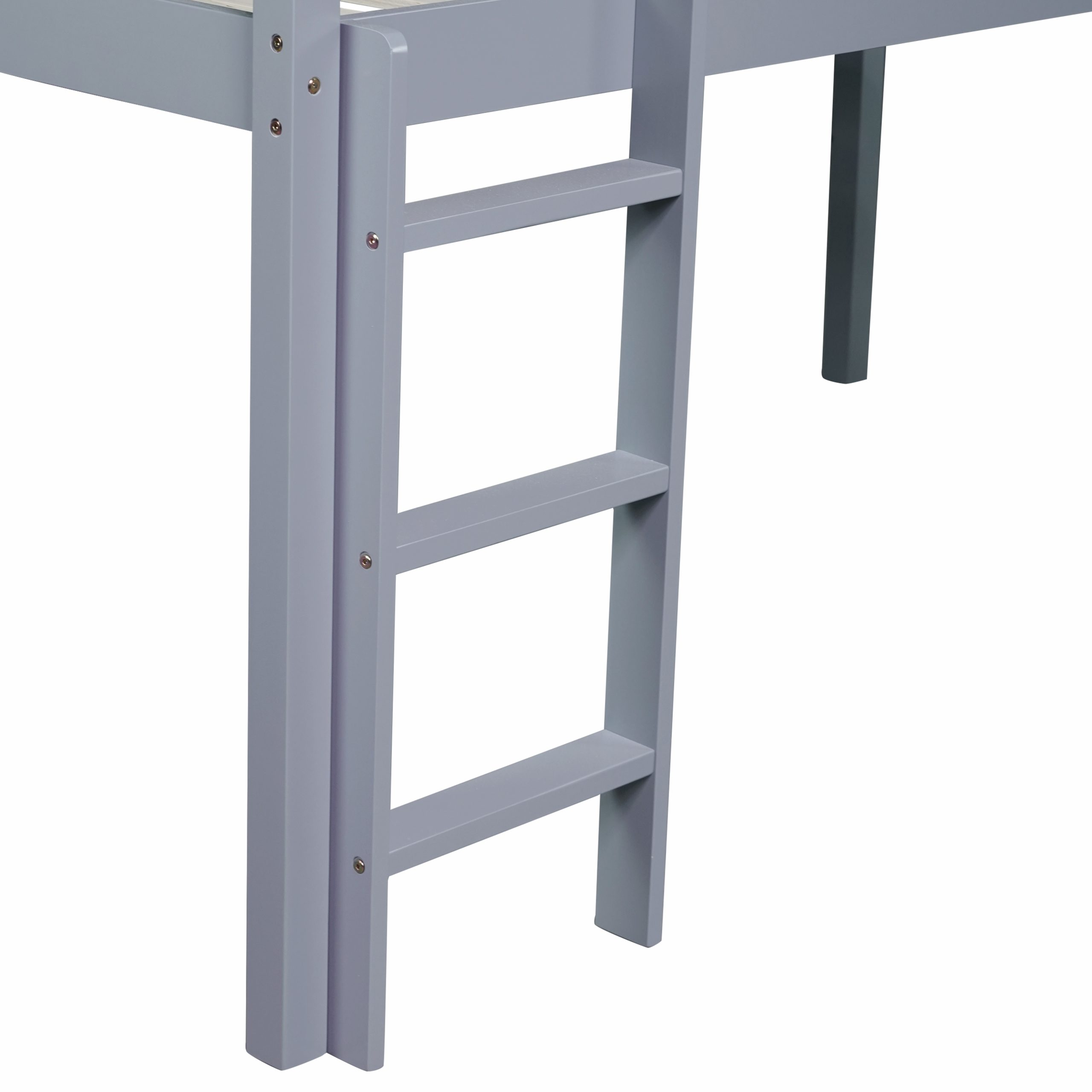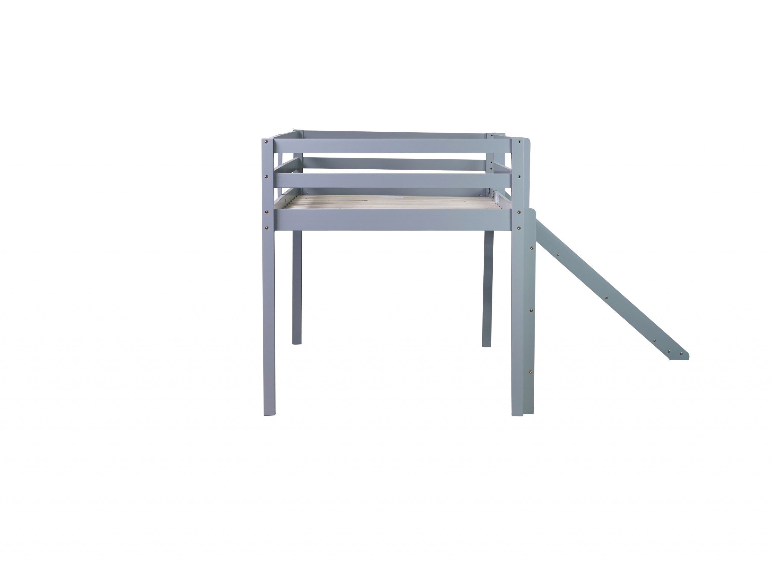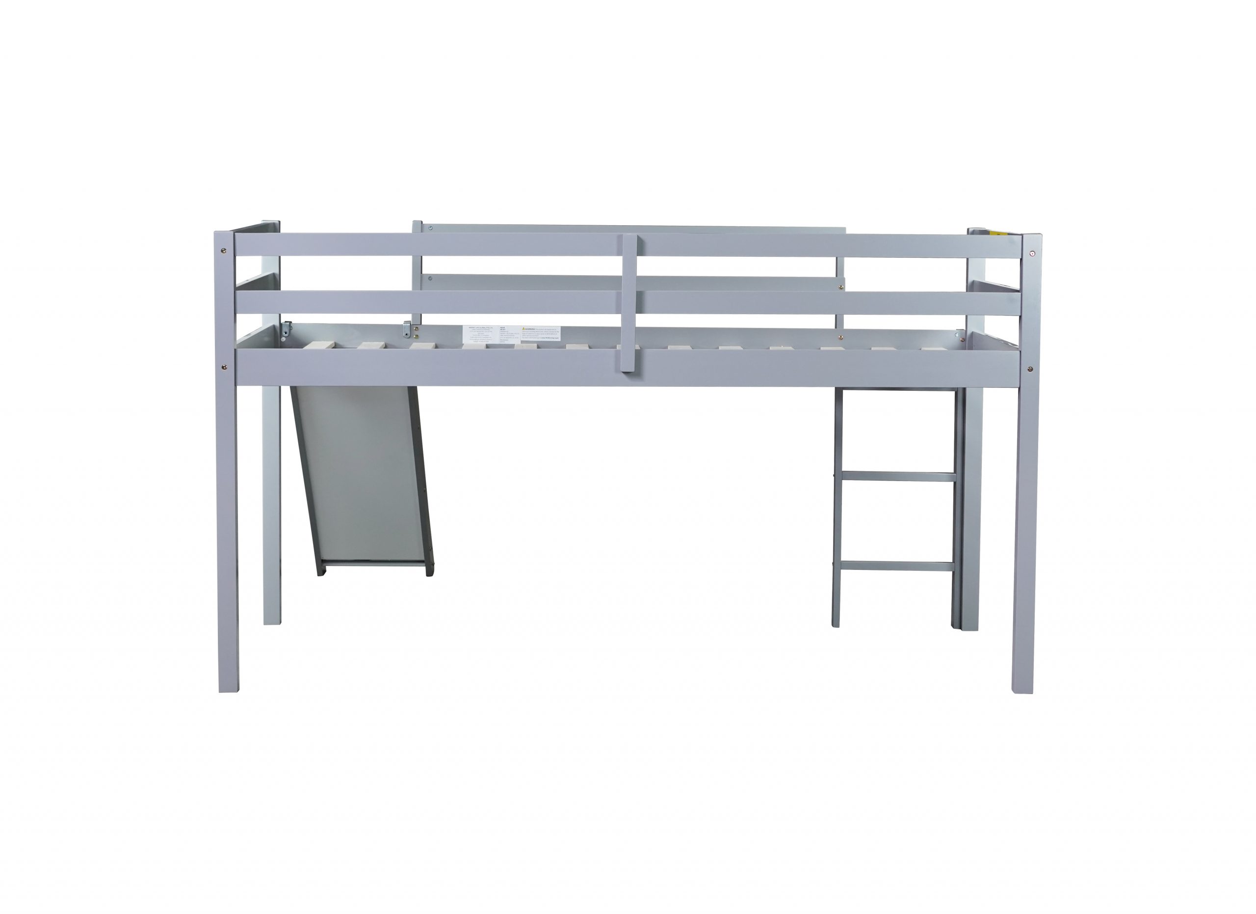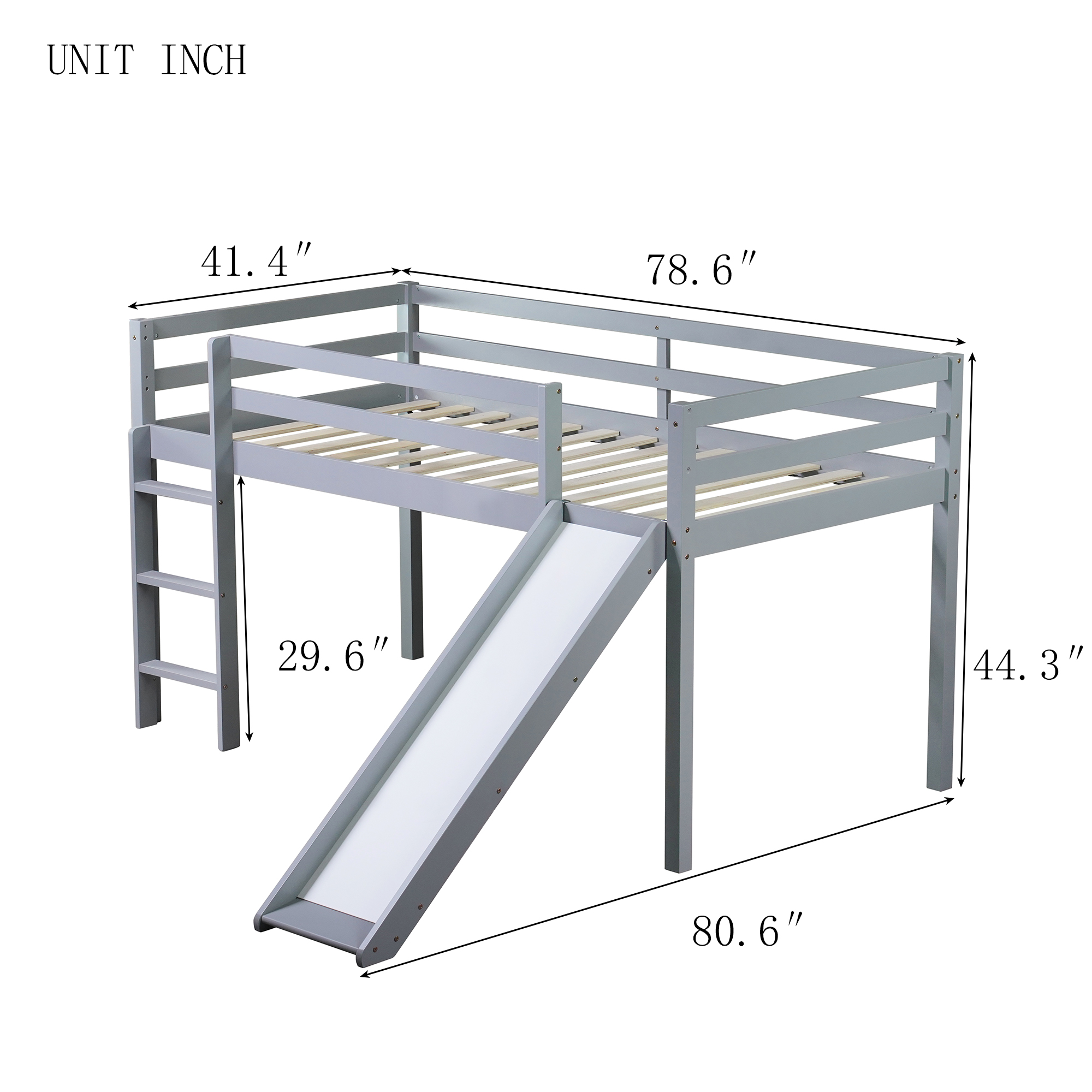 Rubber Wood Twin Low Loft Bed With Slide, Ladder and Safety Guardrails