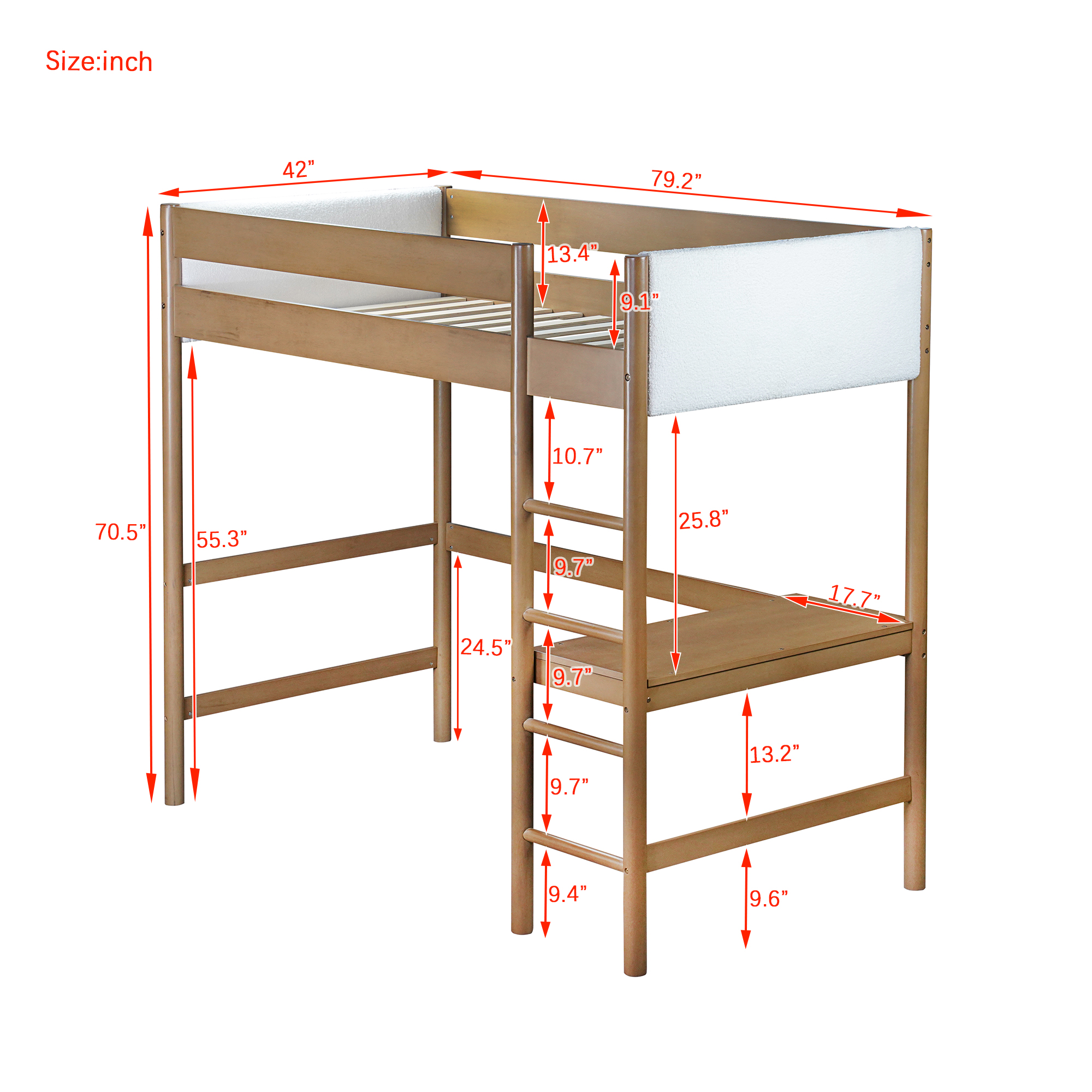 | Product Type | Loft Bed with Desk, Teddy-velvet Upholstered Headboard and Footboard |