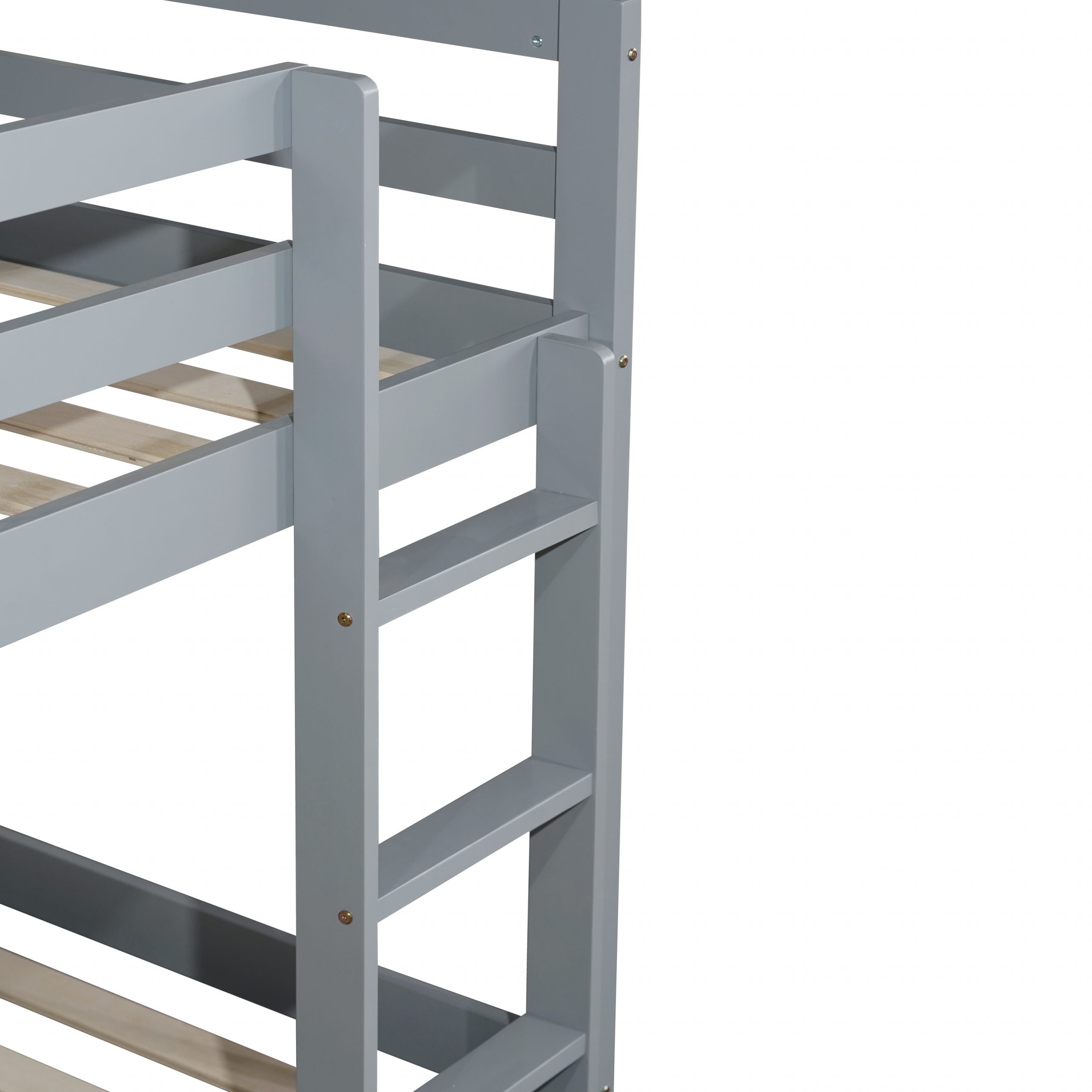 Solid Rubber Wooden Twin over Twin Loft Bed with Ladder ,Upper and Bottom Bed