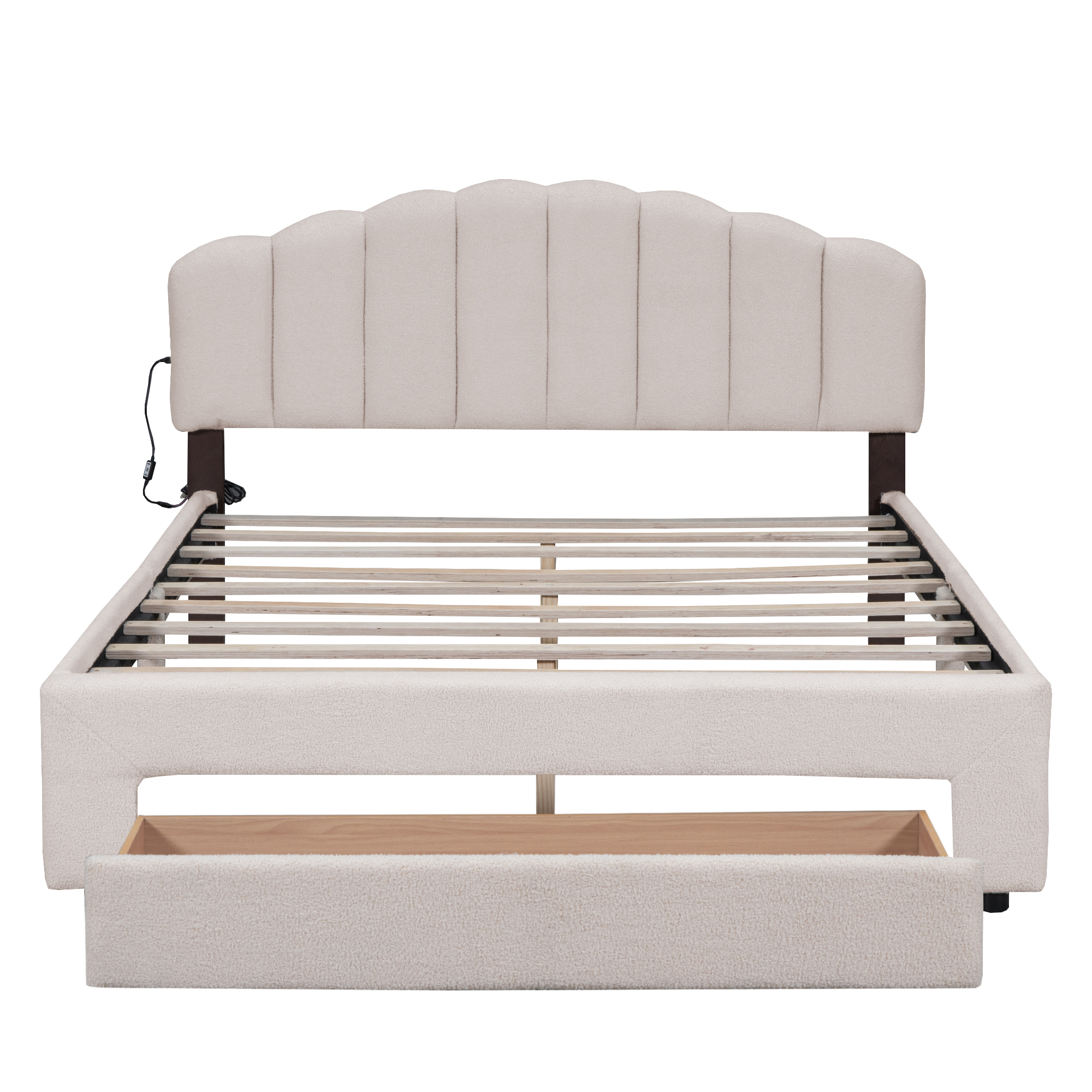 - [A Storage Drawer] This Upholstered bed with one large drawer under bed for storage, perfect for organizing anything from clothes and bed linens to toys and games. Such a versatile piece, bringing functionality, versatility, and style to your home, perfect space saving functionality.