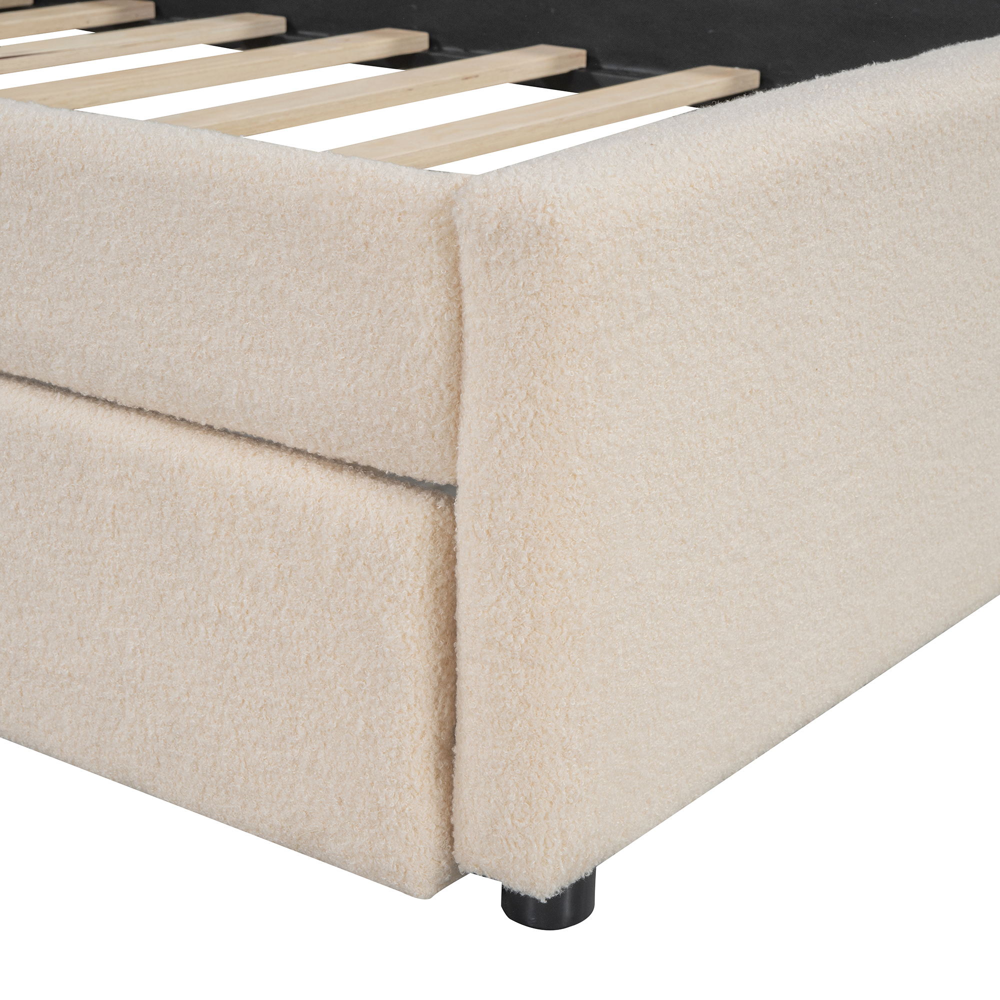 Teddy Fleece Twin Size Upholstered Platform Bed with Trundle
