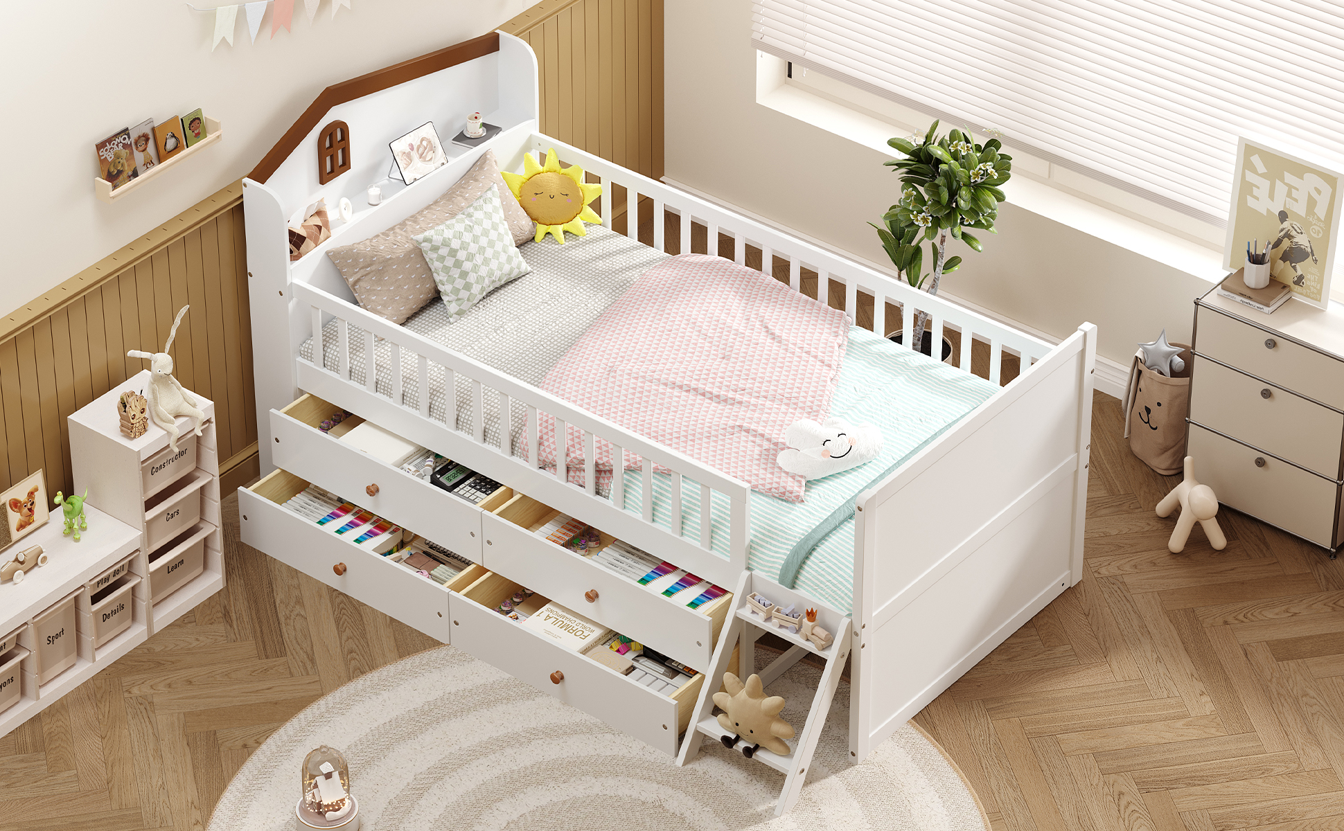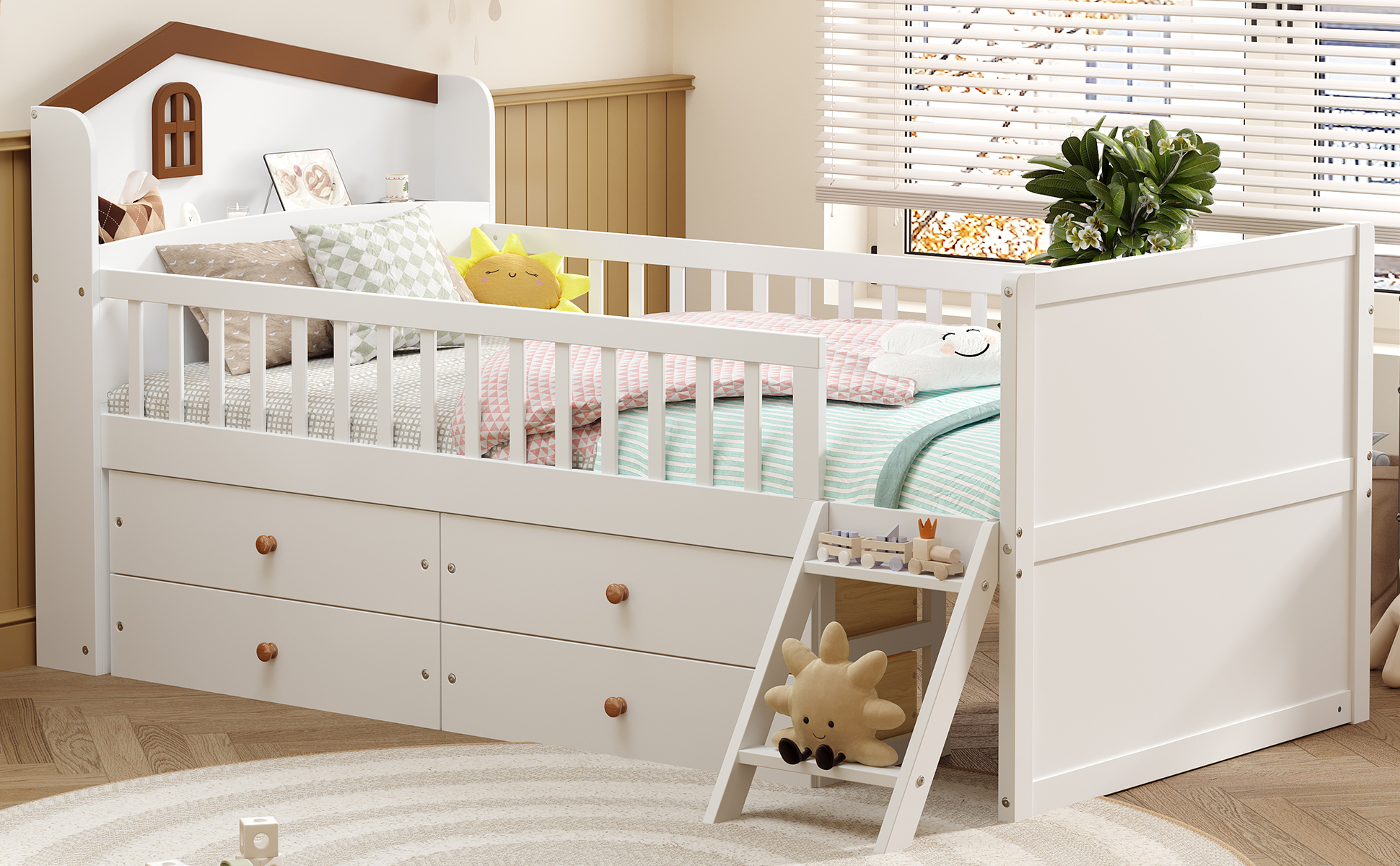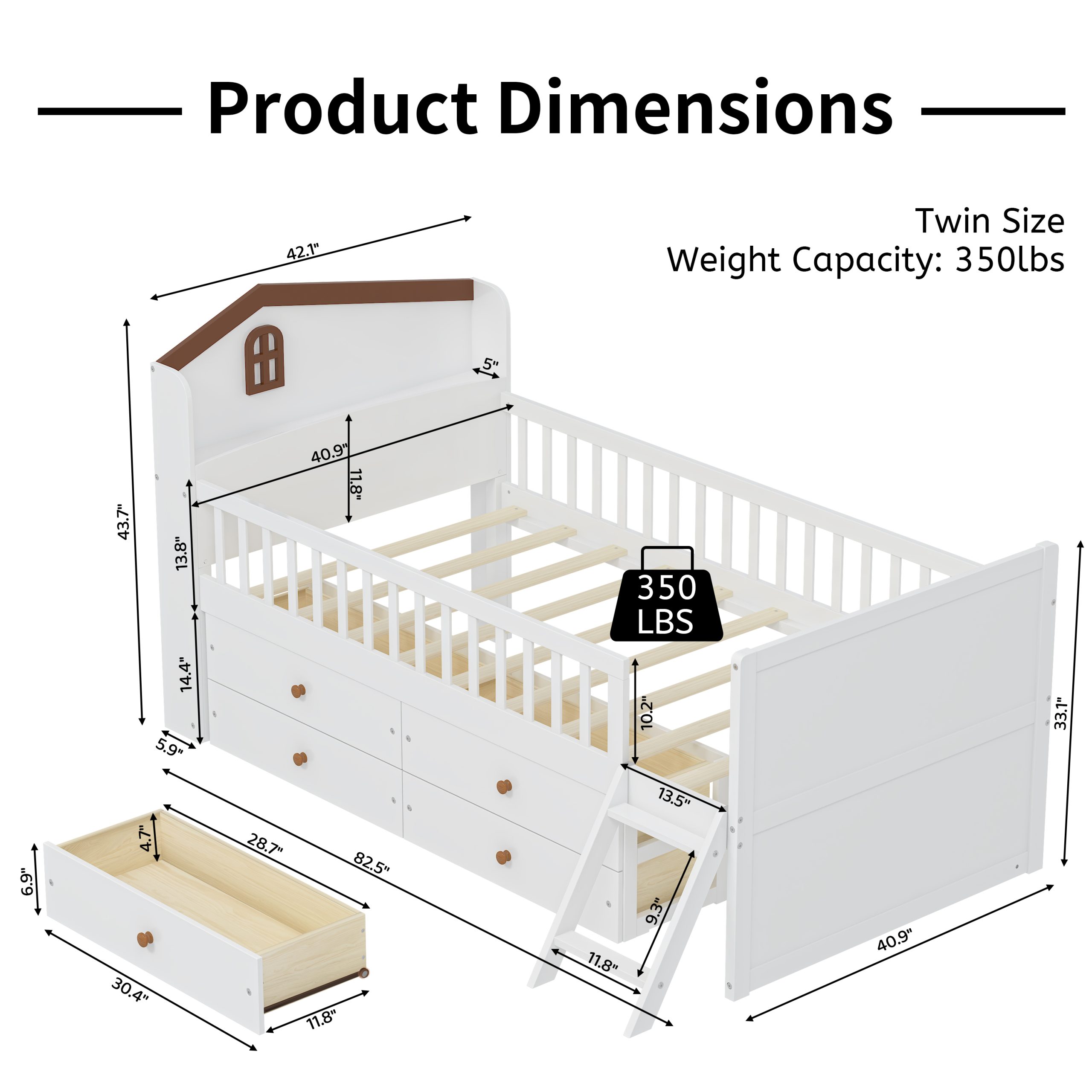 - [Twin Bed Frame with Storage 4 Drawers]: This twin bed frame for kids is designed with 4 storage drawers, offering plenty of space to store clothes, toys, bedding, and other essentials. These drawers help keep the room tidy and organized while maximizing storage efficiency.