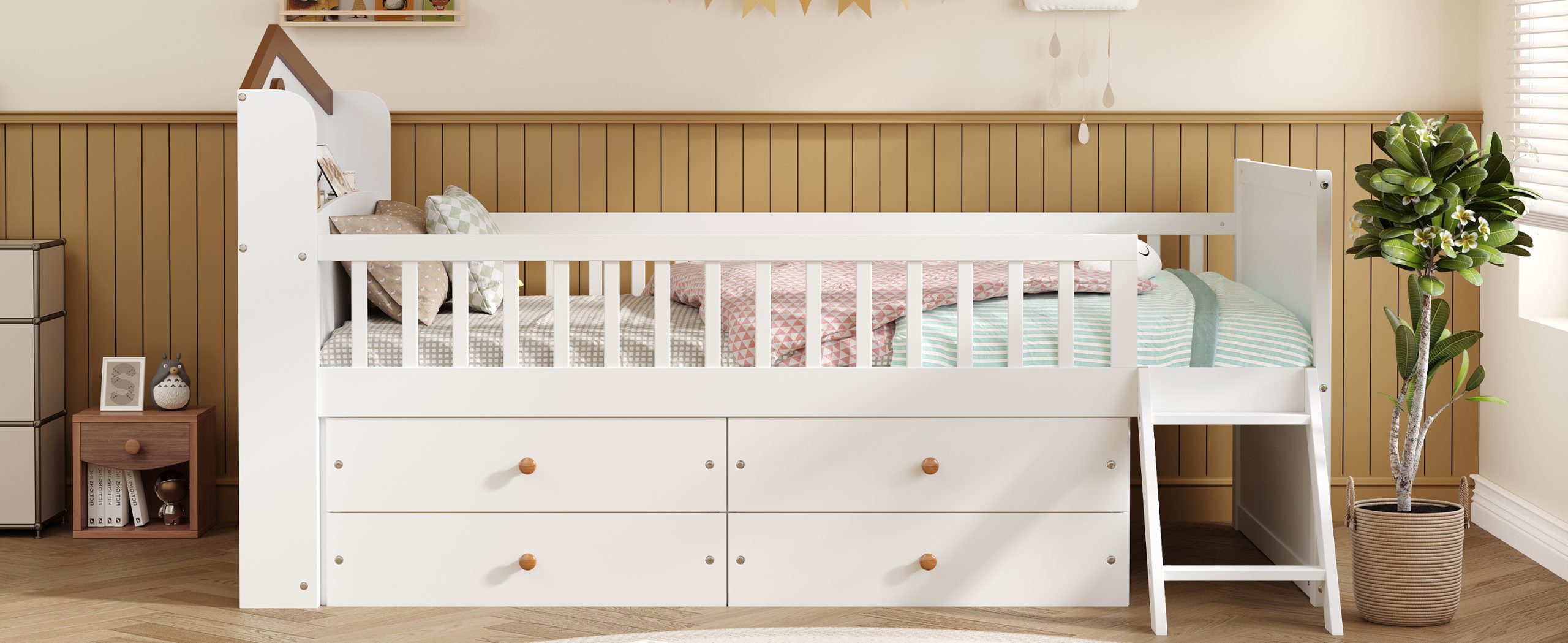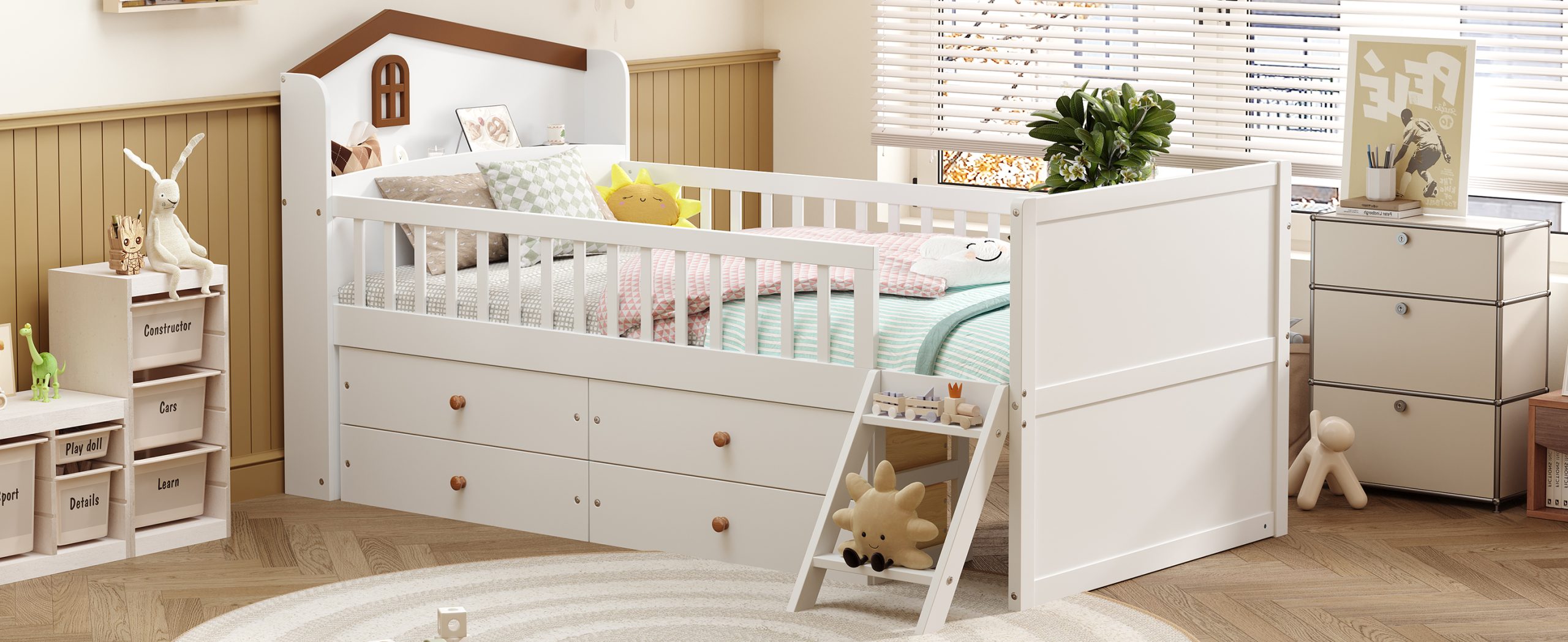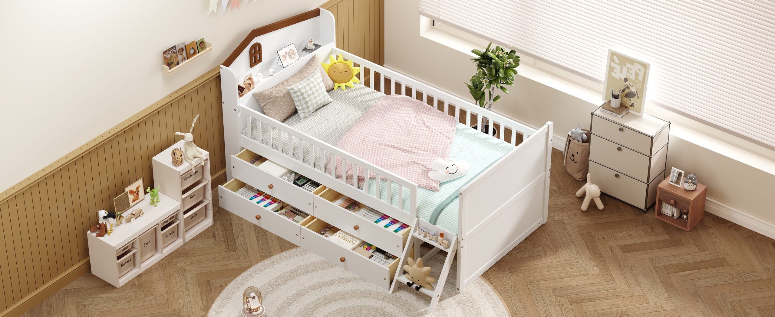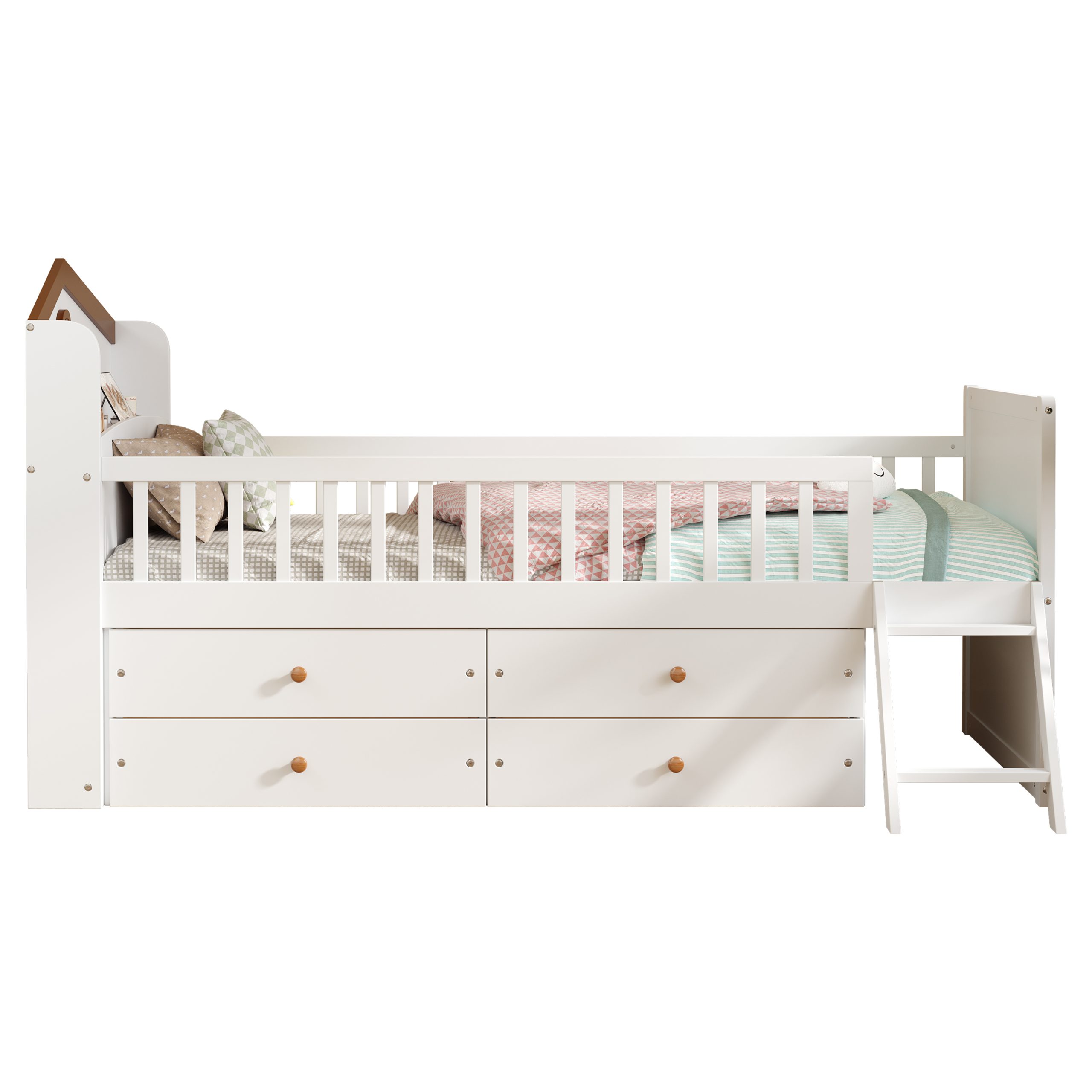 - [Twin Bed Frame with Storage 4 Drawers]: This twin bed frame for kids is designed with 4 storage drawers, offering plenty of space to store clothes, toys, bedding, and other essentials. These drawers help keep the room tidy and organized while maximizing storage efficiency.