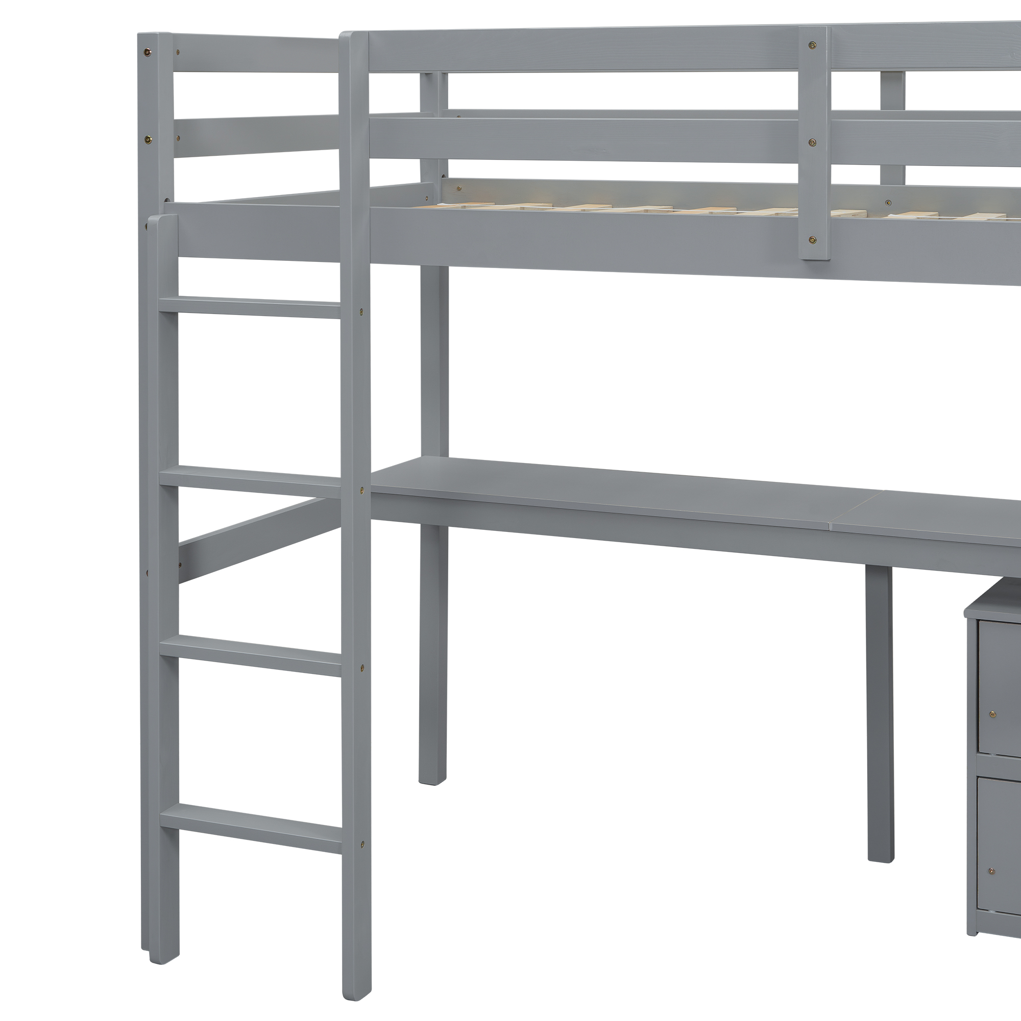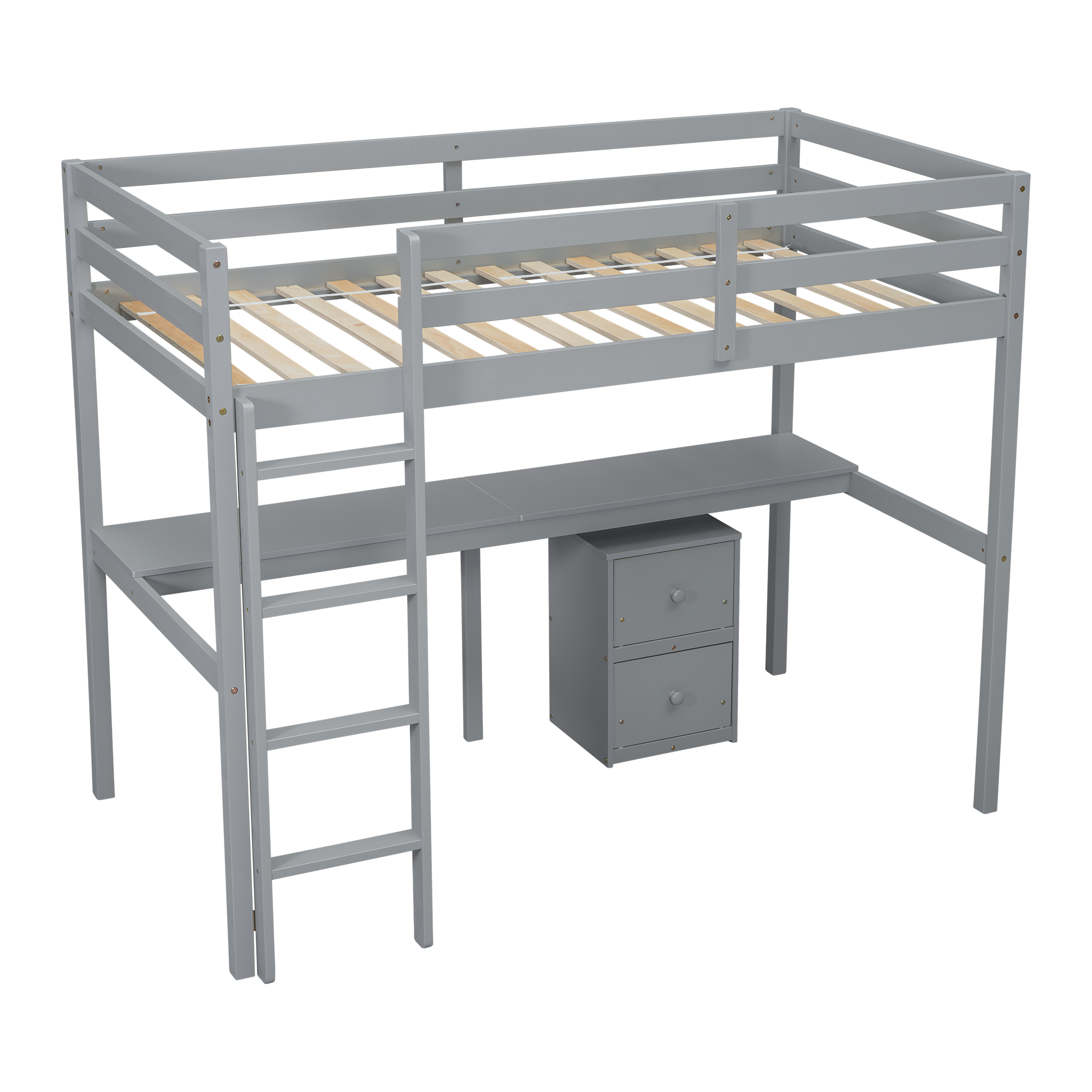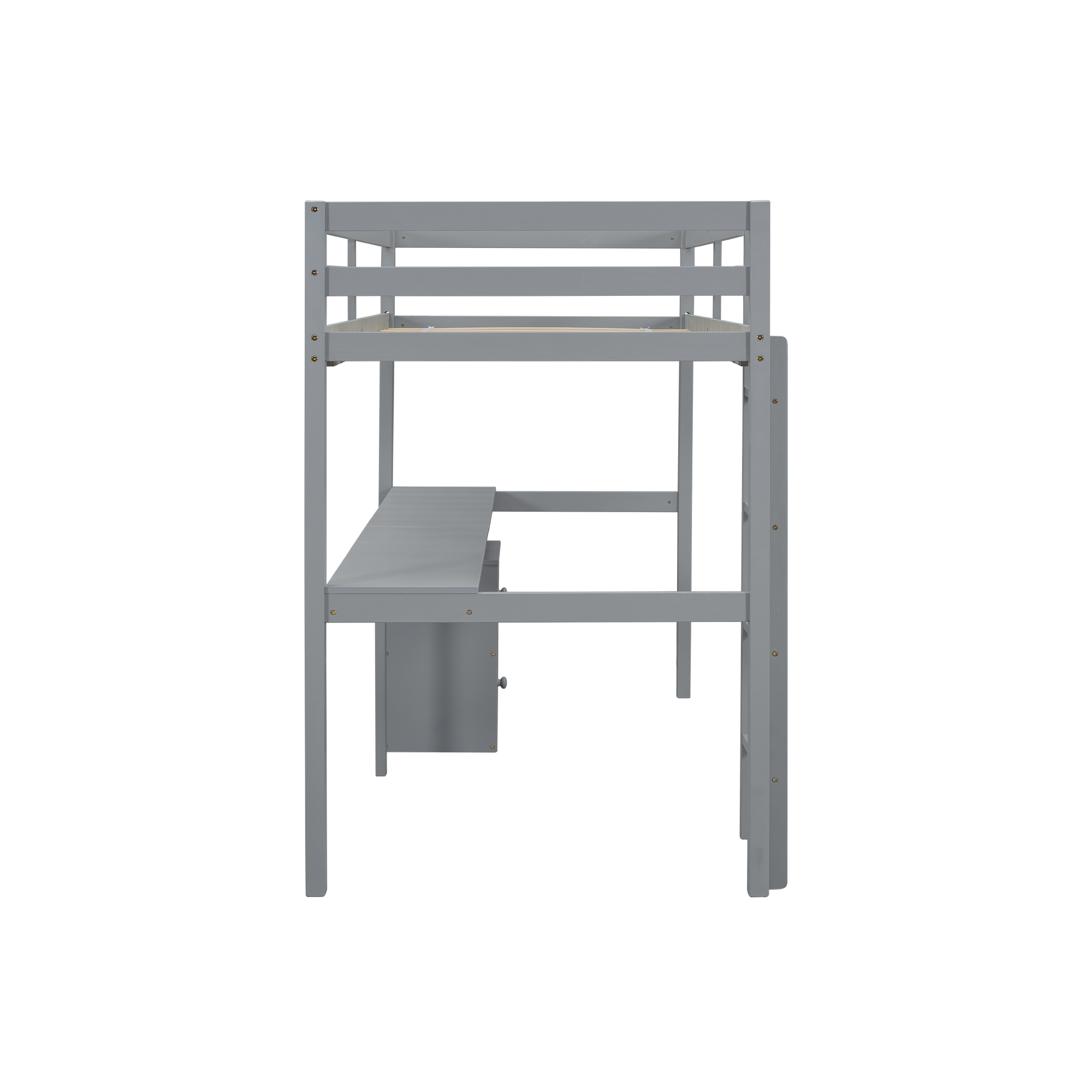 - [Comprehensive Design]The feature of this loft bed not only ensures better sturdy construction, but also reduce safety concerns, the desk offering the kids a quiet, cozy place for reading and writing. In addition, the built-in ladder against the upper bunk is designed with a safe and wider width to provide more spacious steps and solid support, making it easier for you to climb up and down the ladder.