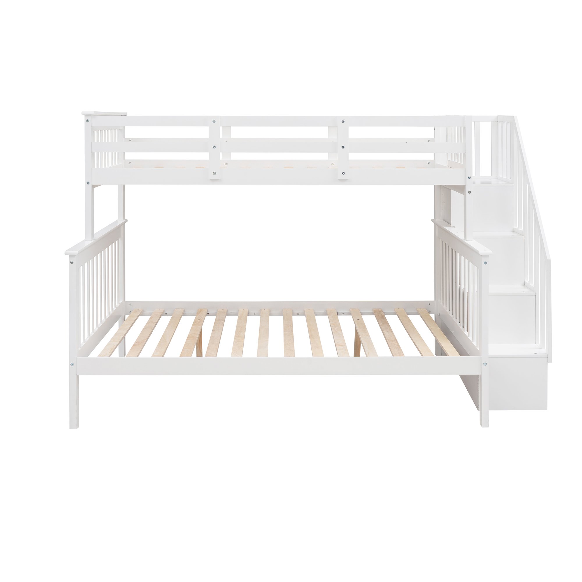 - [Maximized storage space] Four compartments of different sizes hide underneath the stairs of this bunk bed and are perfect for you to store quilts, bed sheets, and other necessities. On top of that, you can store books and toys, making room tidying a breeze. Functional and aesthetic, this bunk bed will enhance any bedroom.