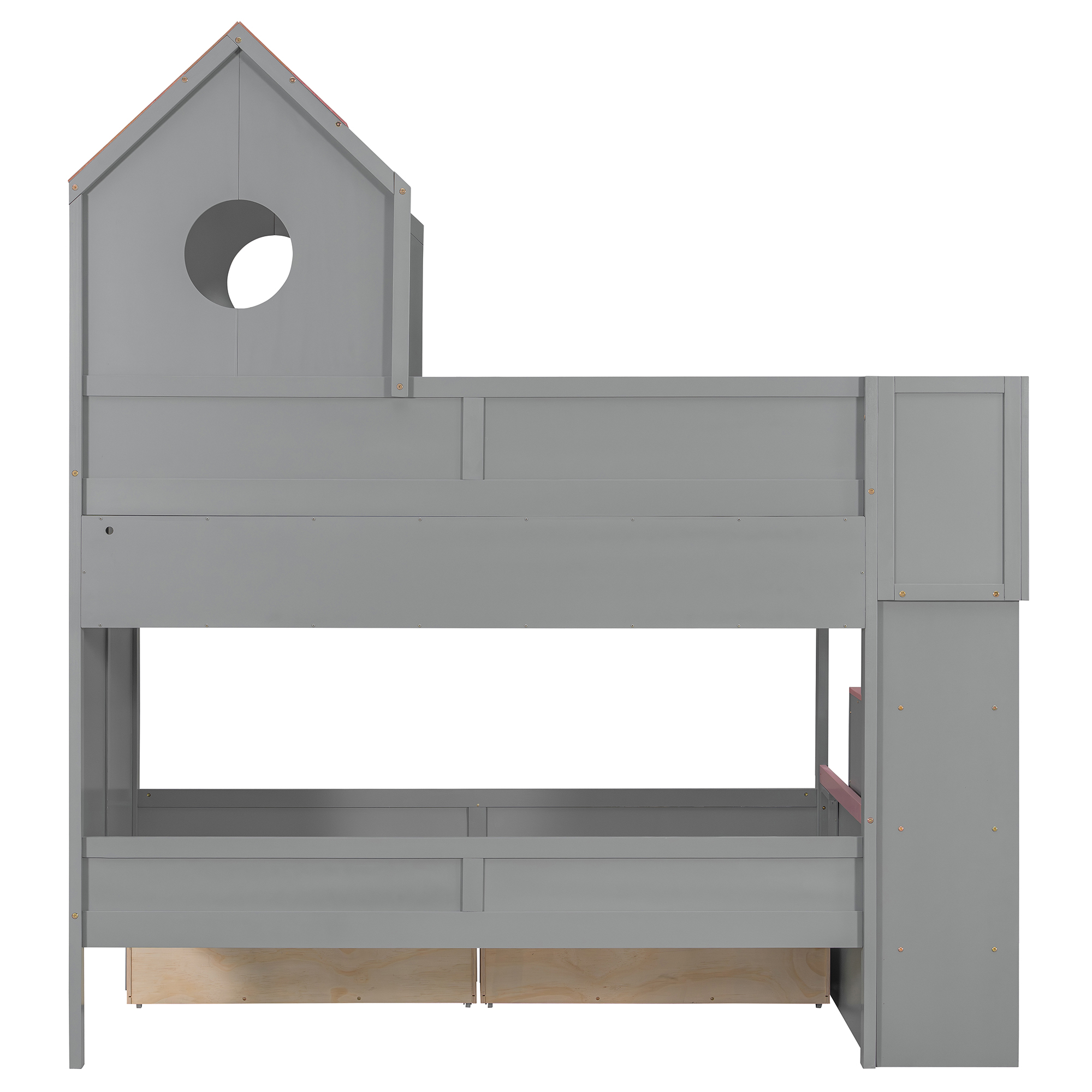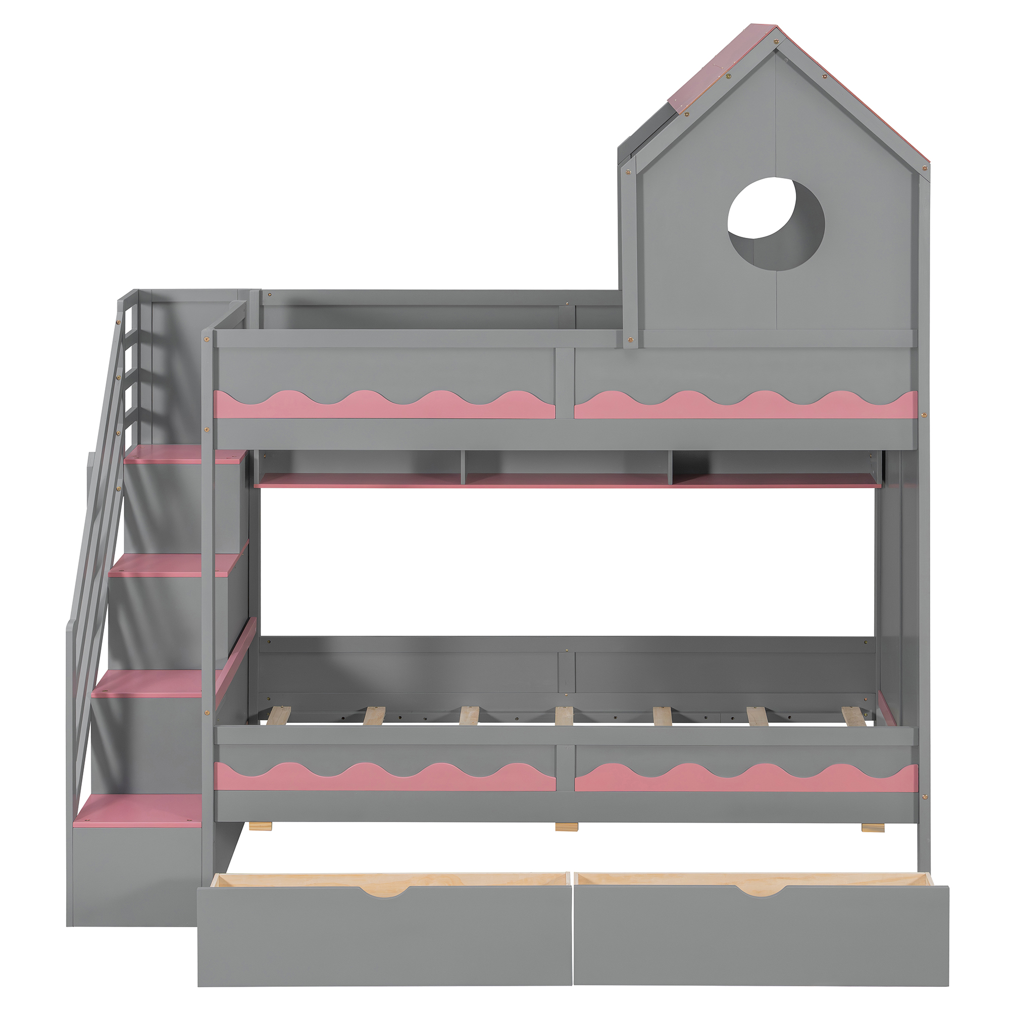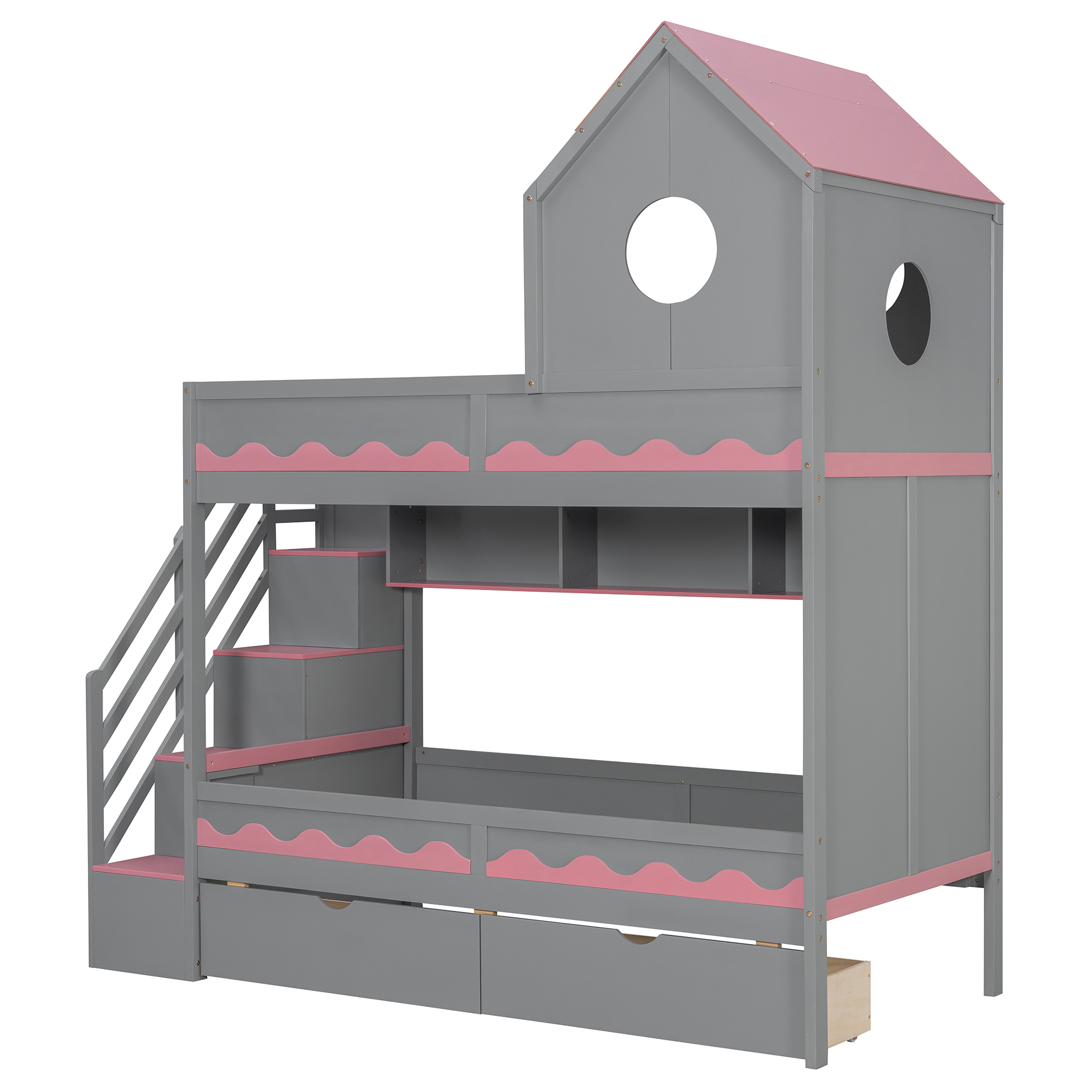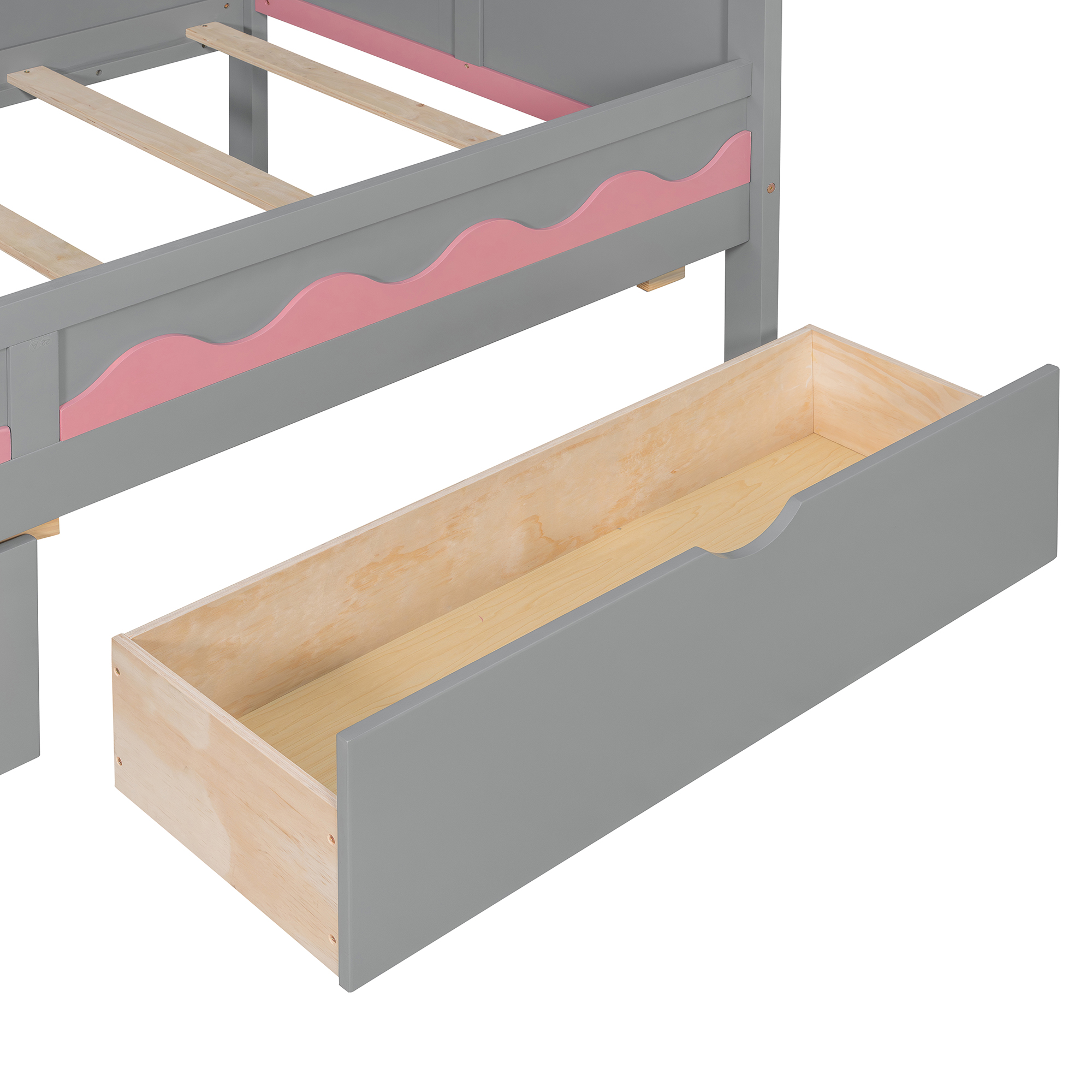 - [Enchanting Castle-Style Top Bunk] The upper bunk features a charming castle-inspired design, creating a magical, dream-like atmosphere that transforms the bed into a mini playhouse for your little ones.