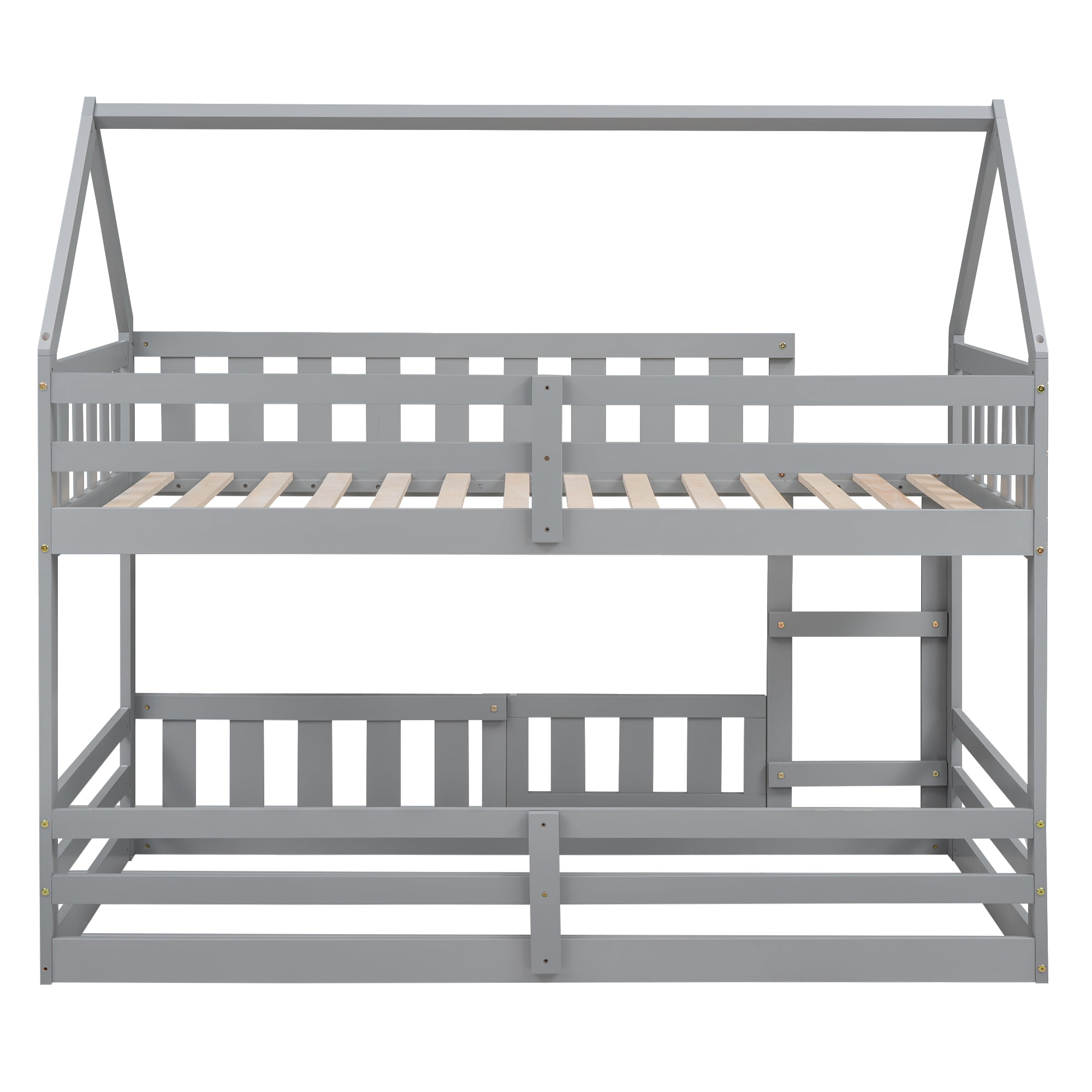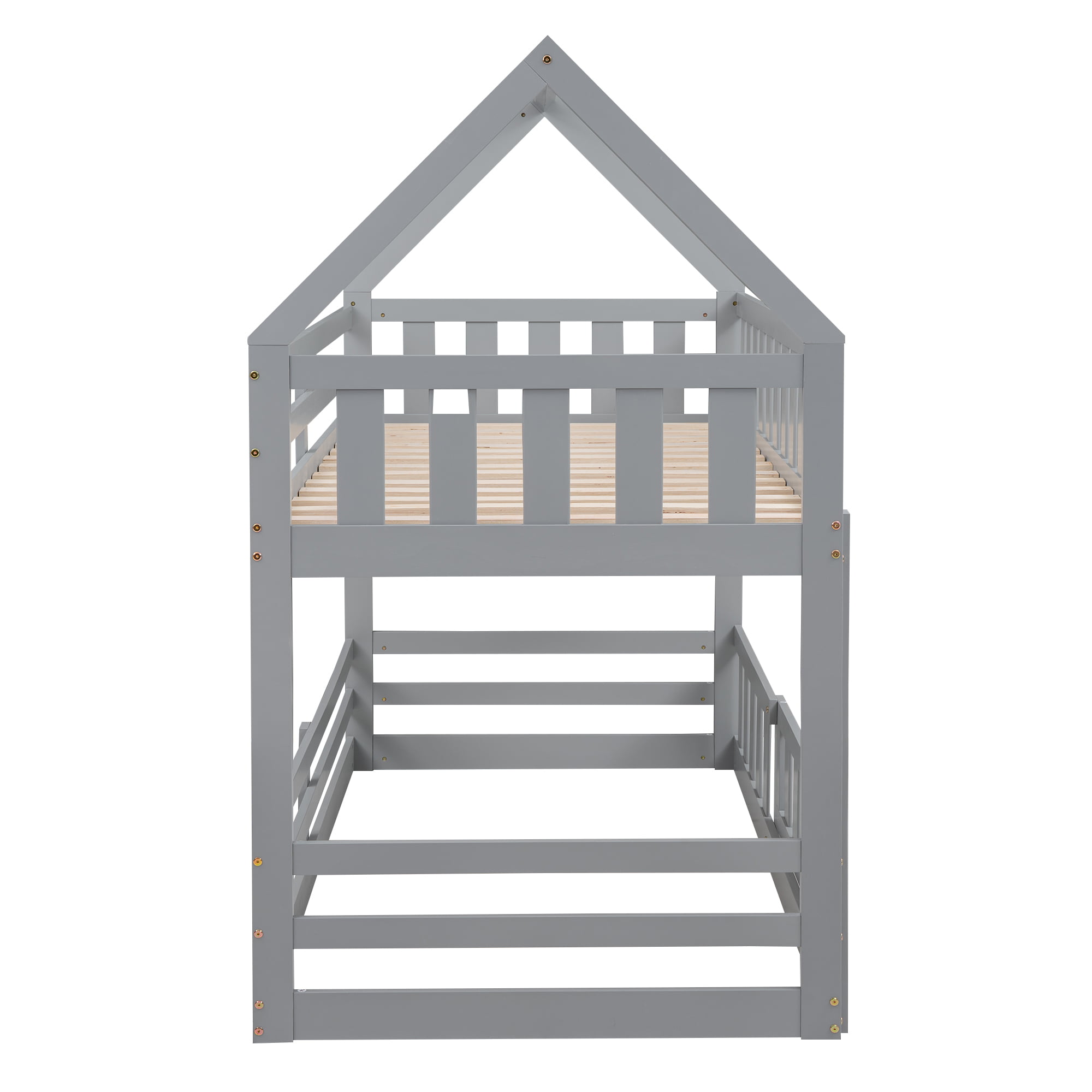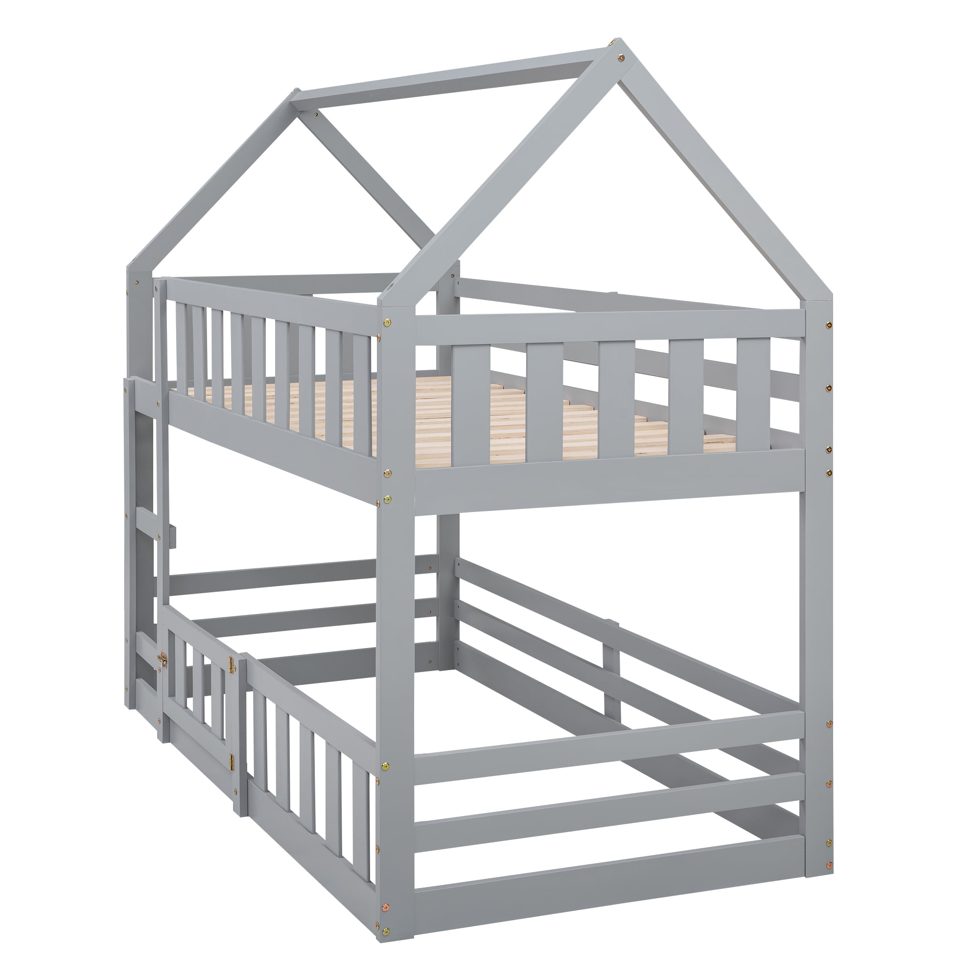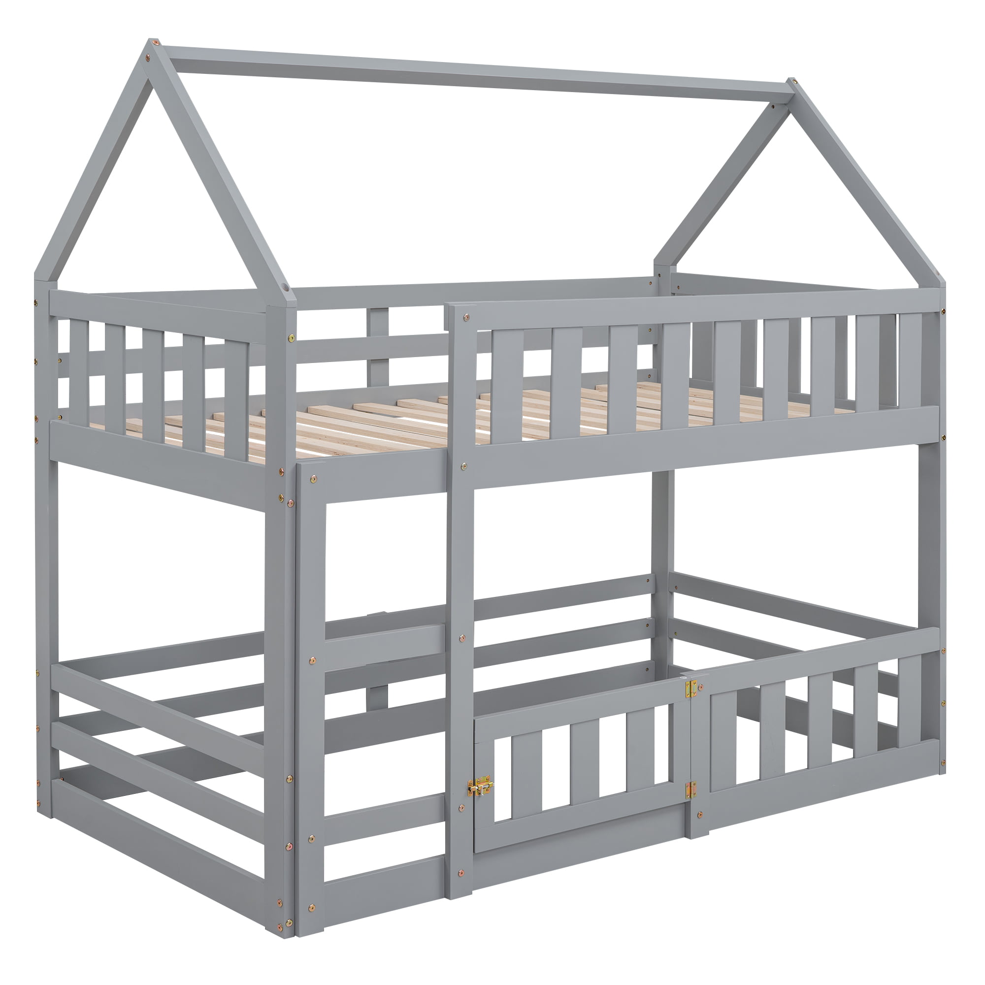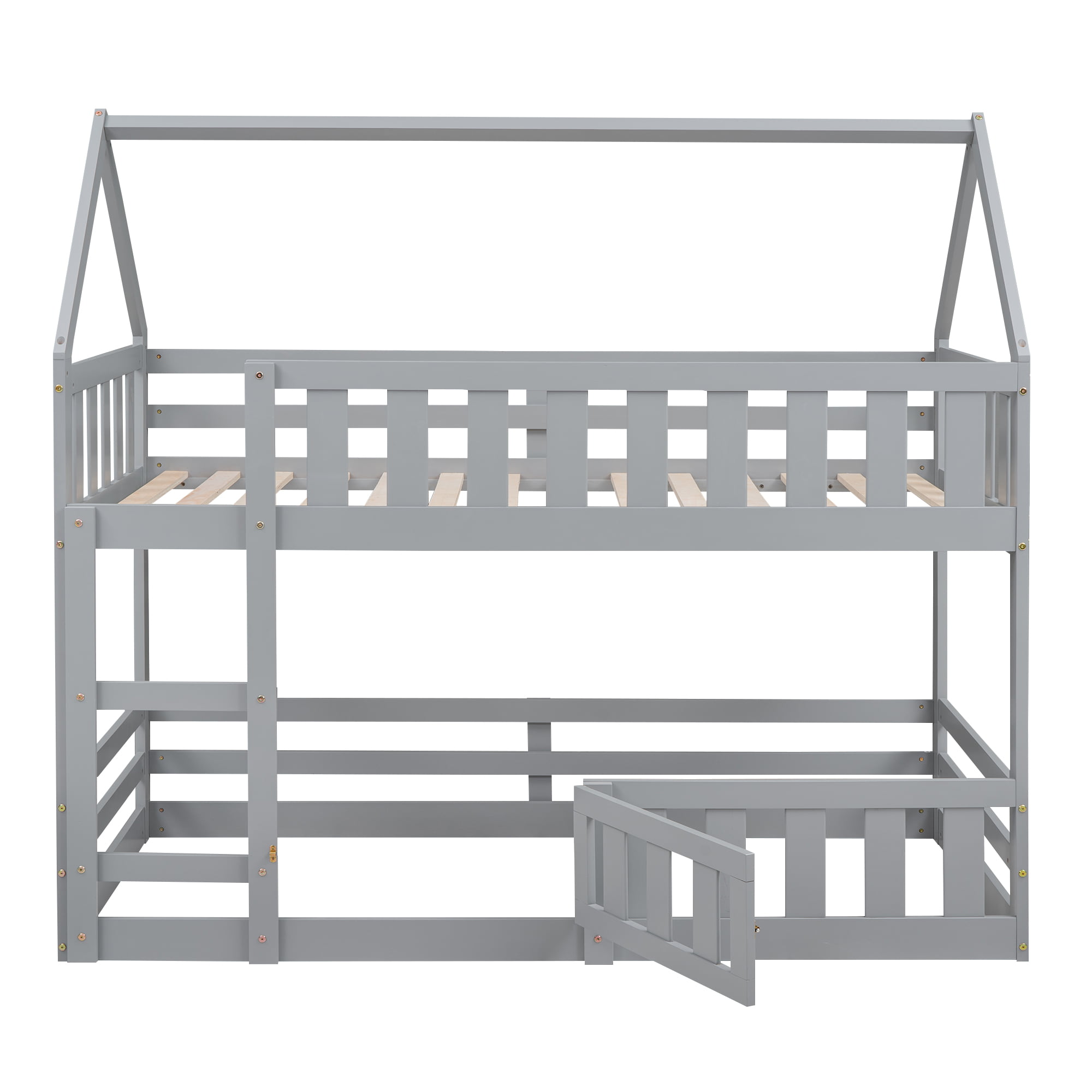 Twin over Twin House Bunk Bed with Fence and Door