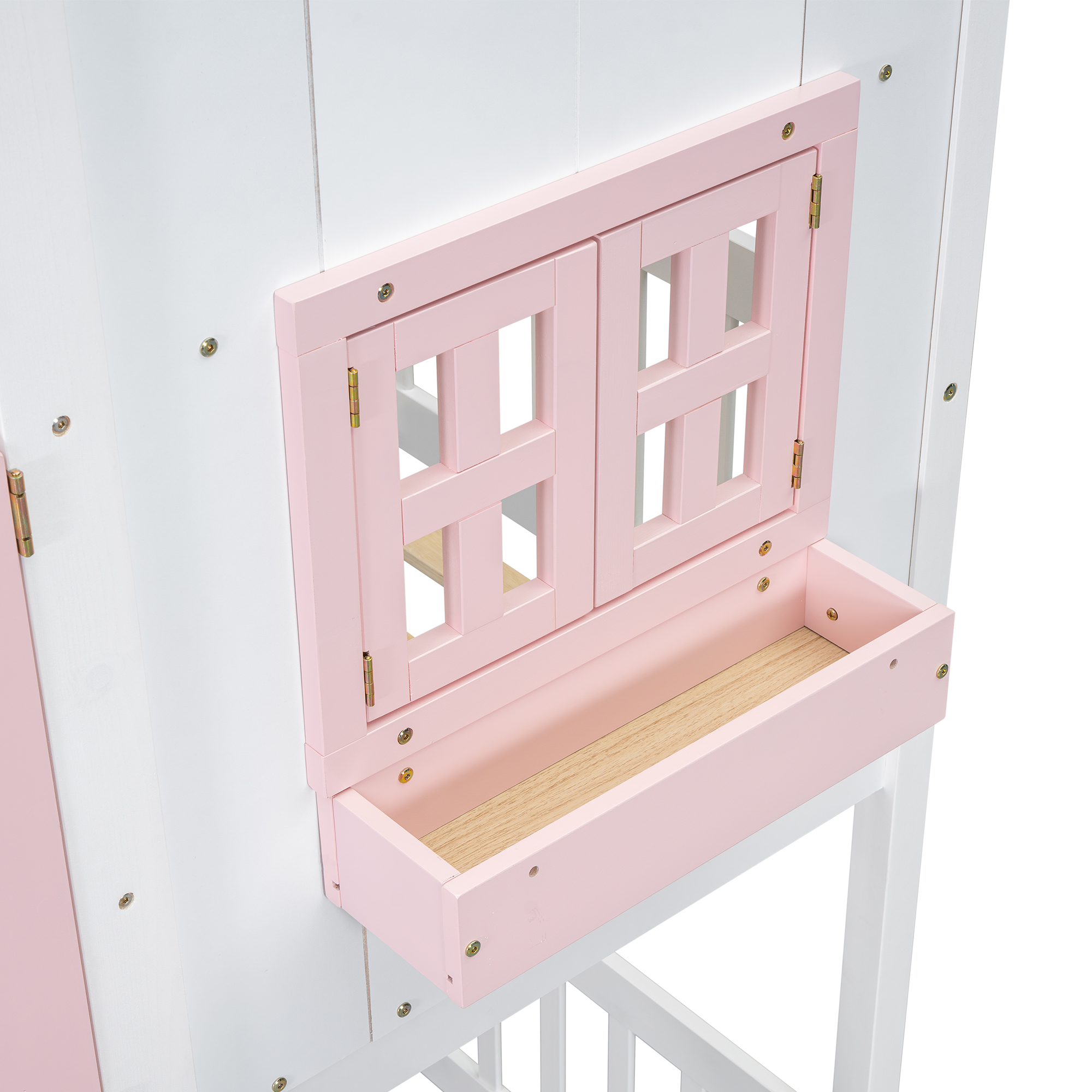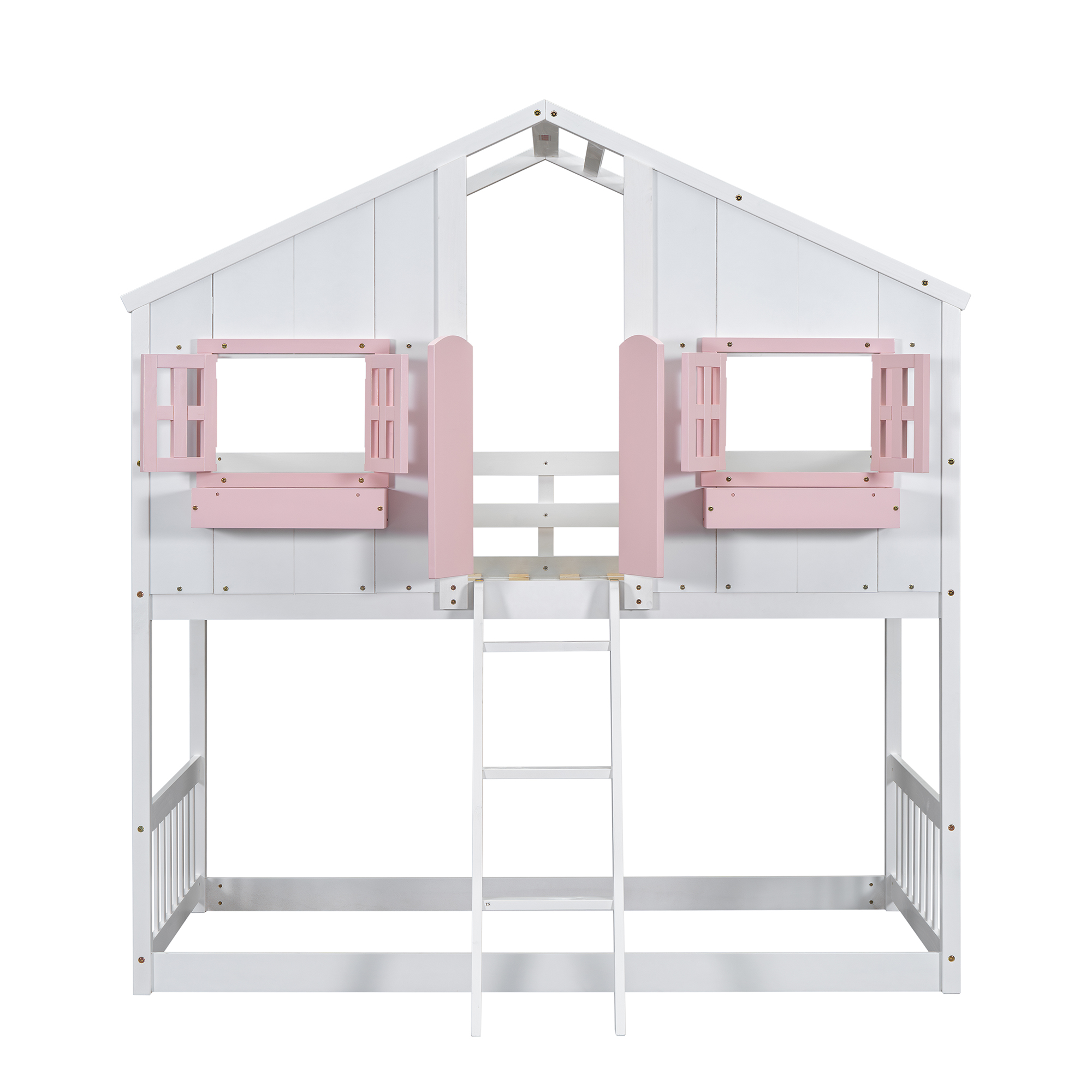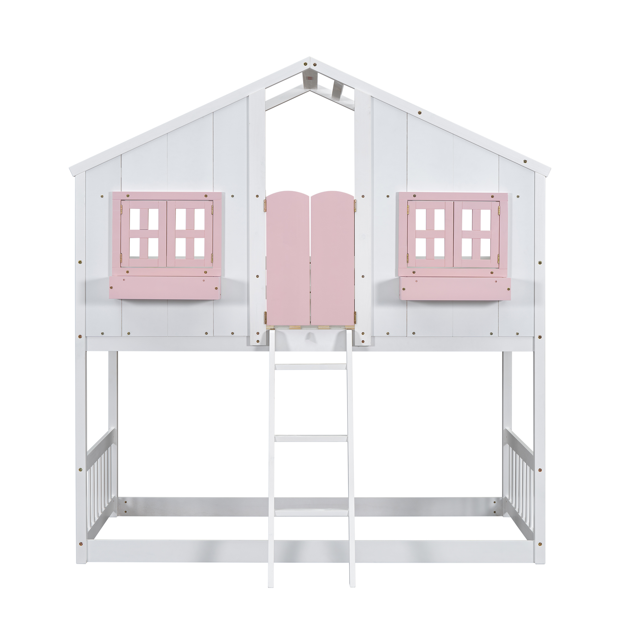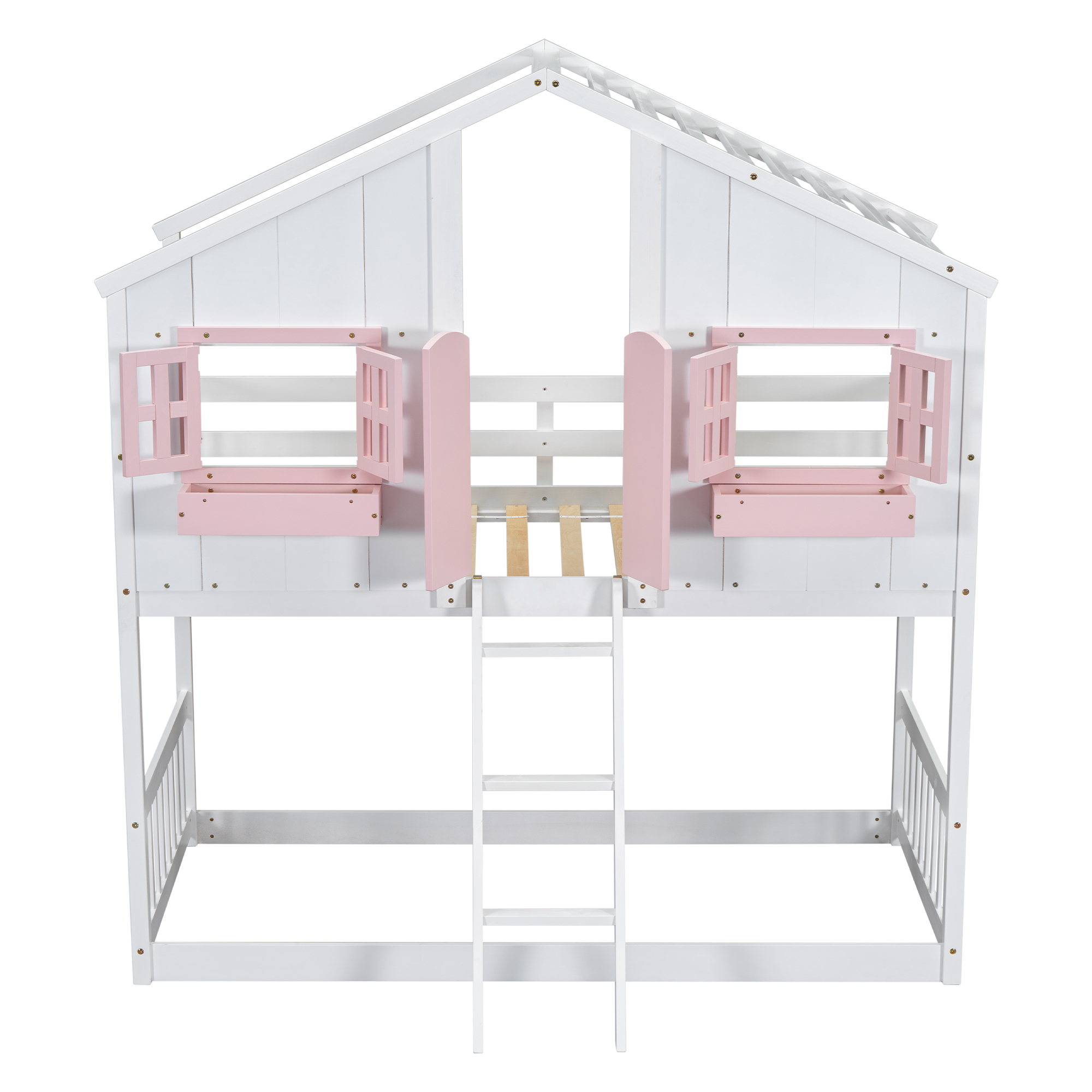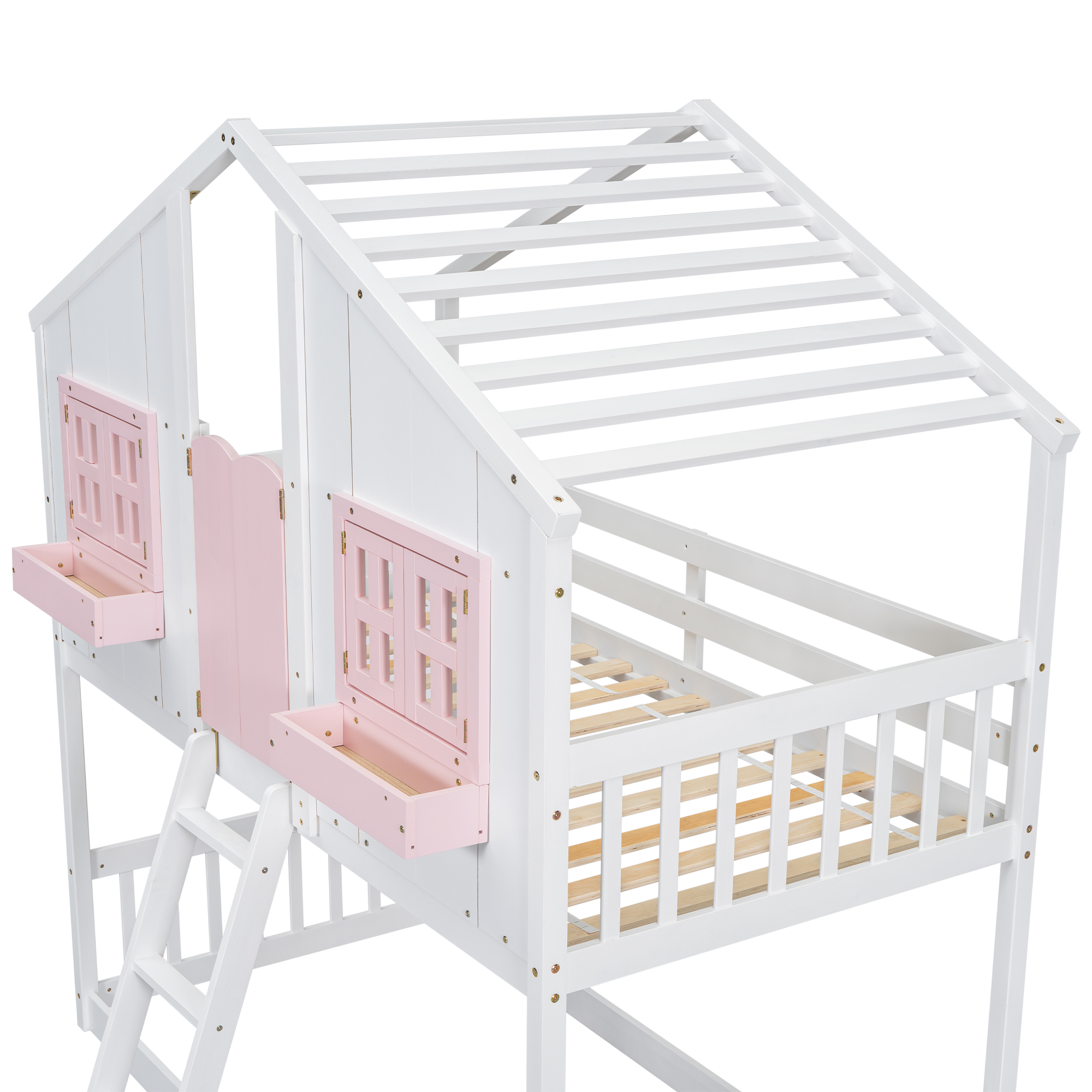- [Wood House Roof bunk Bed ] The unique design of wood house bunk bed with windows,door,ladder,provides kids with endless imagination and access to the natural woods, while they go to bed and fall asleep. This bed not only gives them a lot of fun, but also add to their imagination and creation. They can put various decorations and accessories on the window boxes to accompany their whole sleep and daily activities.
