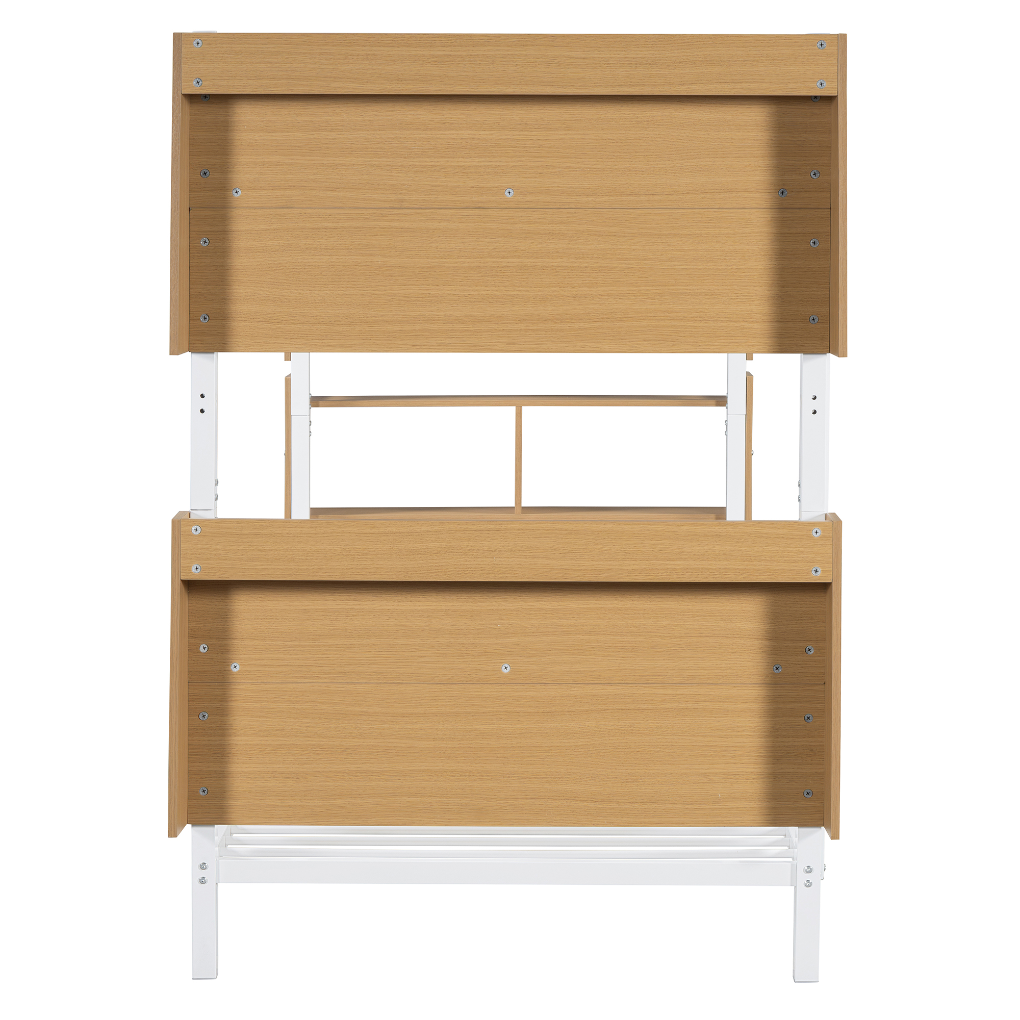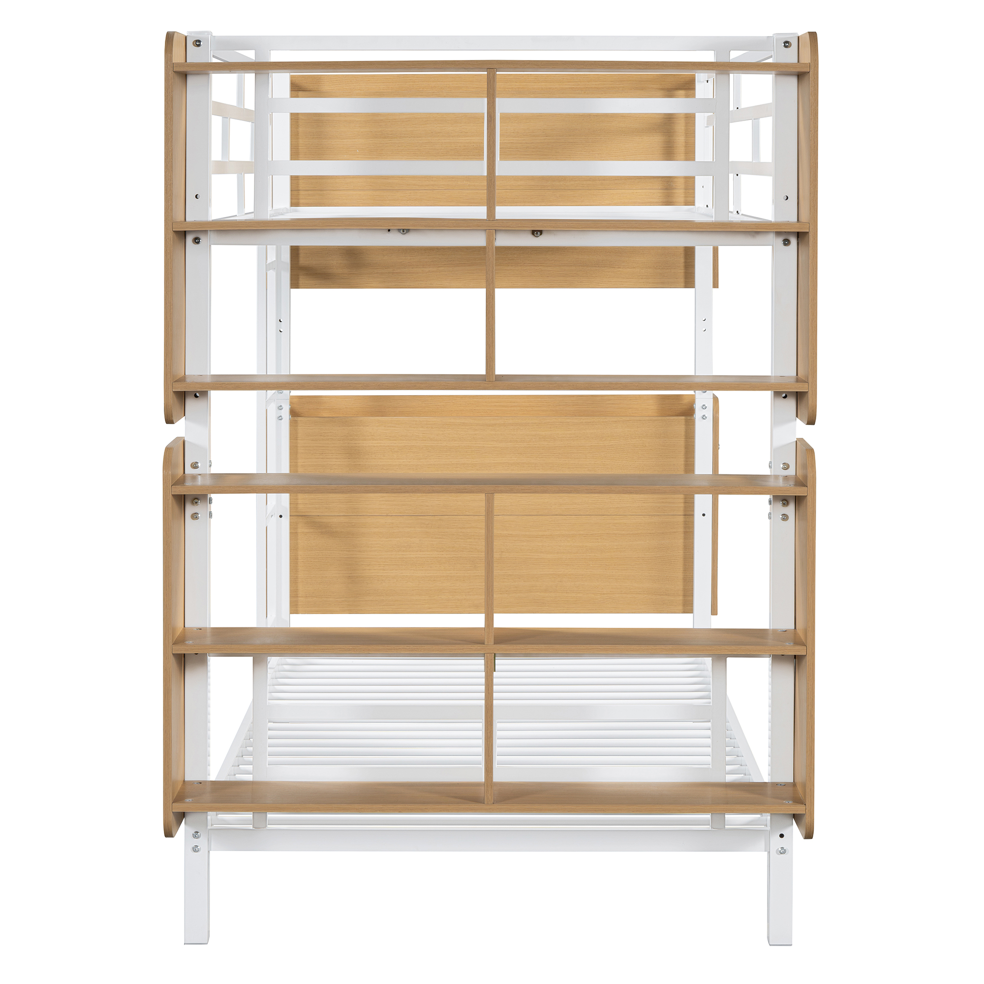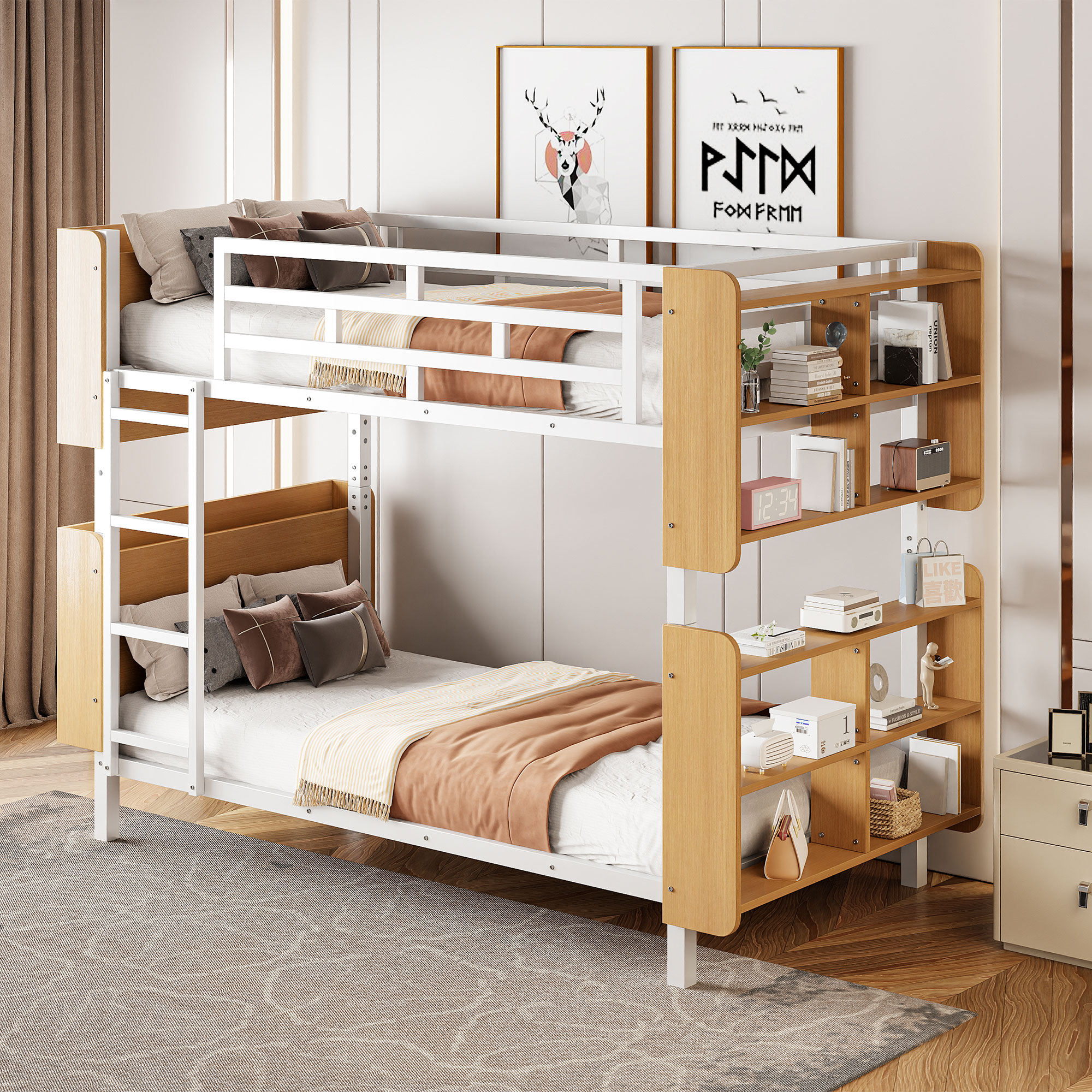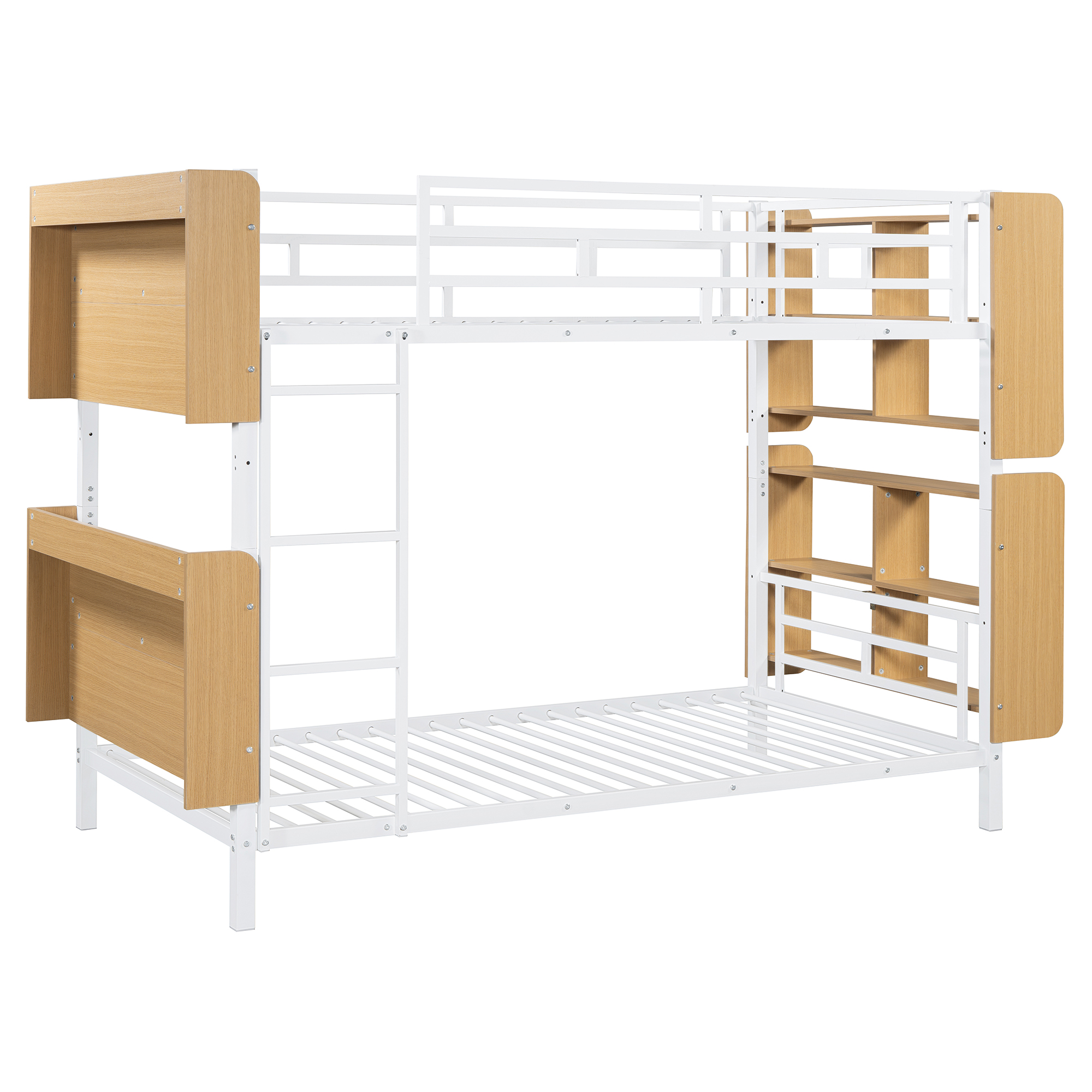 Twin Over Twin Size Metal Bunk Bed with Ladder and Full-Length Guardrail, Storage Space