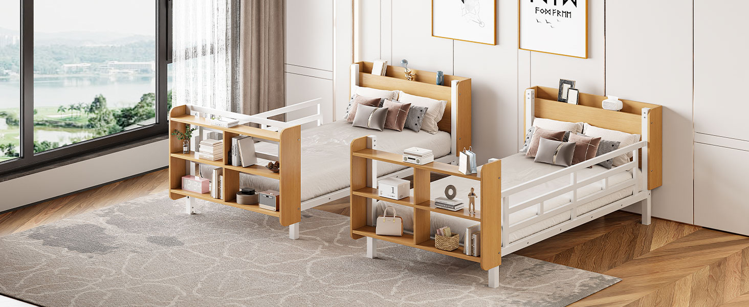 Introducing our versatile Metal Bunk Bed with Storage, designed to elevate both functionality and style in your living space. This innovative bunk bed features a unique headboard that offers convenient storage for your favorite decor, alarm clock, or personal items, while the footboard includes a four-grid shelving unit perfect for books, stationery, and everyday essentials. Whether for a teen’s room, a guest space, or a compact apartment, this bunk bed meets diverse needs seamlessly.