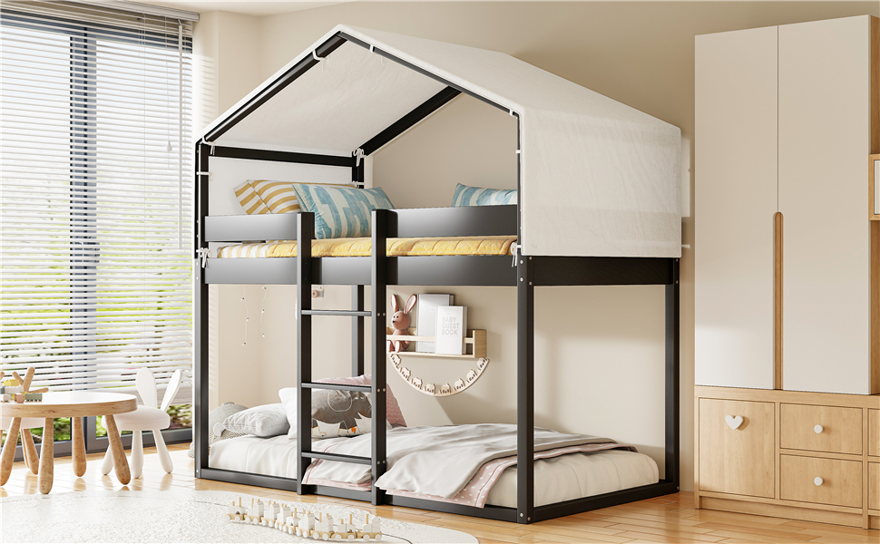 - [Sturdy construction & Unique design] Made of solid pine wood and high quality plywood, this bed provides great stability. The slats are compatible with good weight capacity. We add kids favorite house-shape elements to make the room more lively.