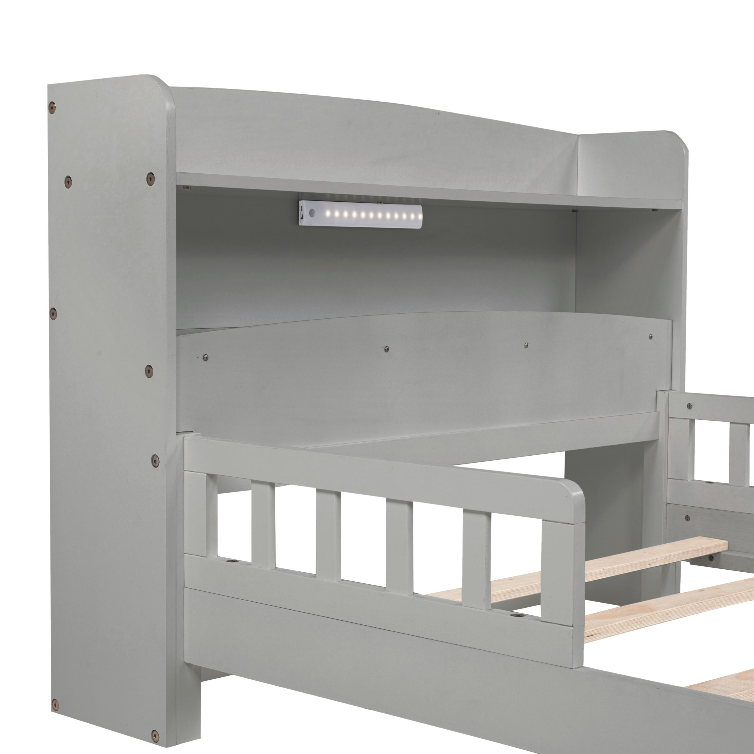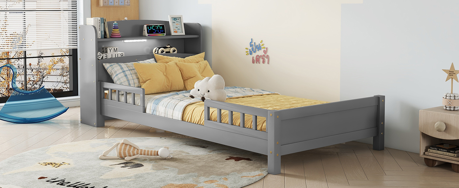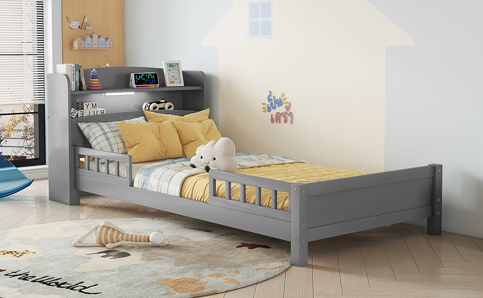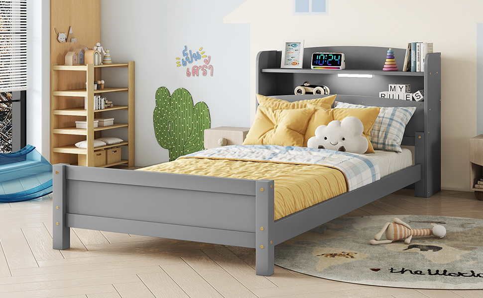 - [Easy Assembly] This twin bed with bookcase and LED motion sensor light is delivered in one package, along with the manual and complete set of hardware necessary to guide you through the process of assembly, and the bed will definitely be assembled conveniently.