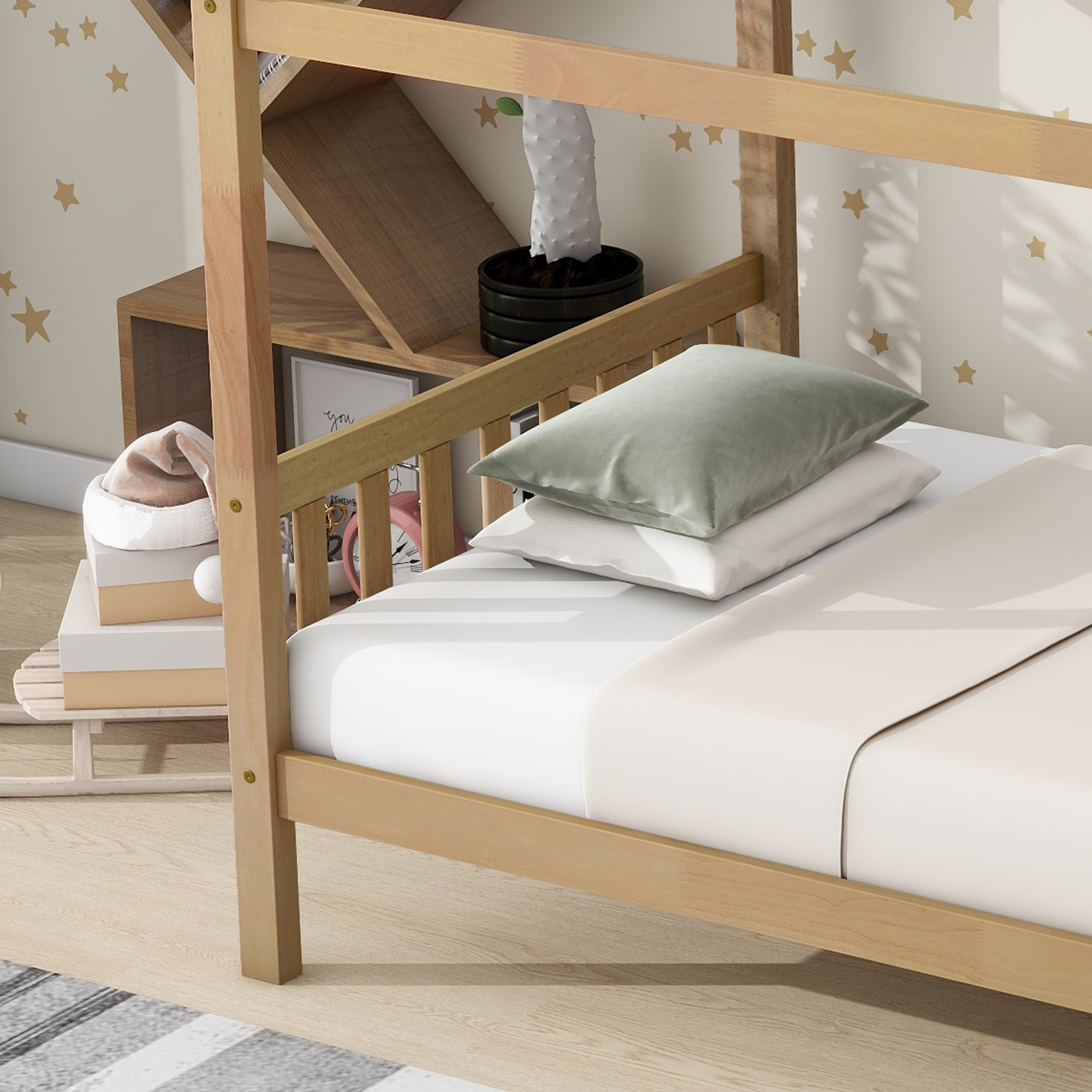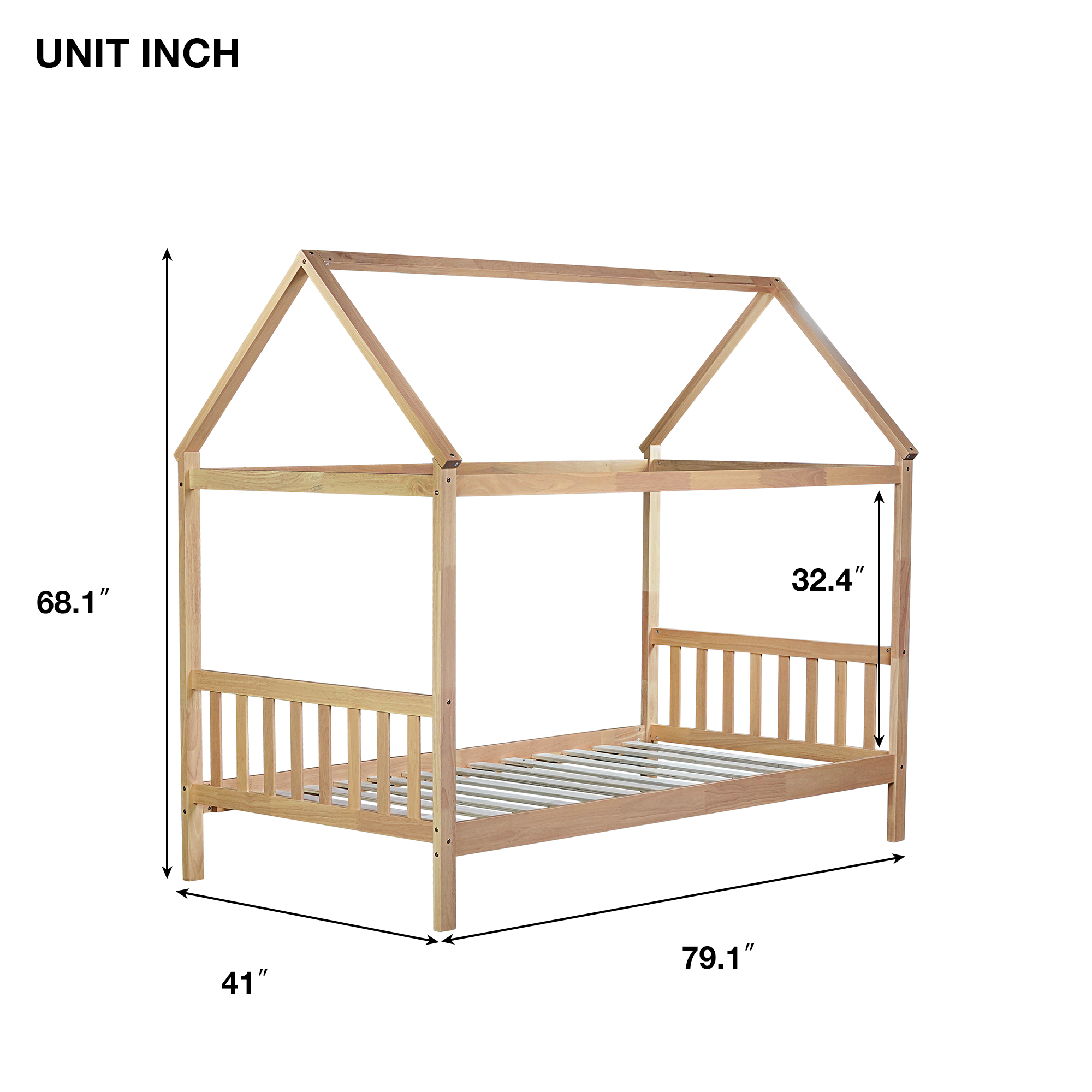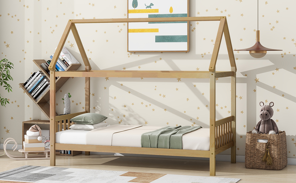 - [House-shaped Design] This intelligible design of house-shaped structure not only provides the extra privacy for the need of a sound sleep, but also inspires the imagination for closing to the nature. With this natural and decorative bed design of the house-shaped outline, the cosy living space can be easily transformed into a neat and fascinating bedroom.
