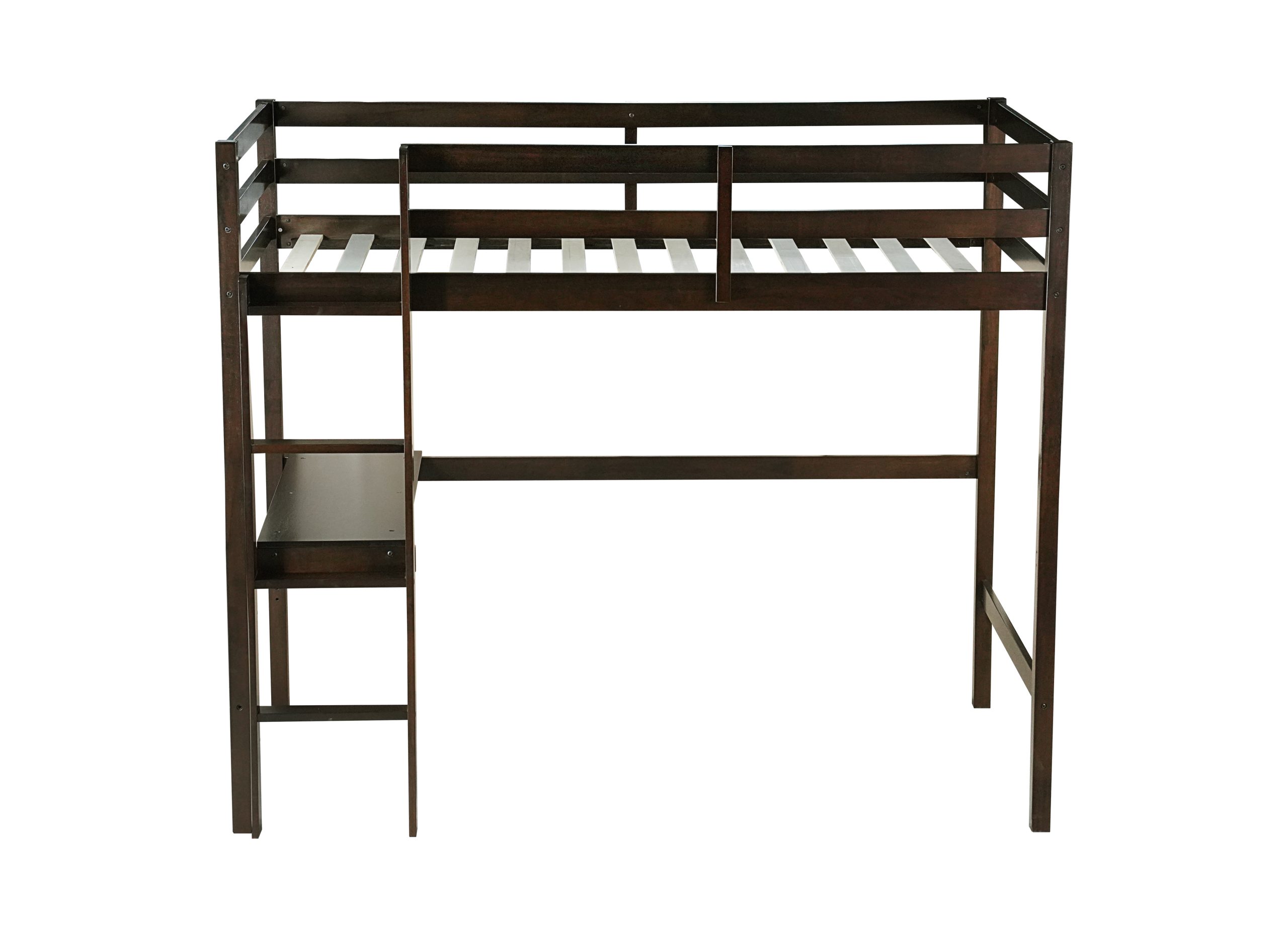 - [Safety and Quality Guaranteed] This loft bed is crafted mainly from premium rubber wood, providing lasting sturdiness and durability. The loft bed is constructed with firmly secured structure of 13 slats, forging strong stability that ensures the safety of users while resting in the loft bed. The high guard rails surrounding the bedframe will further protect sleepers.