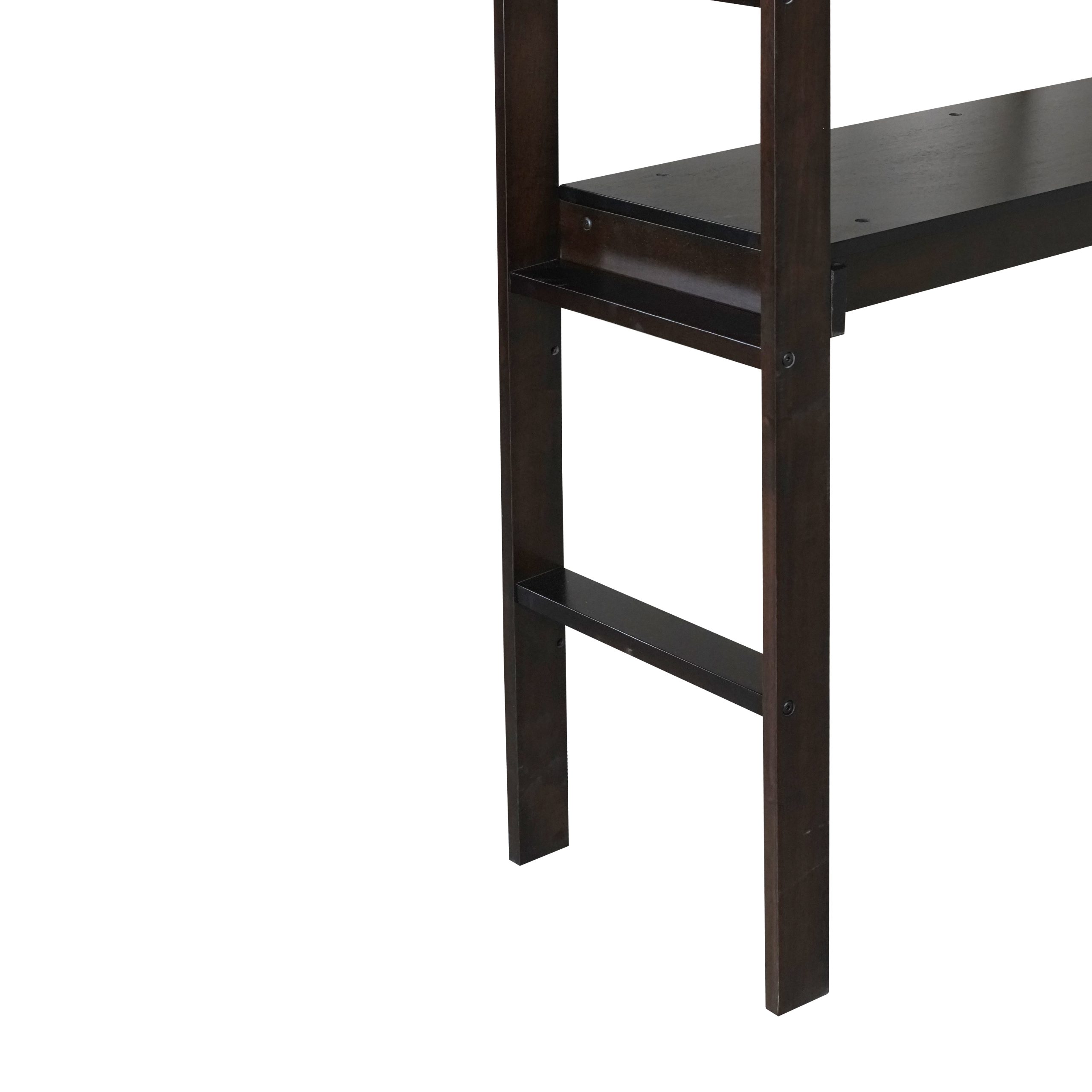 - [Comprehensive Design] The feature of this loft bed not only ensures better sturdy construction but also reduces safety concerns, the desk offering the kids a quiet, cozy place for reading and writing. In addition, the built-in ladder against the upper bunk is designed with a safe and wider width to provide more spacious steps and solid support, making it easier to climb up and down the ladder.