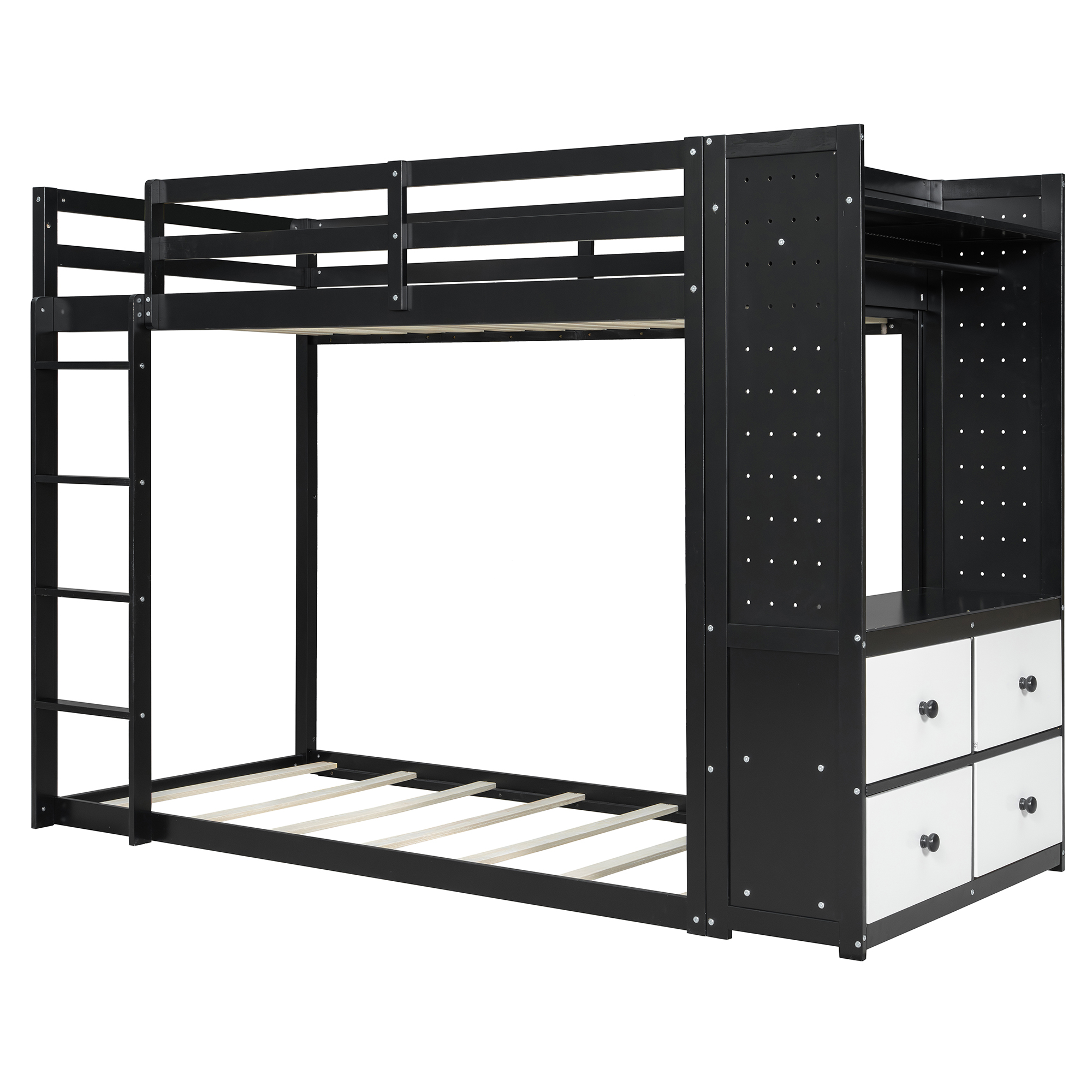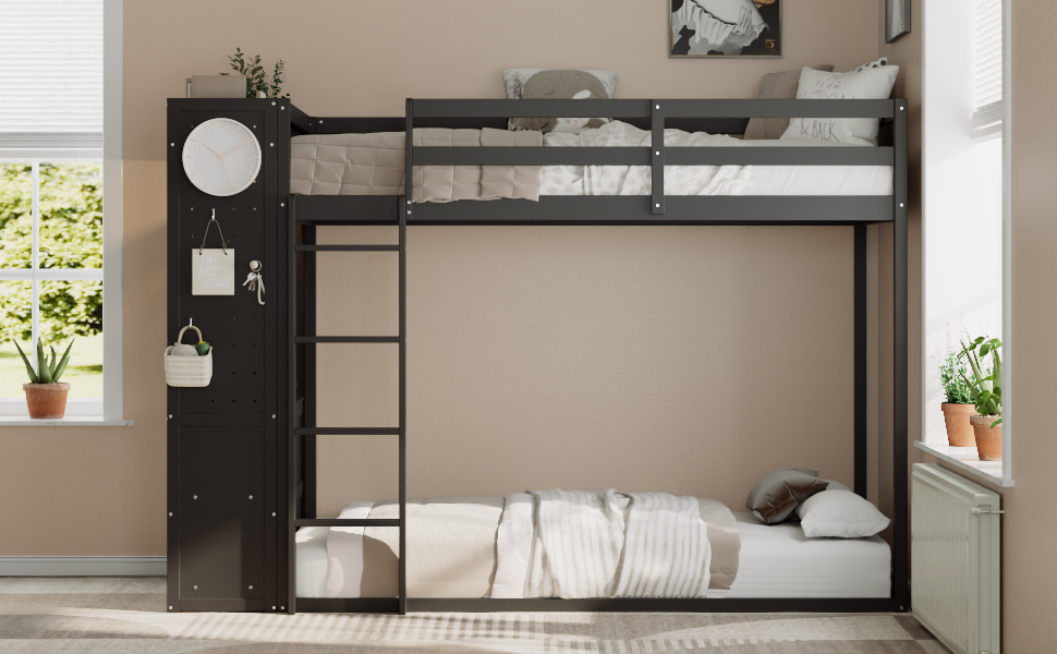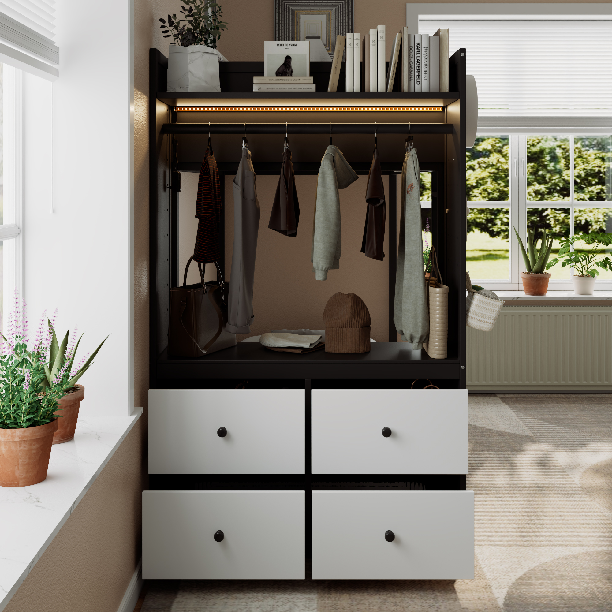 - [Dual-Sided Customizable Pegboards] Both side panels of the wardrobe section feature a functional pegboard design, offering a creative and practical way to store small essentials. From hanging headphones and bags to organizing keys or decorative charms, these pegboards provide a customizable surface that adapts to your specific organizational needs, keeping your most-used items within arm’s reach.