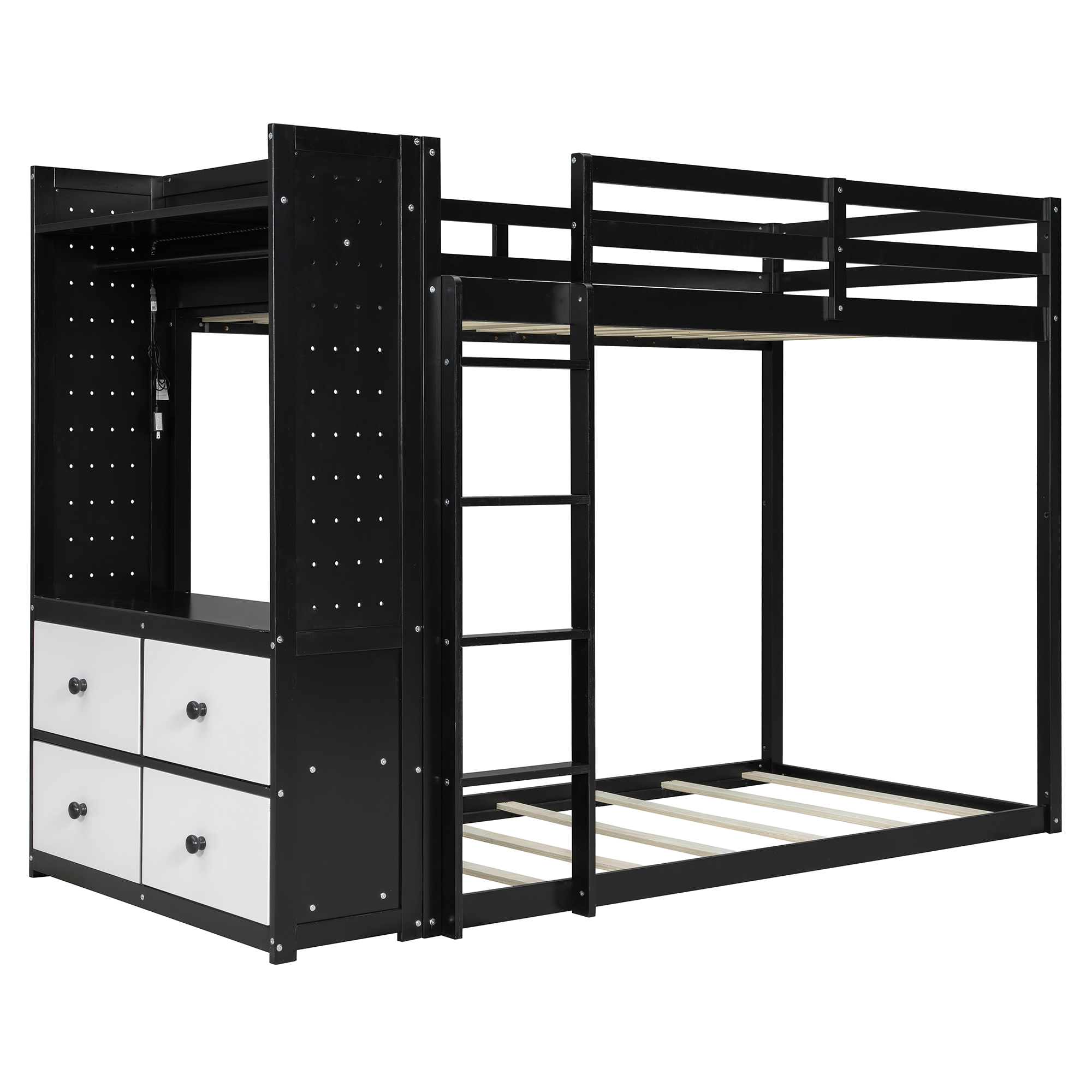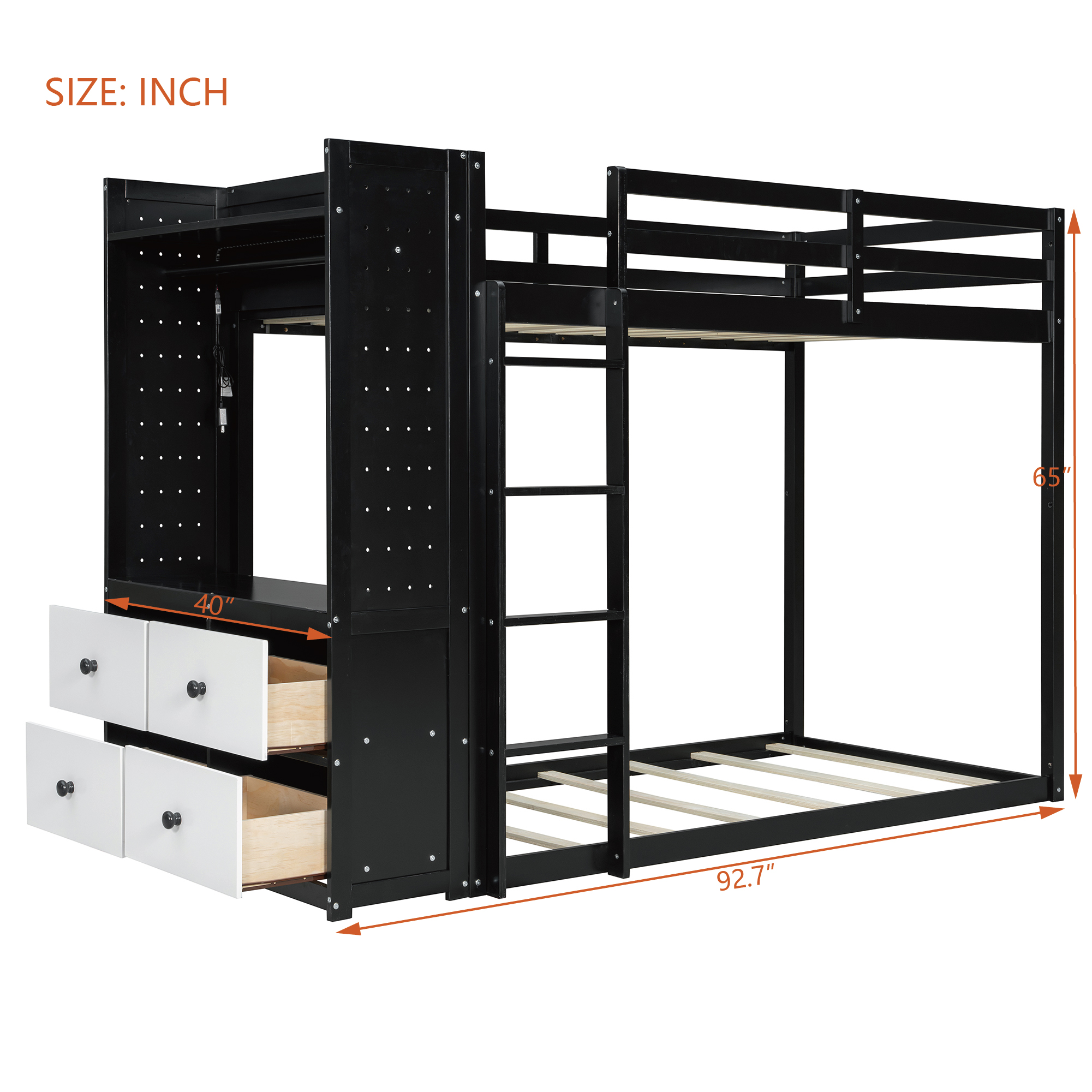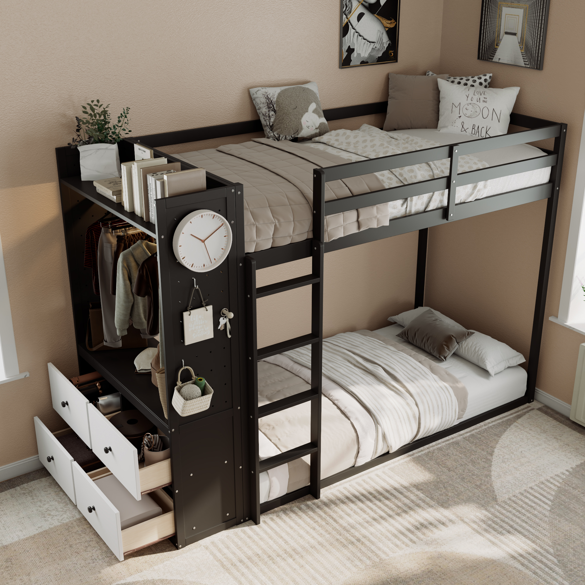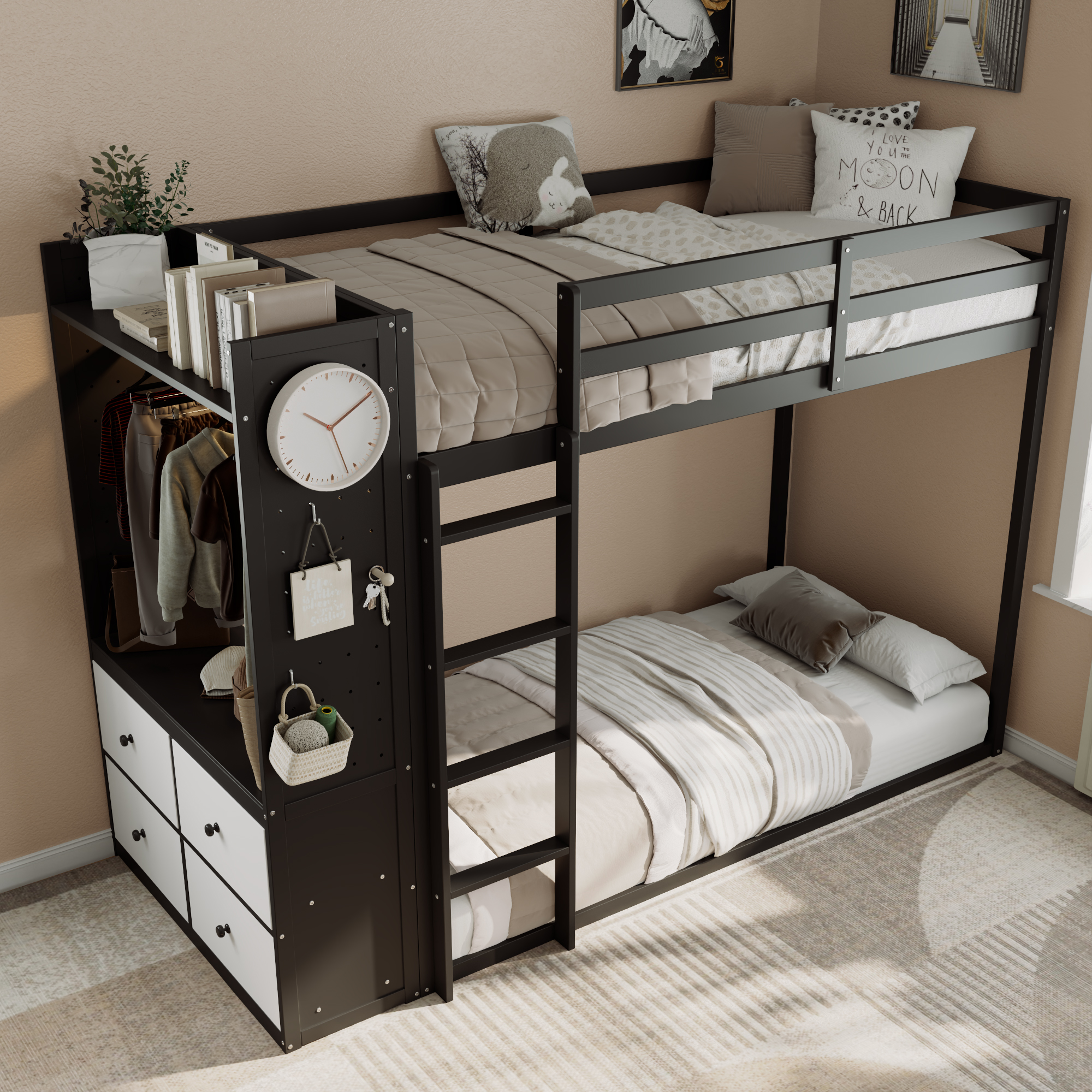 - [Integrated Wardrobe & Smart Illumination] This bunk bed features a unique built-in hanging area equipped with a durable rod, allowing you to organize your daily outfits directly within the bed frame. To enhance visibility and set a modern mood, the wardrobe section is topped with a vibrant light strip and an additional storage shelf for hats or accessories, making it a complete dressing station that saves you the cost and space of a separate closet.