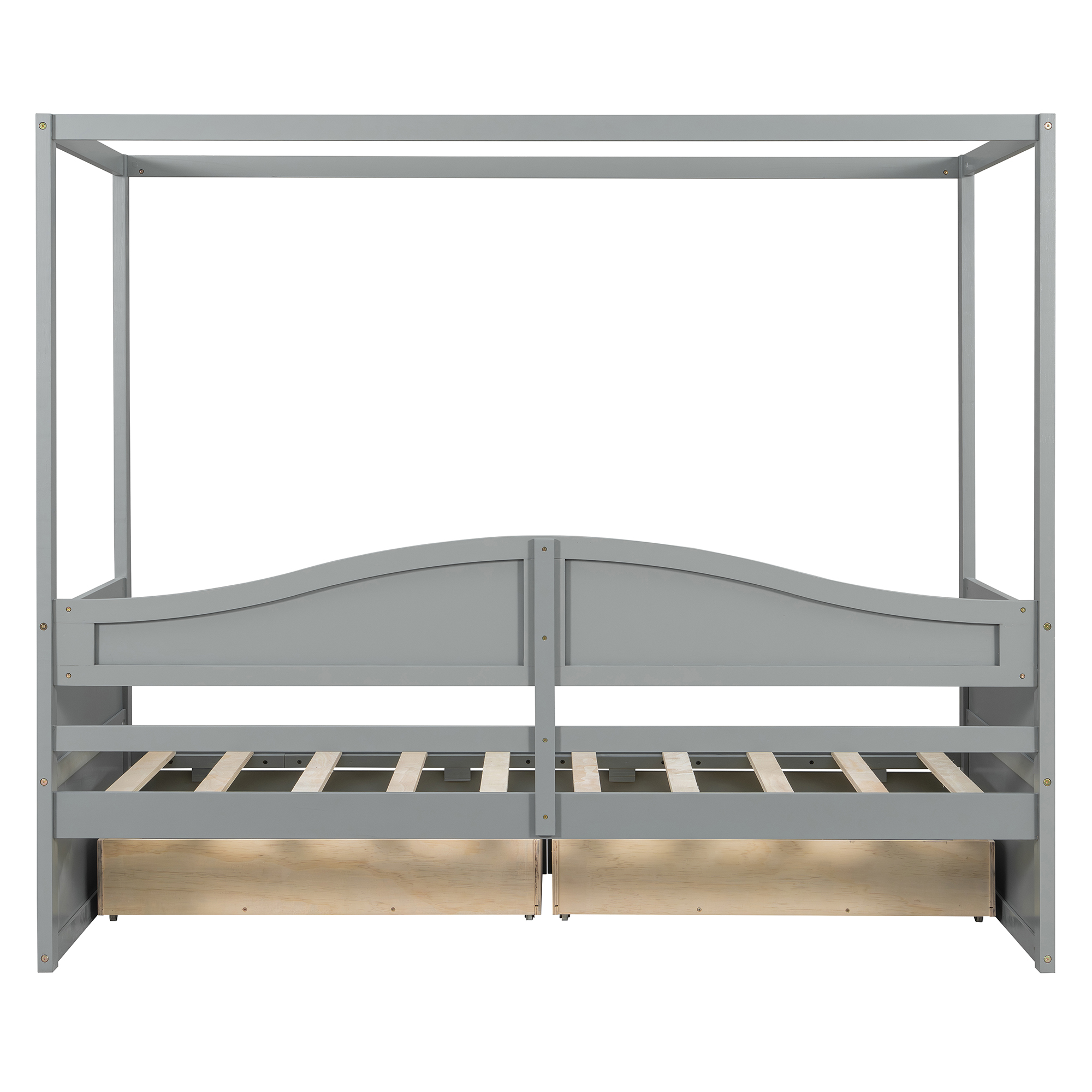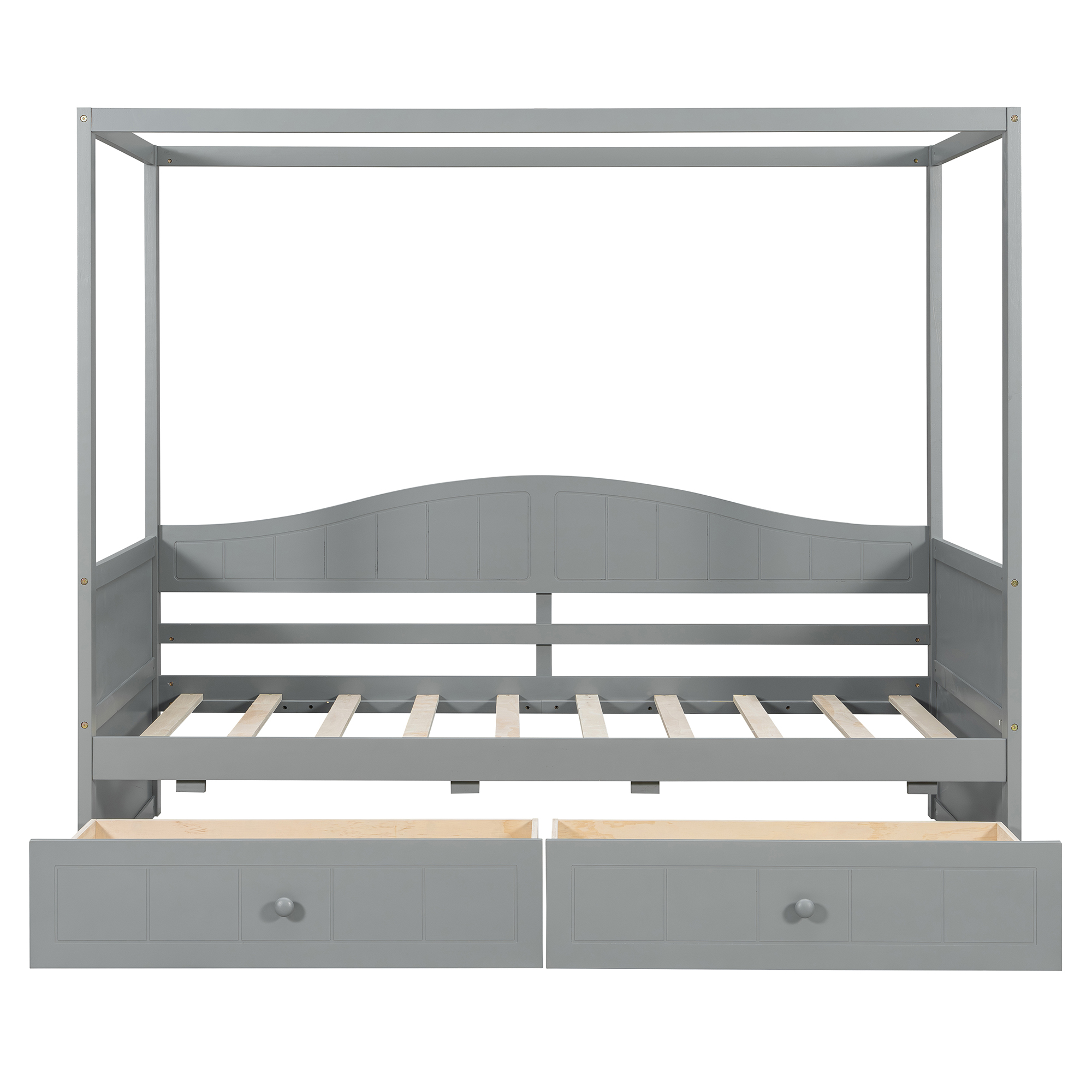 - [Modern Design] Wooden canopy bed with beautiful finish has a sleek exterior profile, built-in backrest, with clean lines for a timeless look.