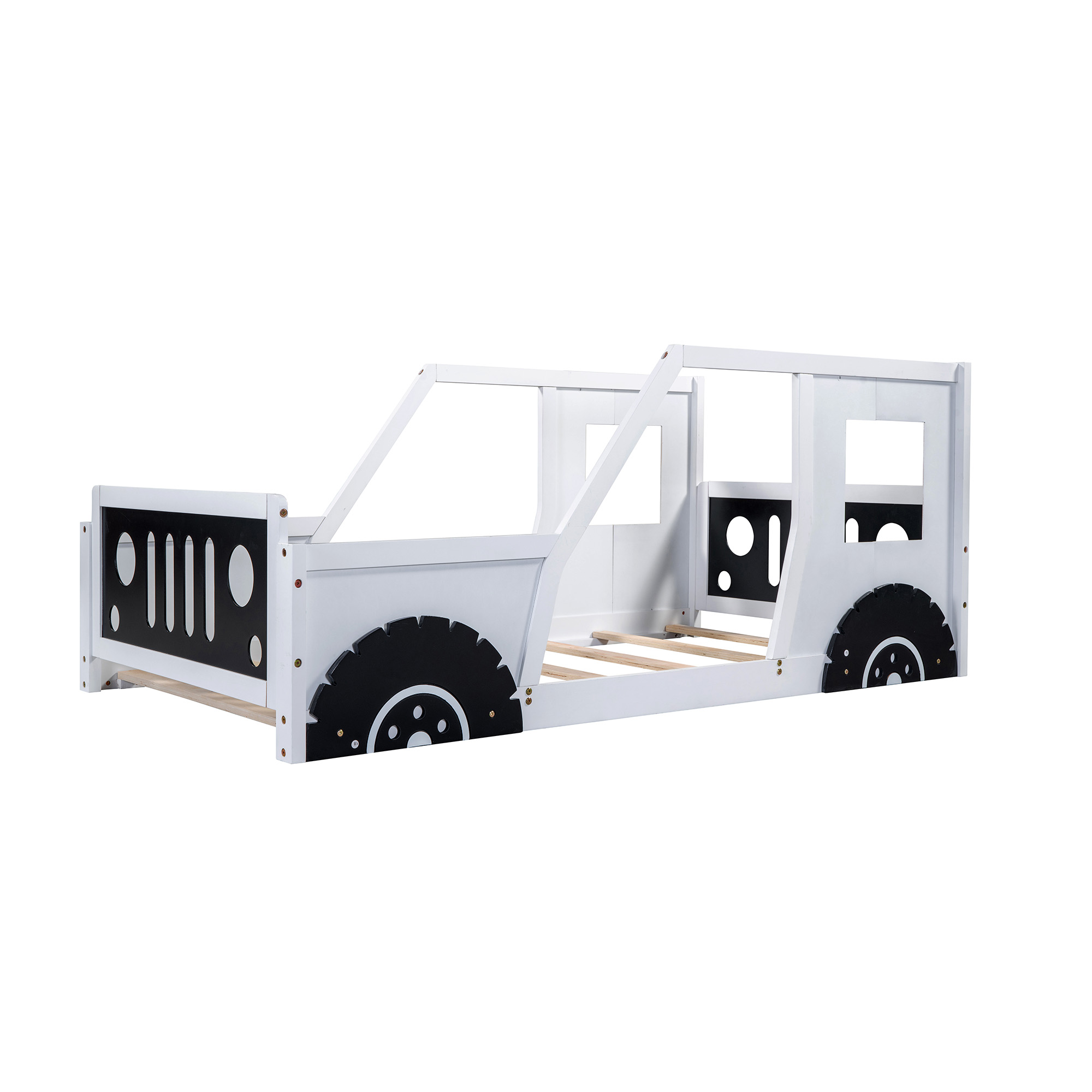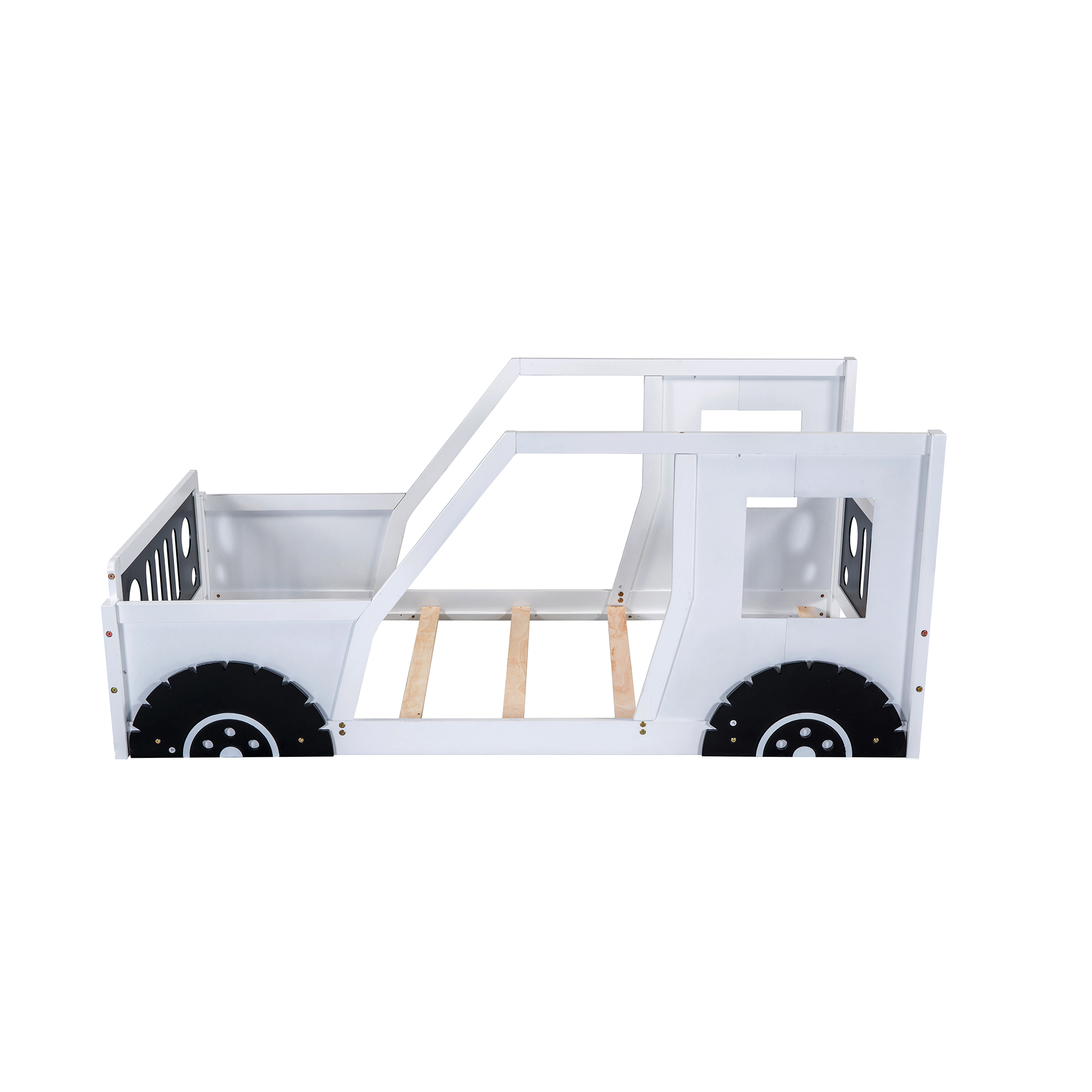 - [Wheels Shape] The fun and playful classic car design is completed by decorative wheels. This piece is mattress ready with slatted rail supports.