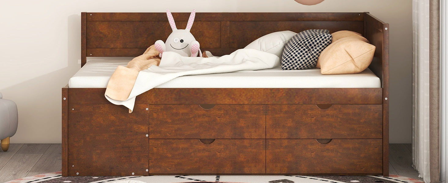 - [Maximized space] The daybed with handy pull-out drawers and three functioning shelves takes up minimal space, perfect for organizing anything from clothes and bed linens to toys and games. Such a versatile piece, bringing functionality, versatility, and style to your home, perfect for those who have limited space.