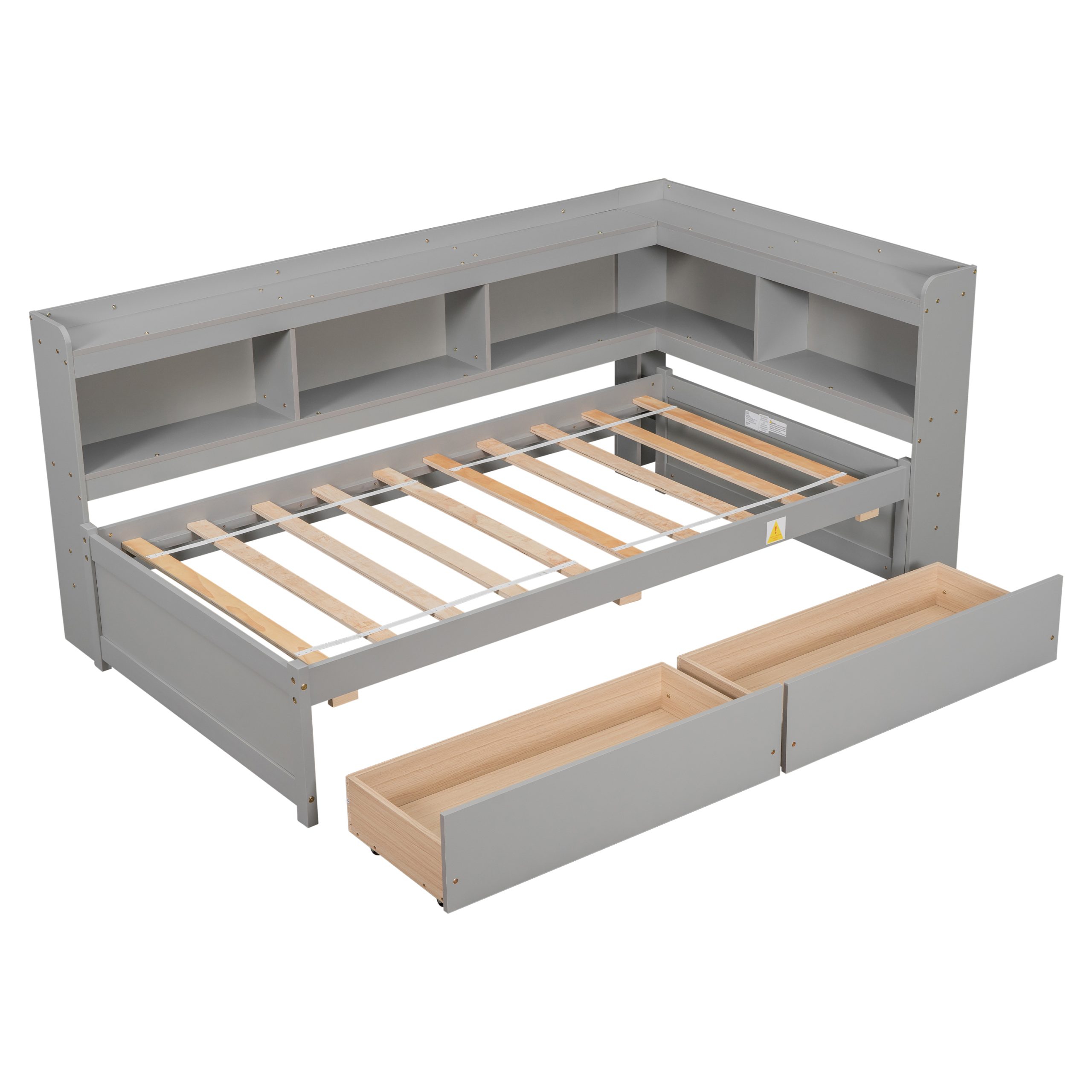 Twin Size Daybed with L-Shaped Bookcases, and Drawers