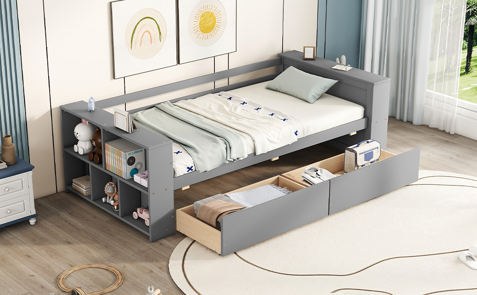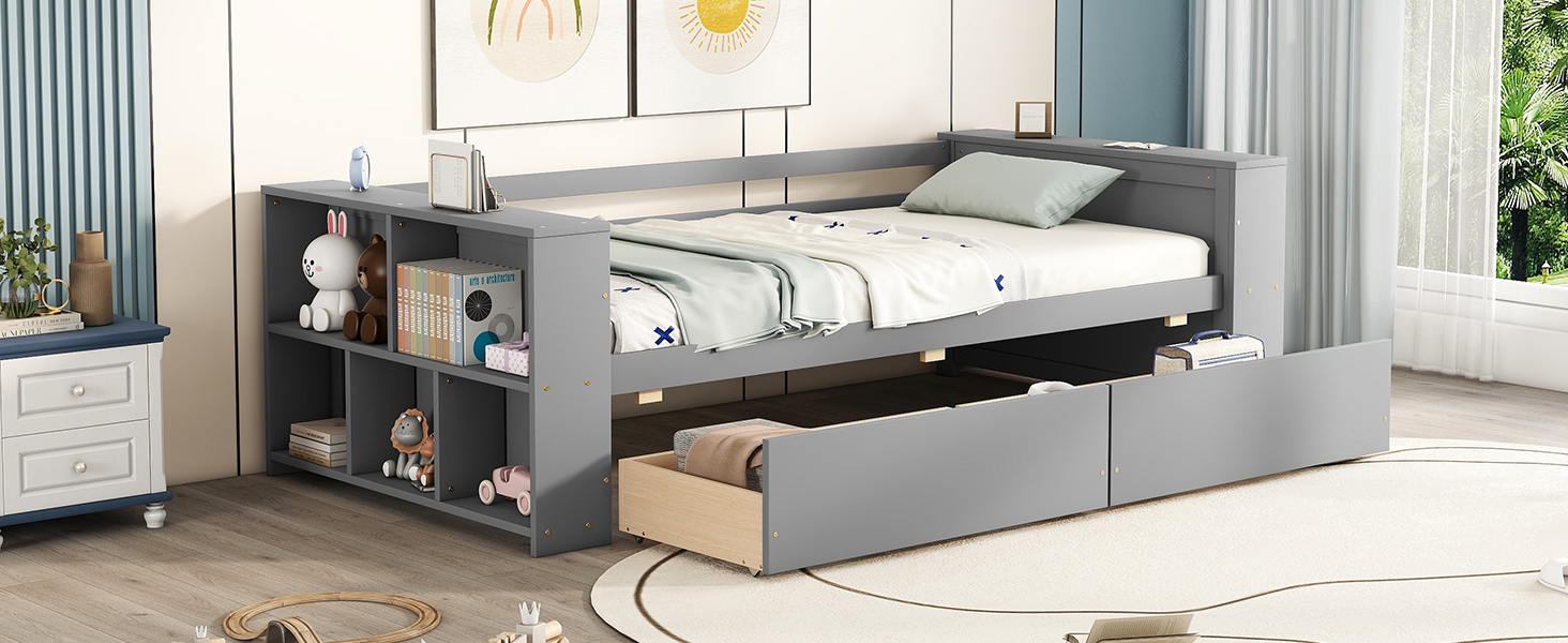 Twin Size Daybed With Shelves And Drawers
