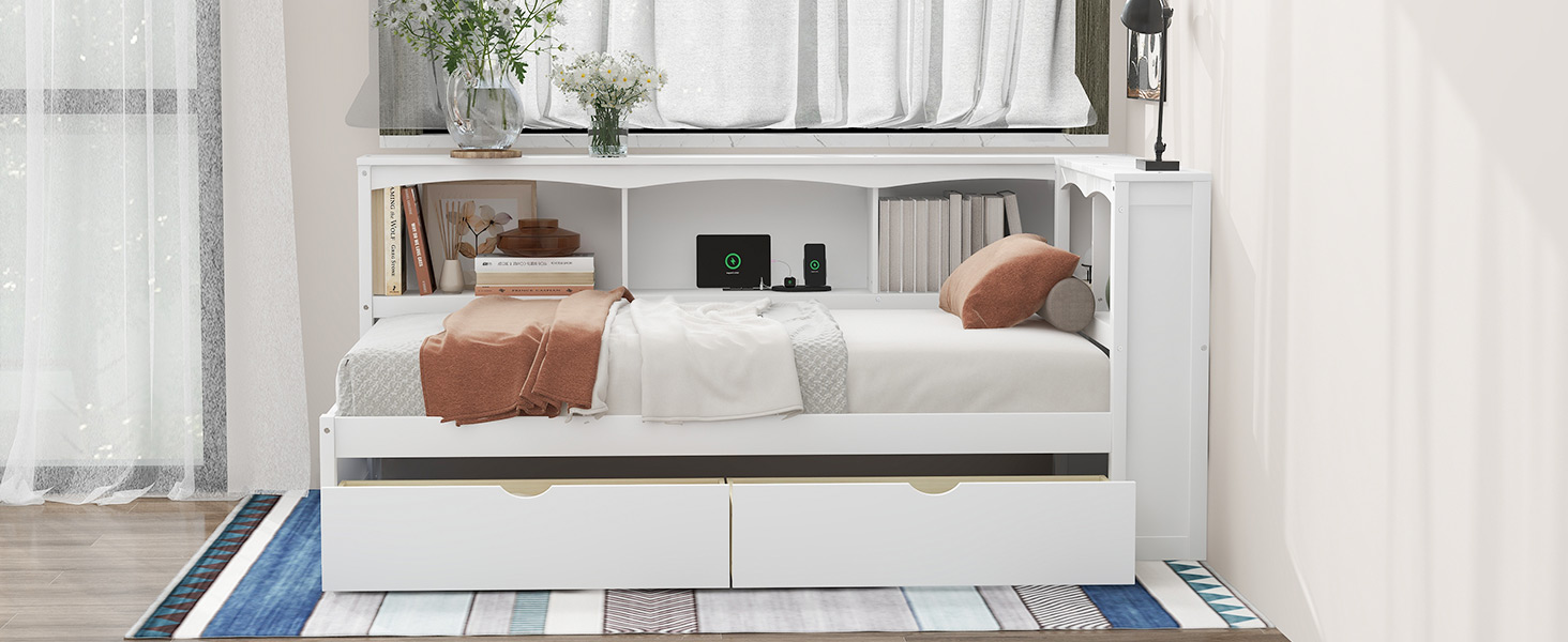 - [Storage Space] There are 5 built-in storage cabinets on the side of the daybed, which provide you with plenty of storage space. Whether it’s books or dolls, they can all find their place.