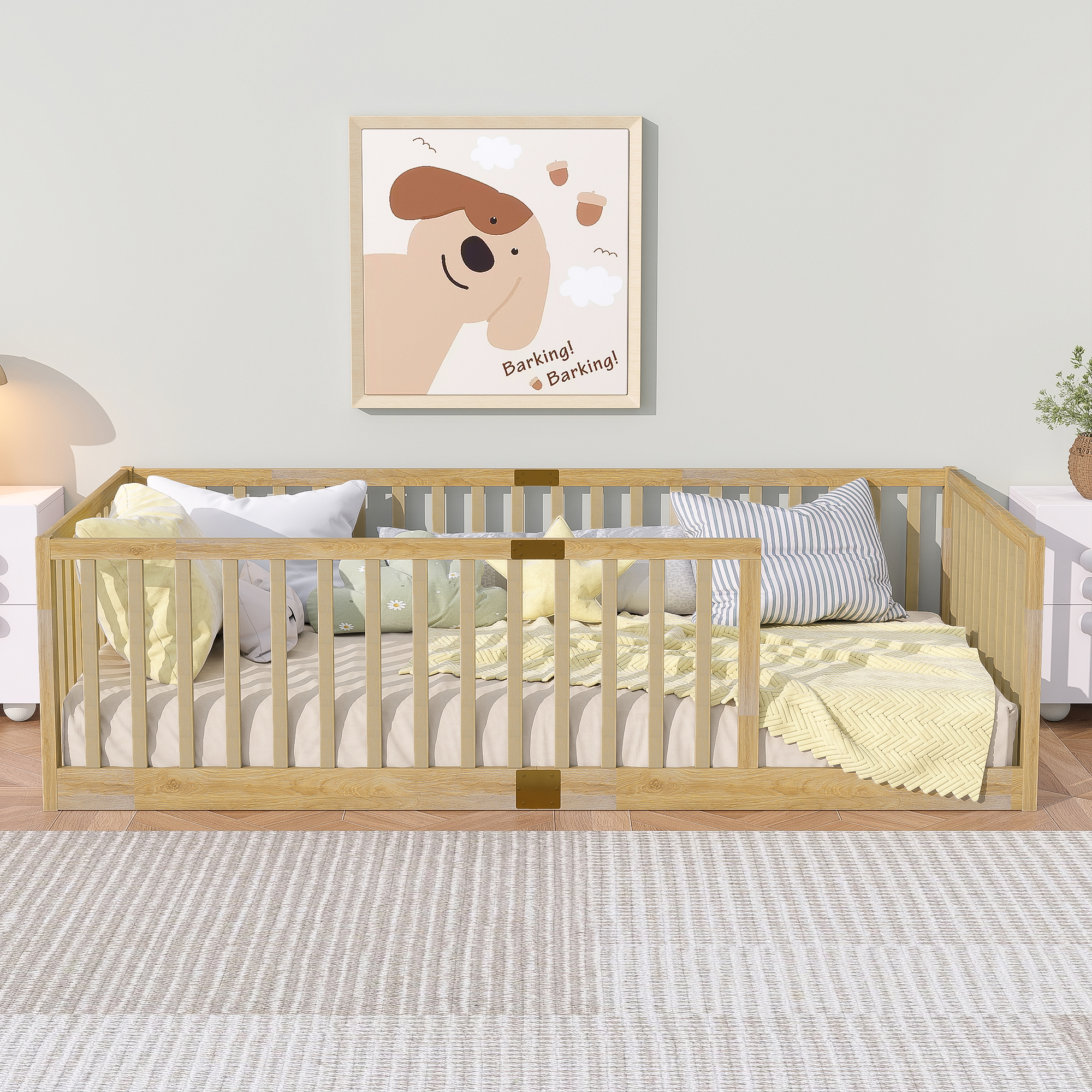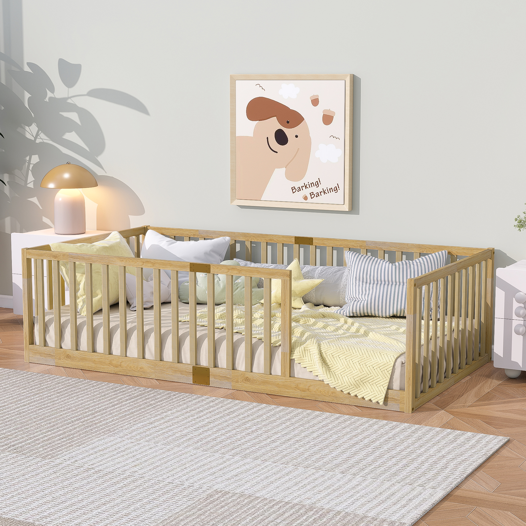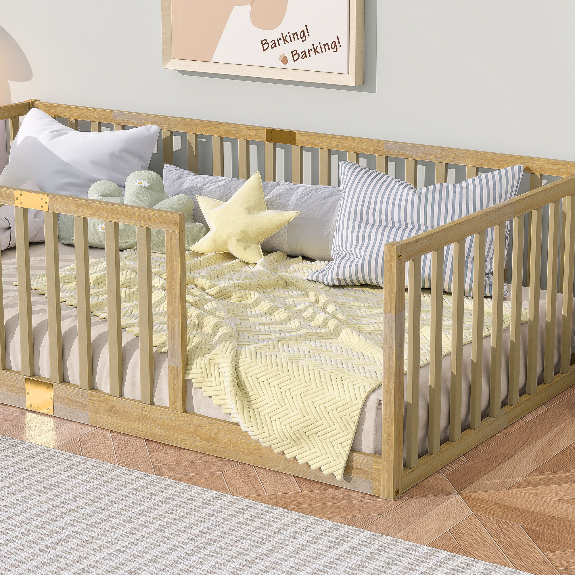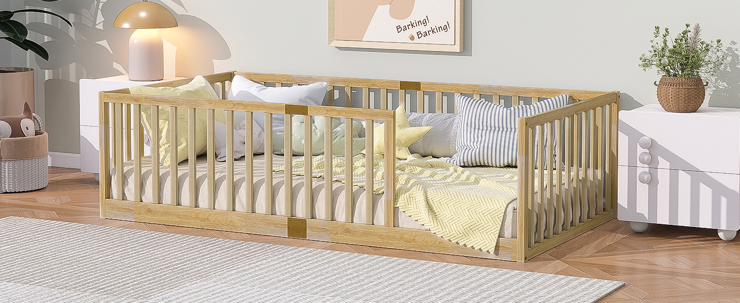 - [Perfect for Transition Period] The floor bed facilitates the transition from co-sleeping to an independent sleeping environment, thereby fostering children’s autonomy. The fence-enclosed design promotes exploration and freedom within their personal space.
