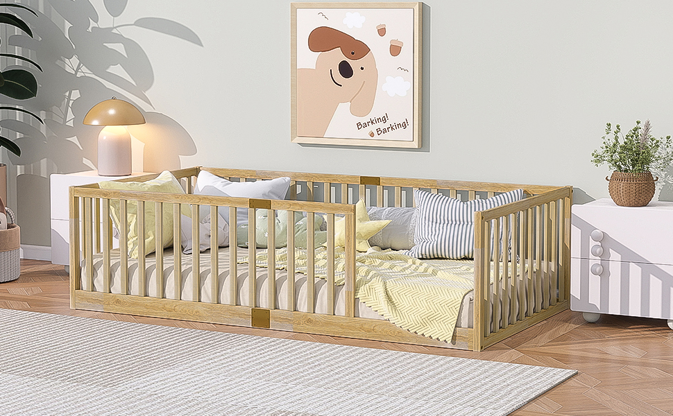 - [Multi-functional Design] The floor bed with high fence is designed to help the parents to look after their children and give a playground to learn walking and climbing, also it’s an ideal place for kids to sleep on it. the bed is particularly well-suited for for those compact rooms and limited spaces.Children may experience a sense of wonderland immersion through the thoughtfully designed decorative elements.
