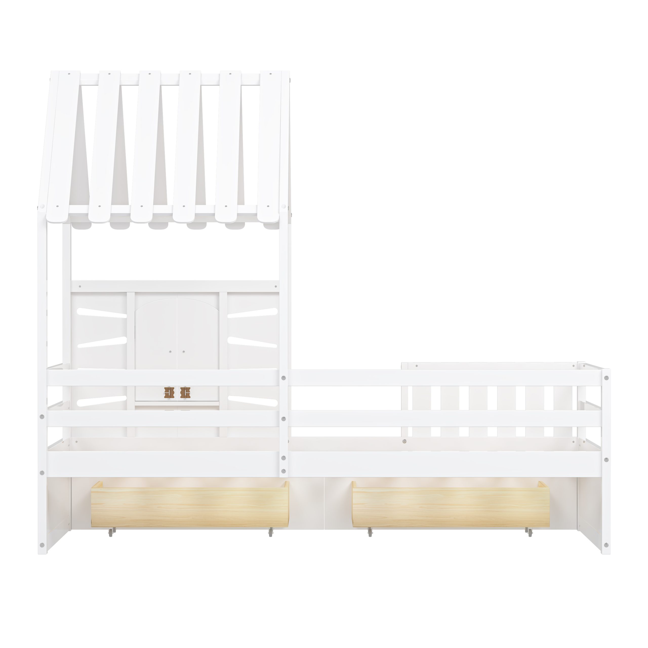 Twin Size House Bed With 2 Storage Drawers and Guardrails