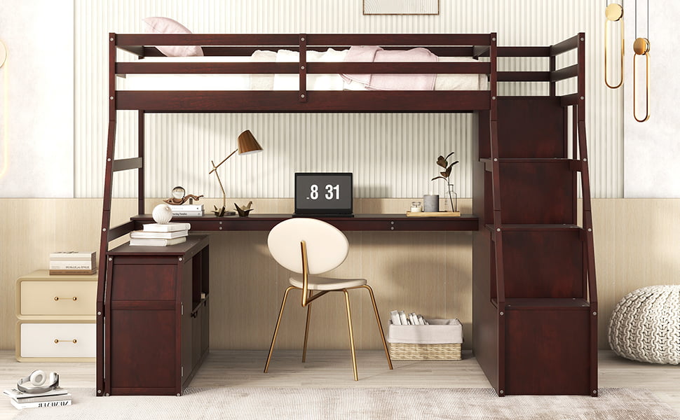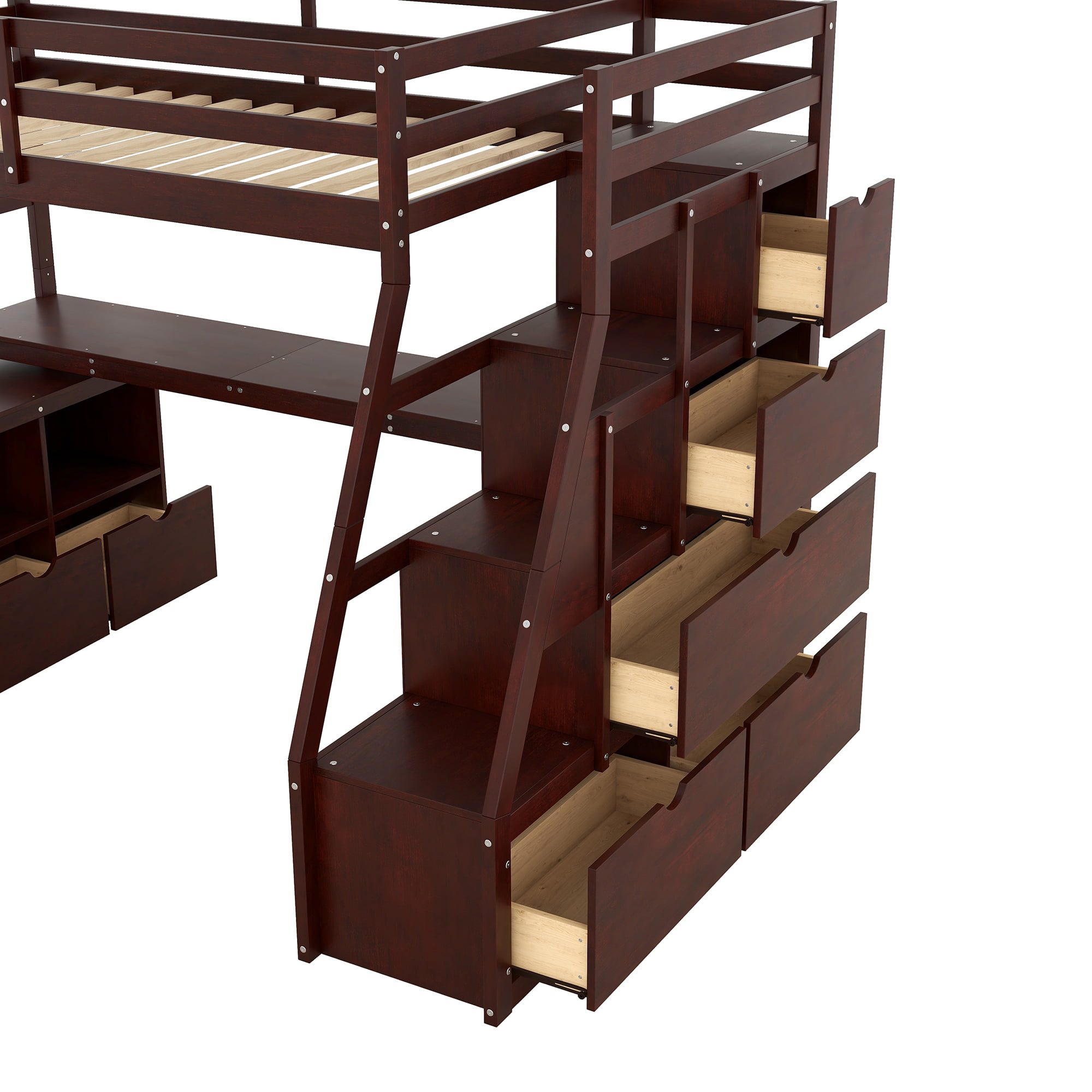 Twin Size Loft Bed With 7 Drawers, 2 Shelves And Desk