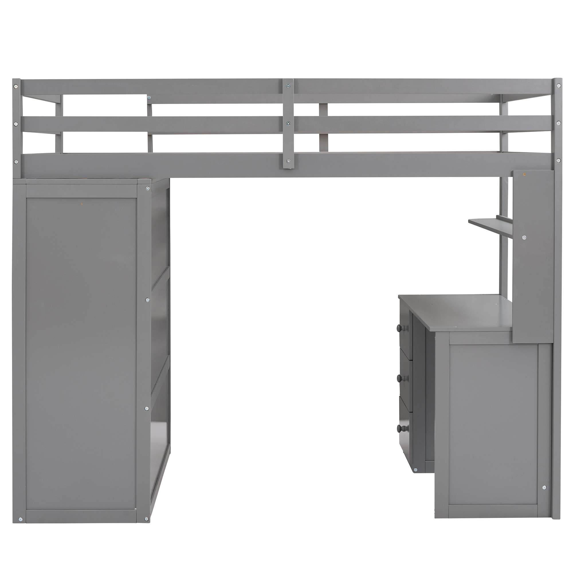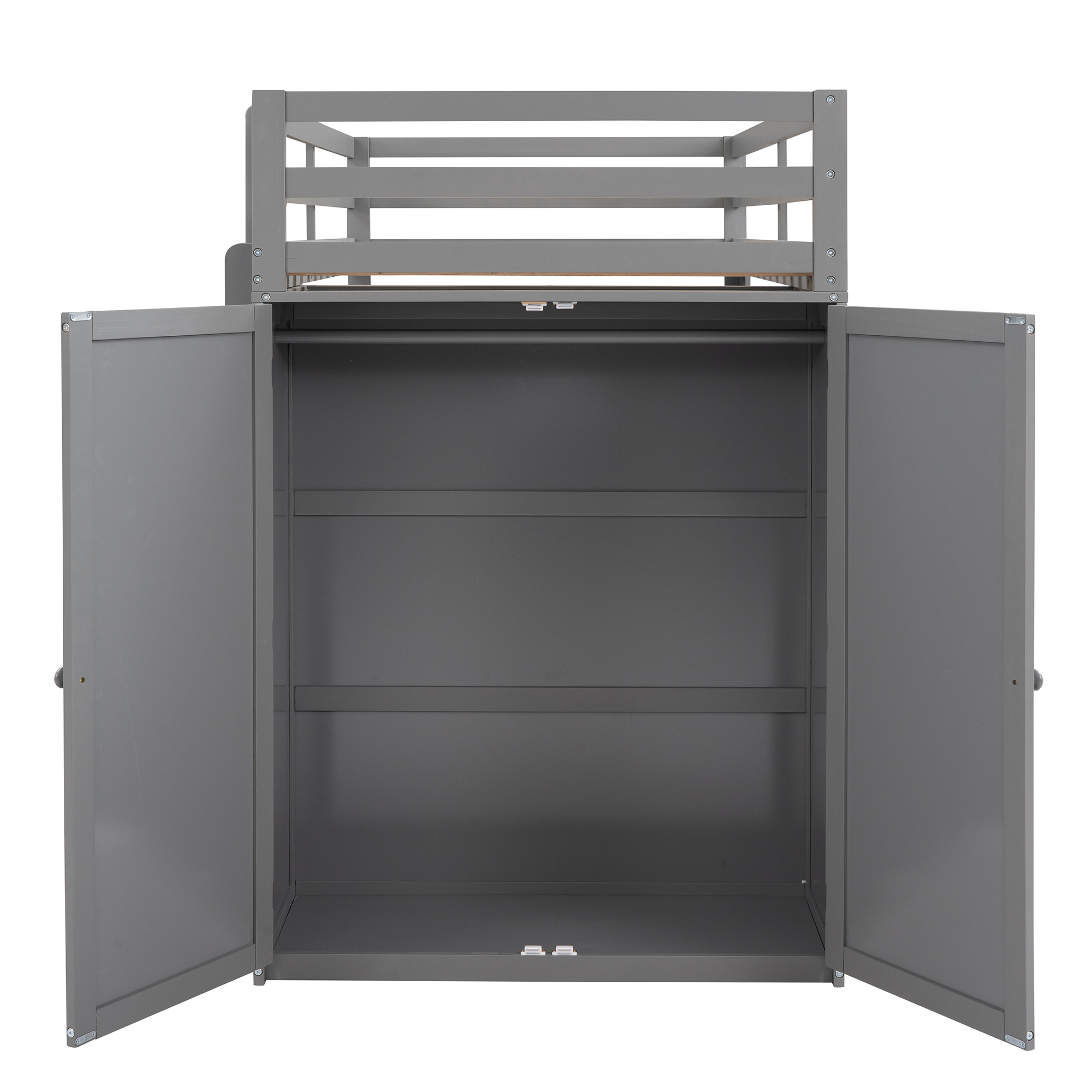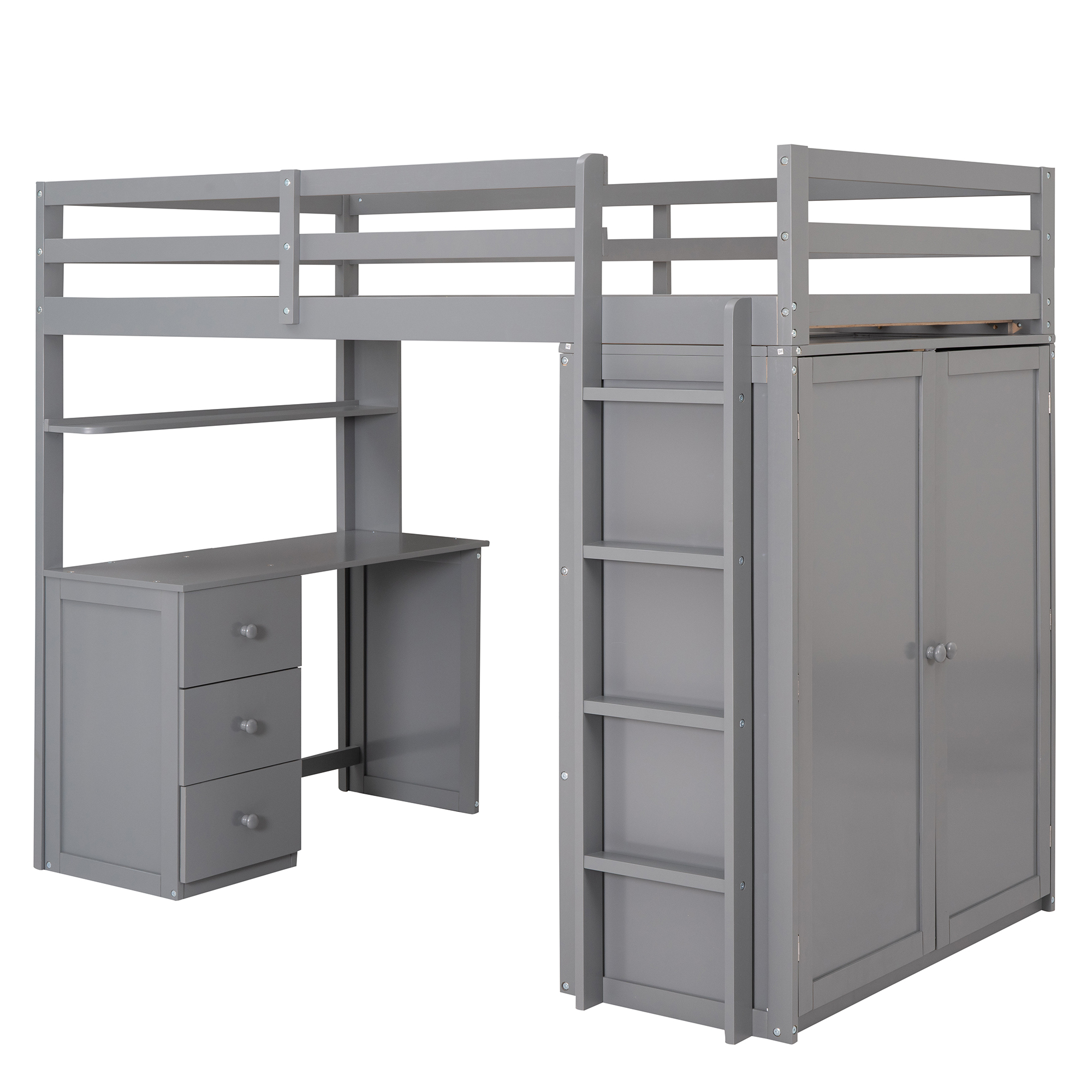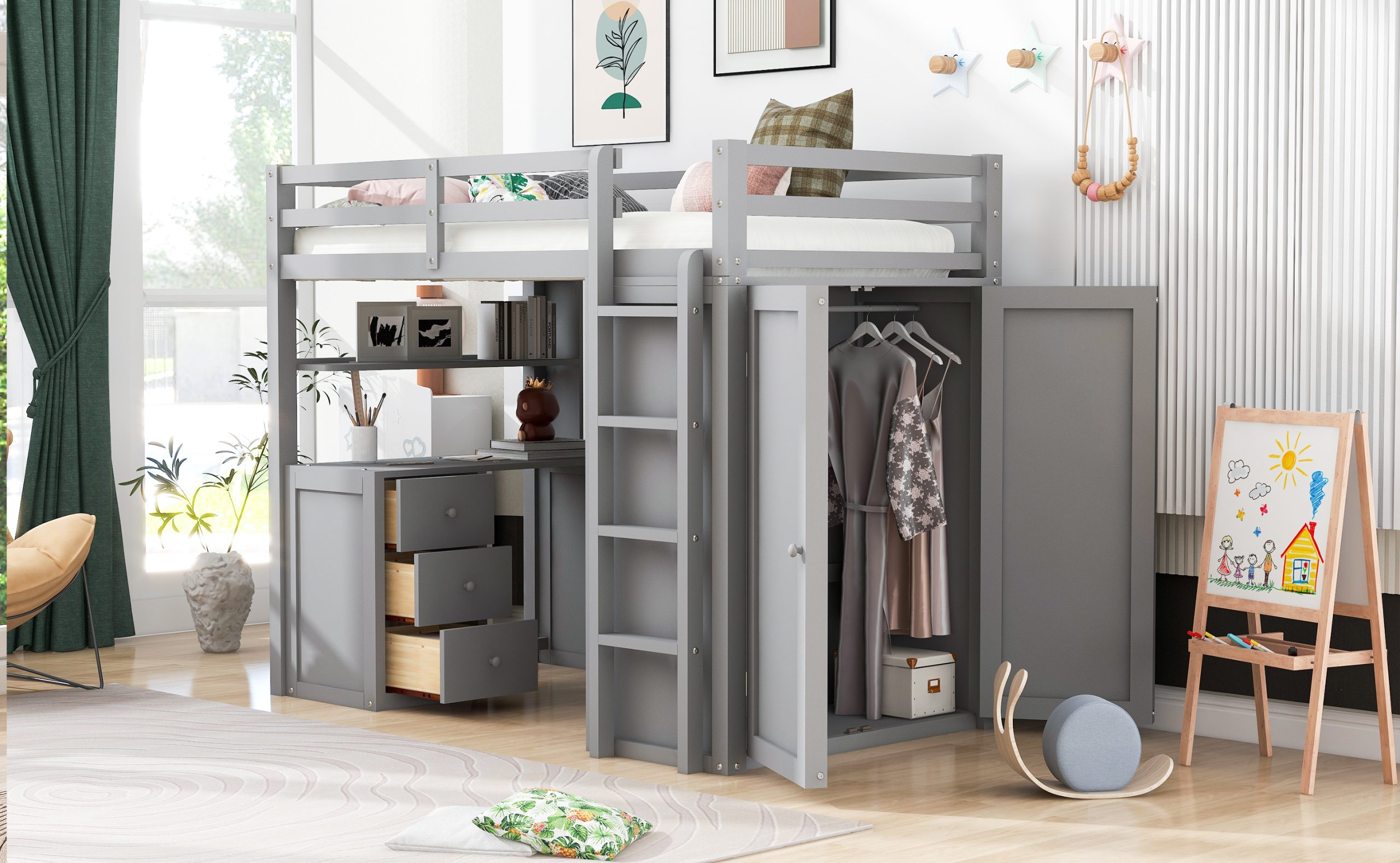 Twin Size Loft Bed With Drawers, Desk and Wardrobe
