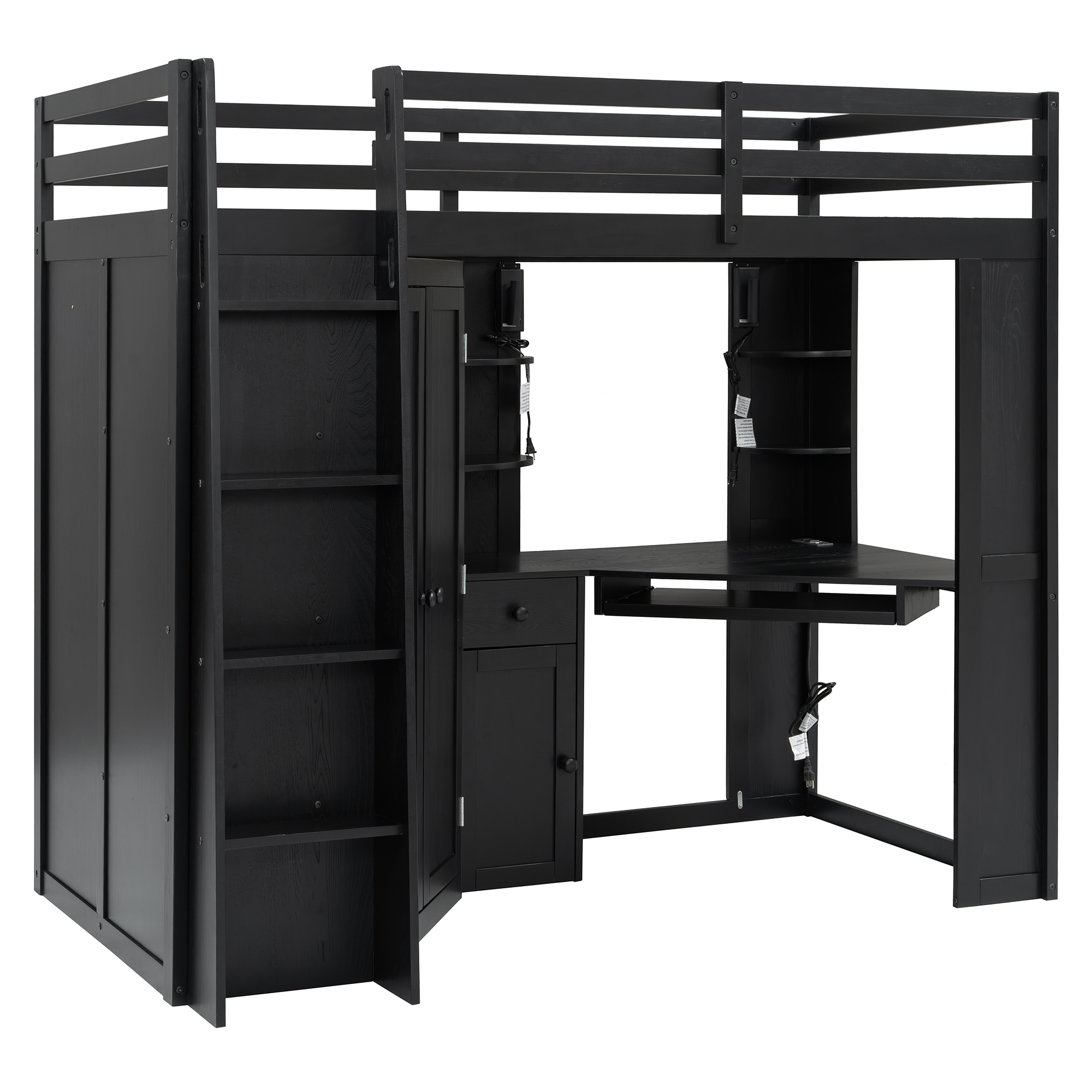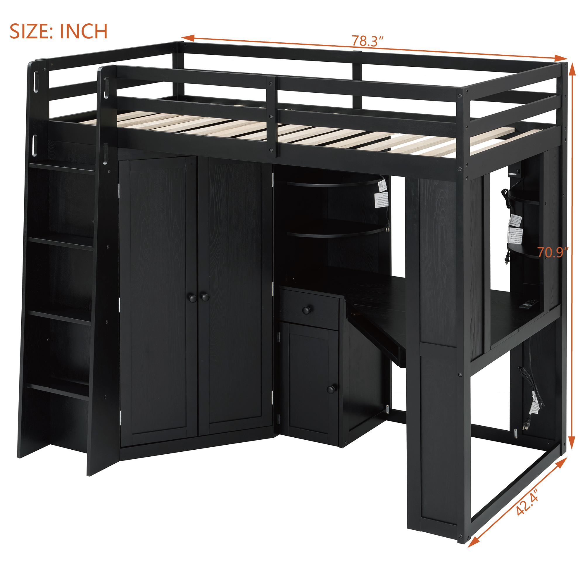 - Advanced Charging Station: Stay connected without the mess of tangled extension cords. The desktop is equipped with a high-speed integrated power strip, featuring standard AC outlets alongside modern USB and Type-C ports. Whether you need to power up your laptop, tablet, or the latest smartphone, this bed ensures your tech is always fully charged and within arm’s reach while you work or sleep.