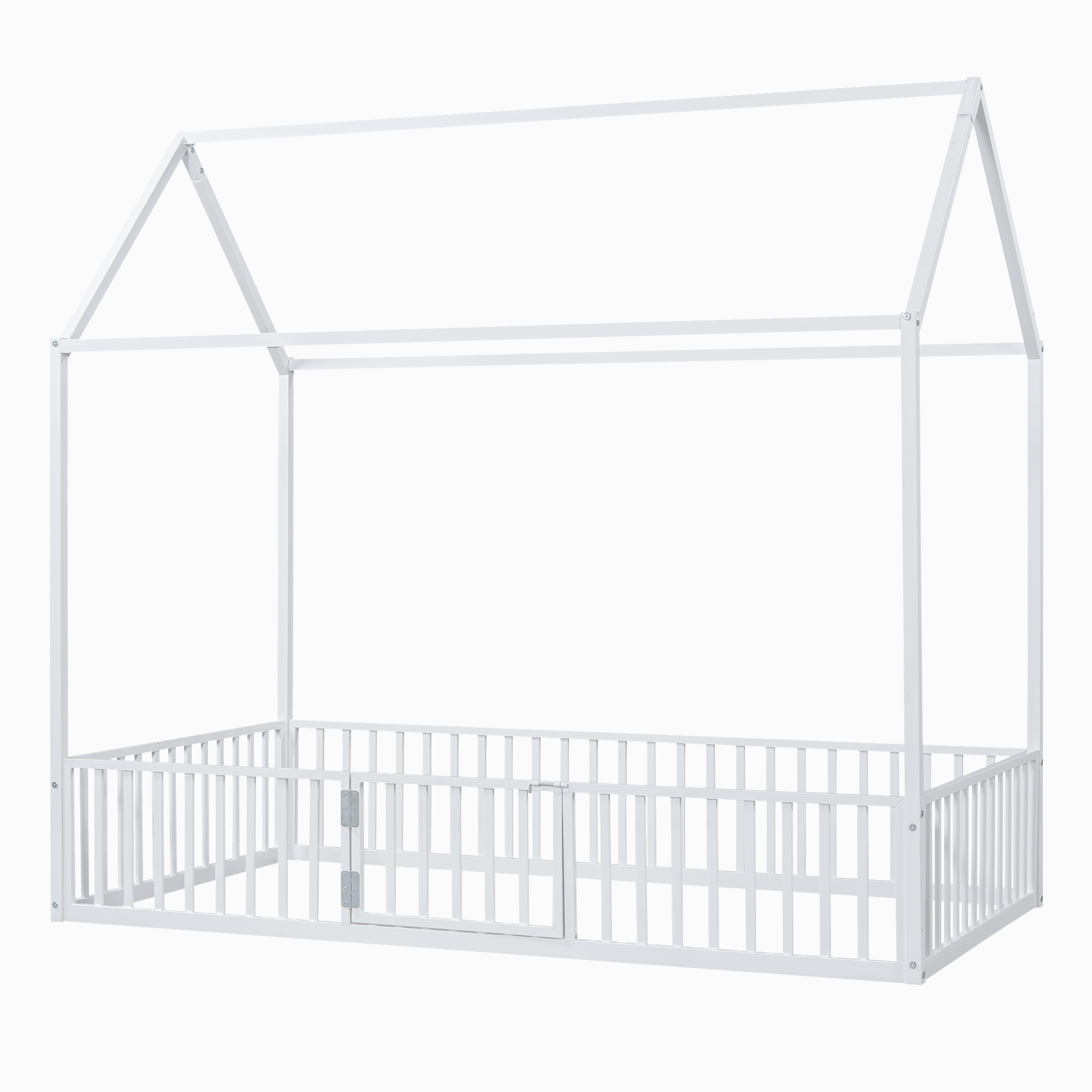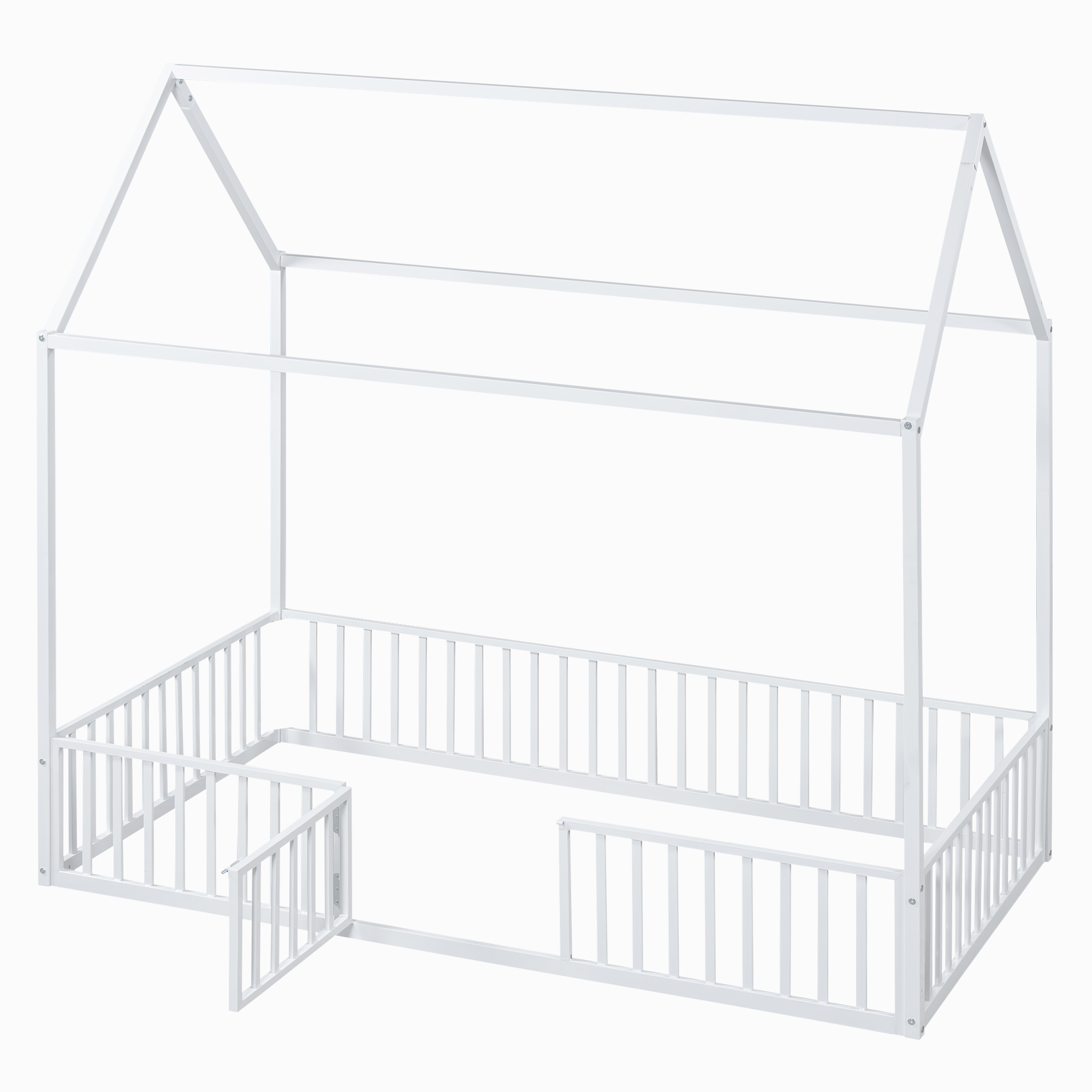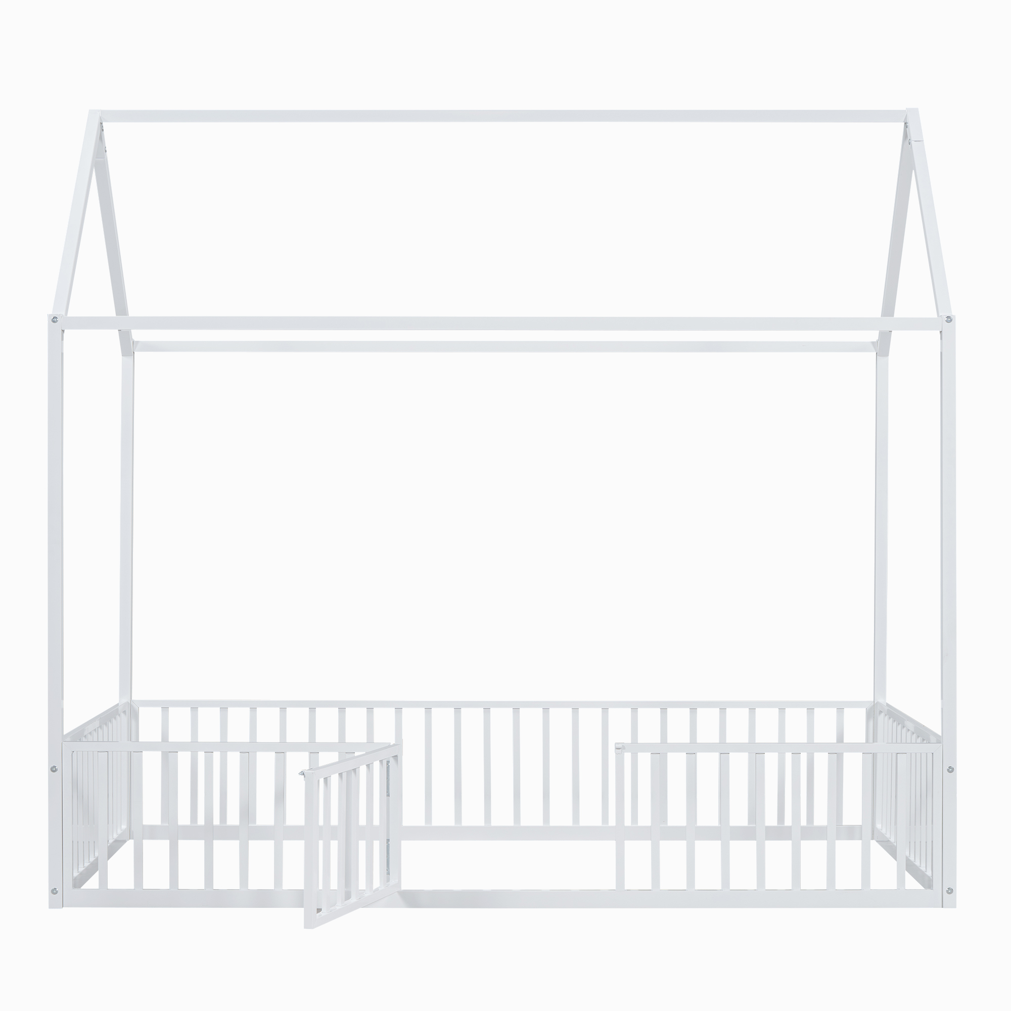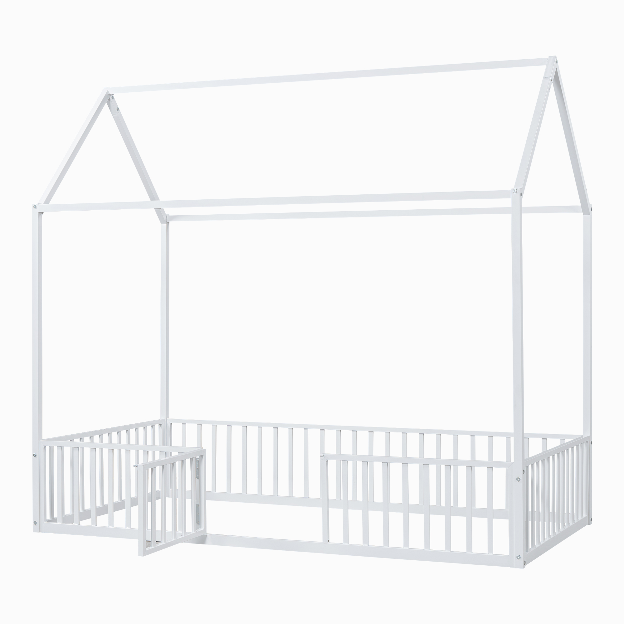 - [Fence with Door] The bed is fenced around the perimeter, but it is not a completely enclosed space because it has a small door over the fence. Kids can enter and exit freely through this small door.