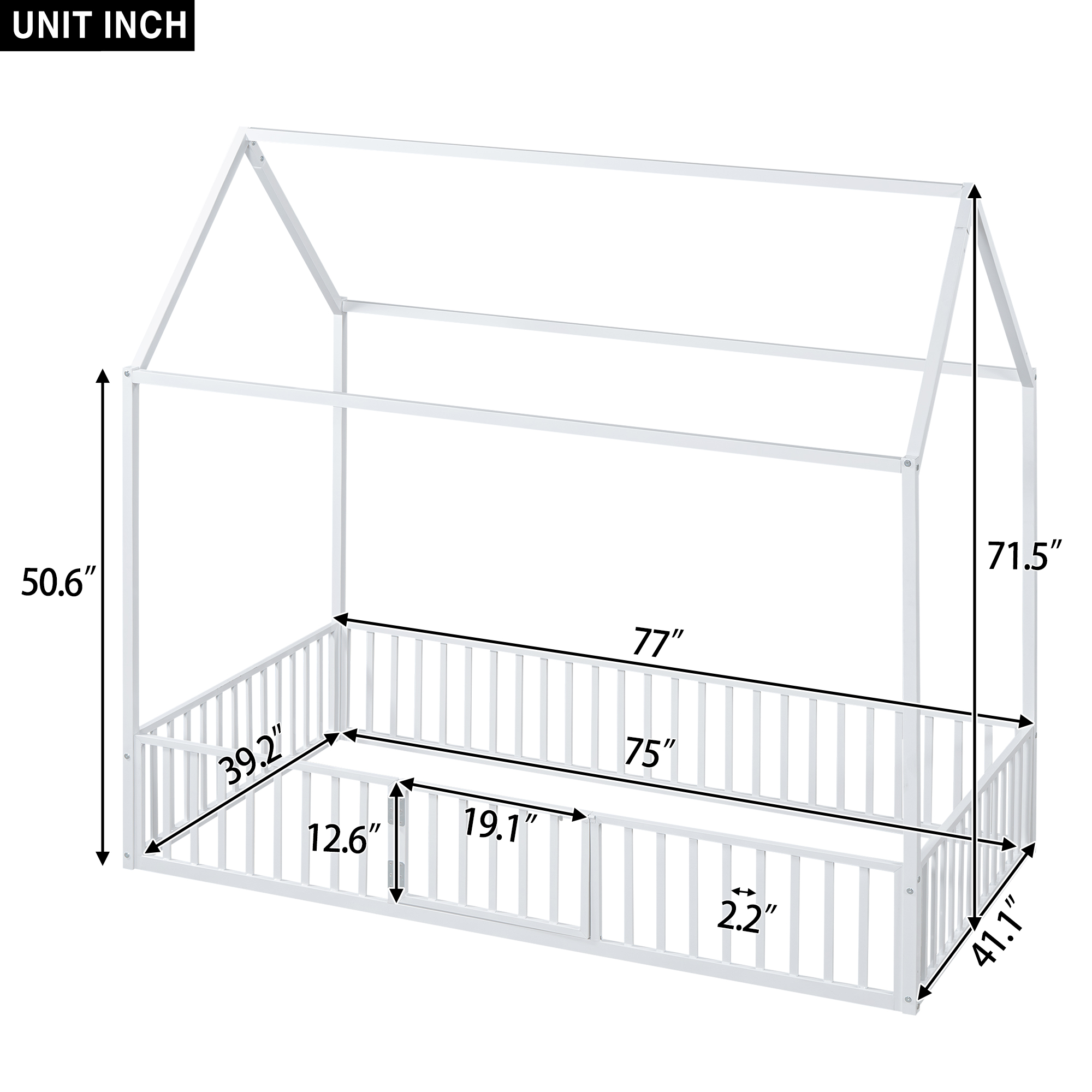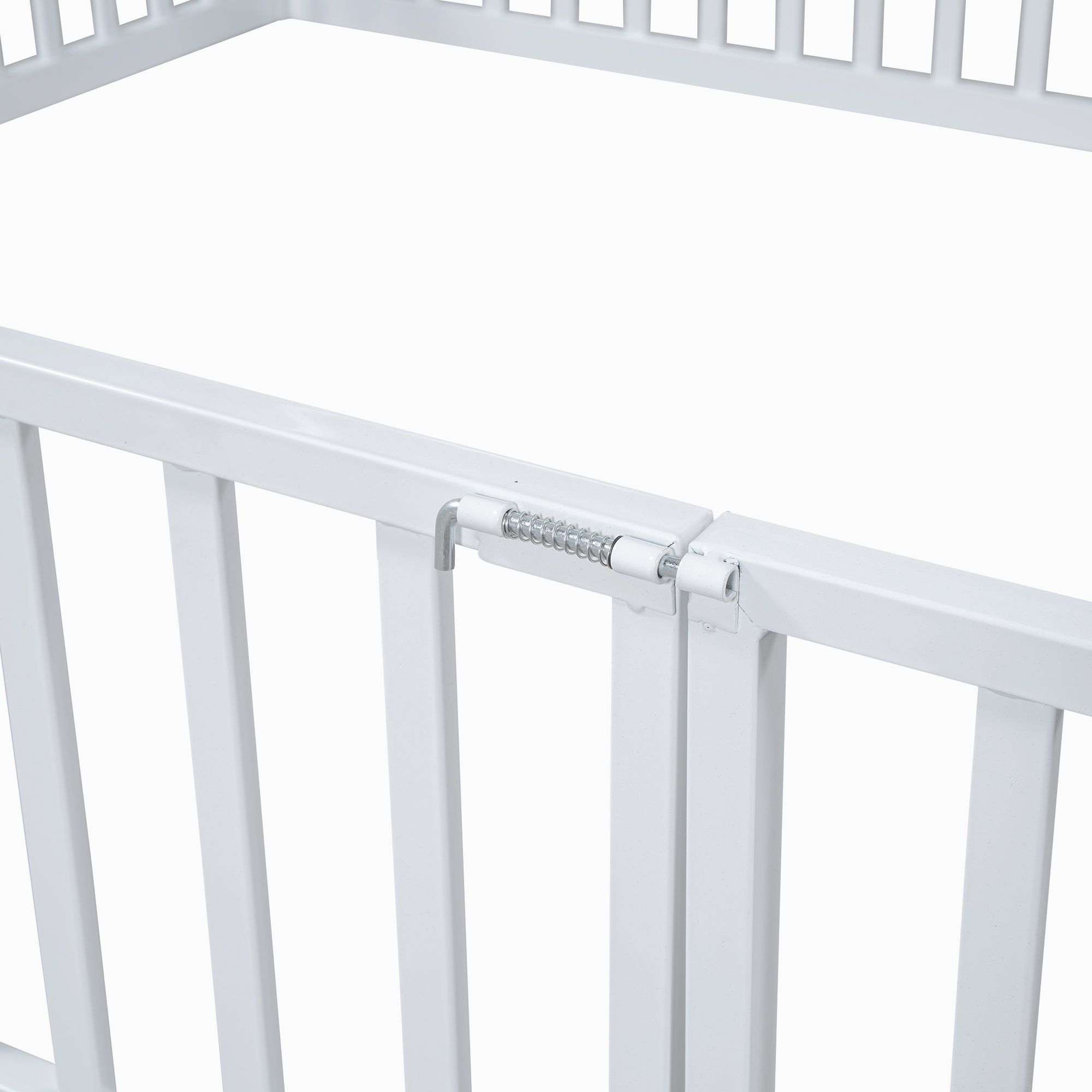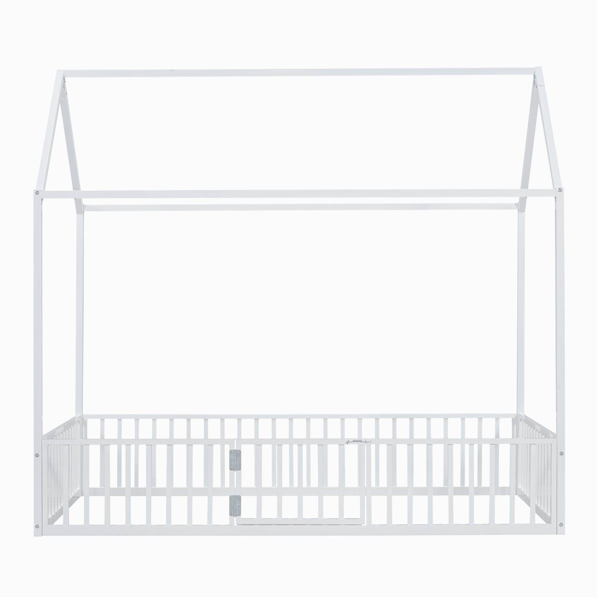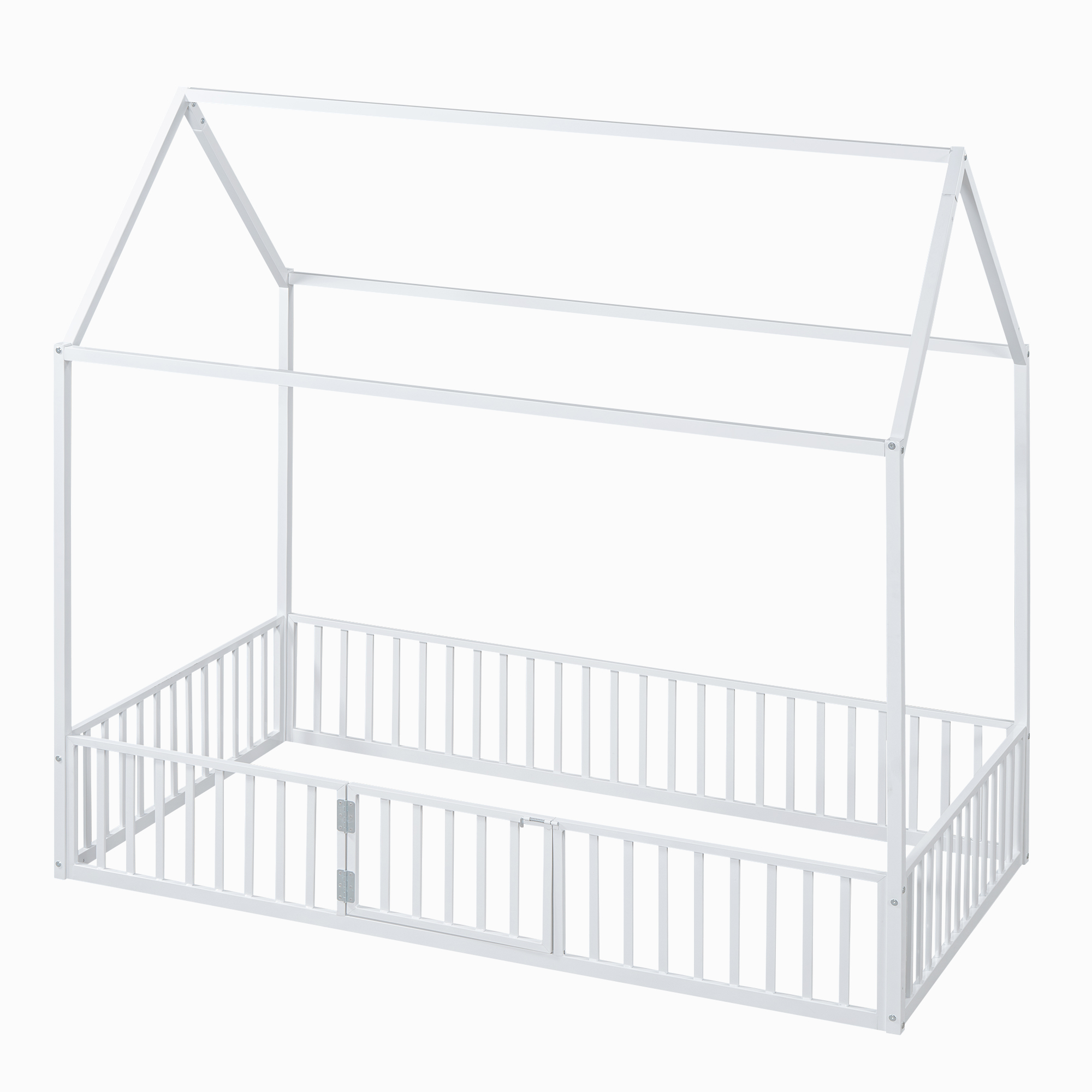 - [Fence with Door] The bed is fenced around the perimeter, but it is not a completely enclosed space because it has a small door over the fence. Kids can enter and exit freely through this small door.