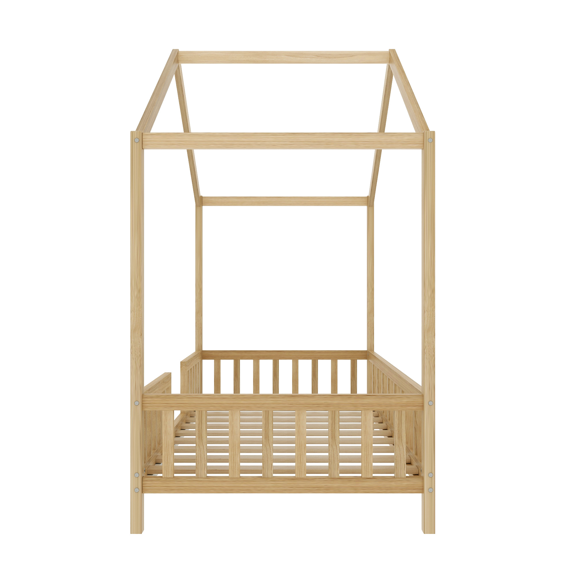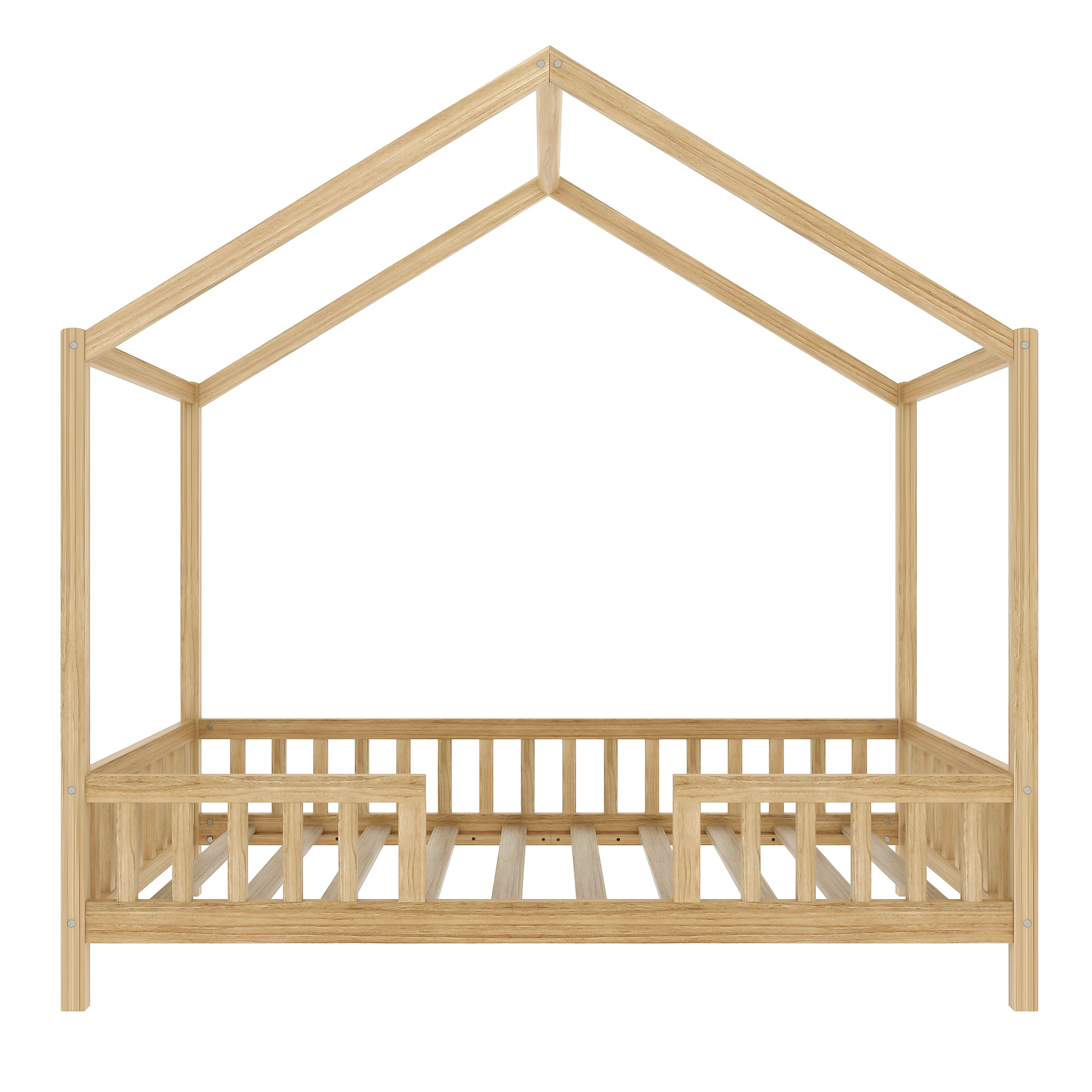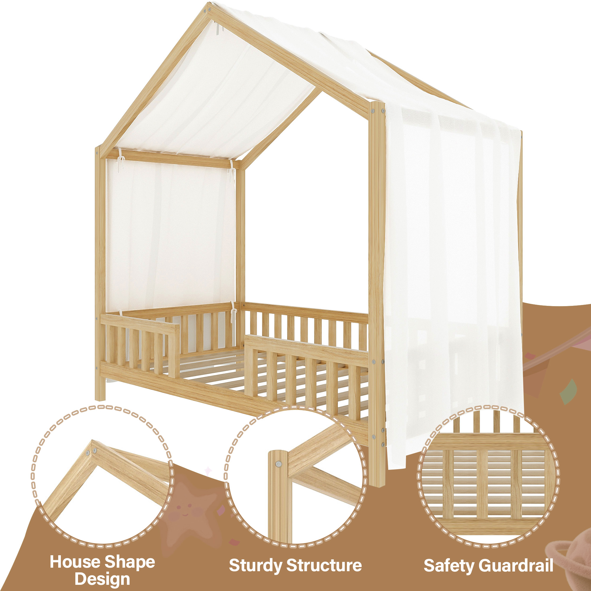 - [House Toddler Bed with Railings]: Keep your little one safe and sound with this house-shaped children’s bed frame. Equipped with high railings on all 4 sides, it provides a secure sleep environment, helping prevent accidental falls while giving your child the freedom to move and play comfortably.